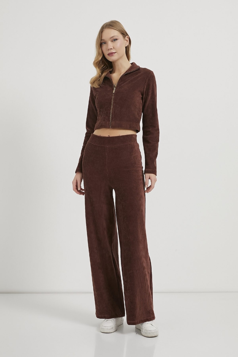 ARMALIFE 0111 KADİFE BEL LASTİK DETAYLI FİTİLLİ KADIN EŞOFMAN TAKIM