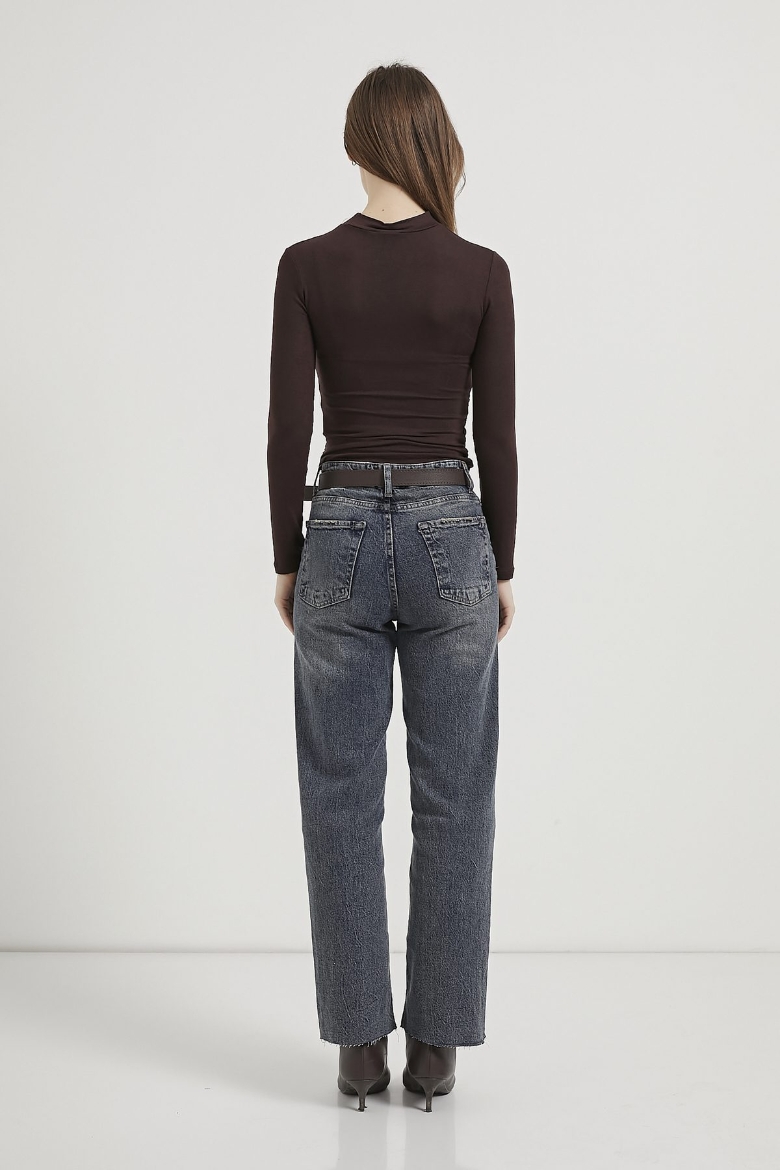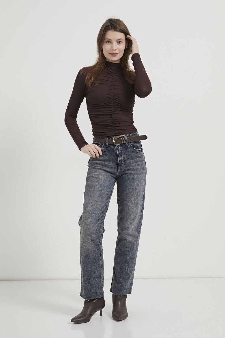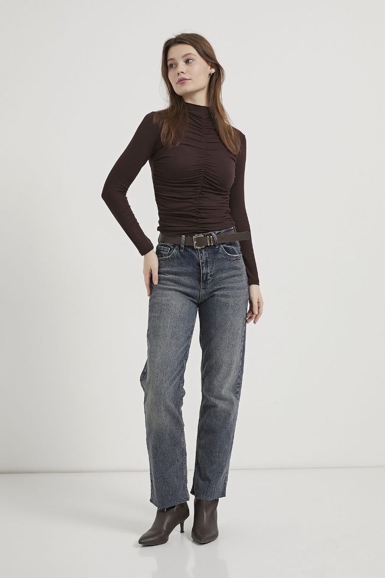 ARMALIFE 0145 DİK YAKA BÜZGÜ DETAYLI TRANSPARAN KADIN BODY