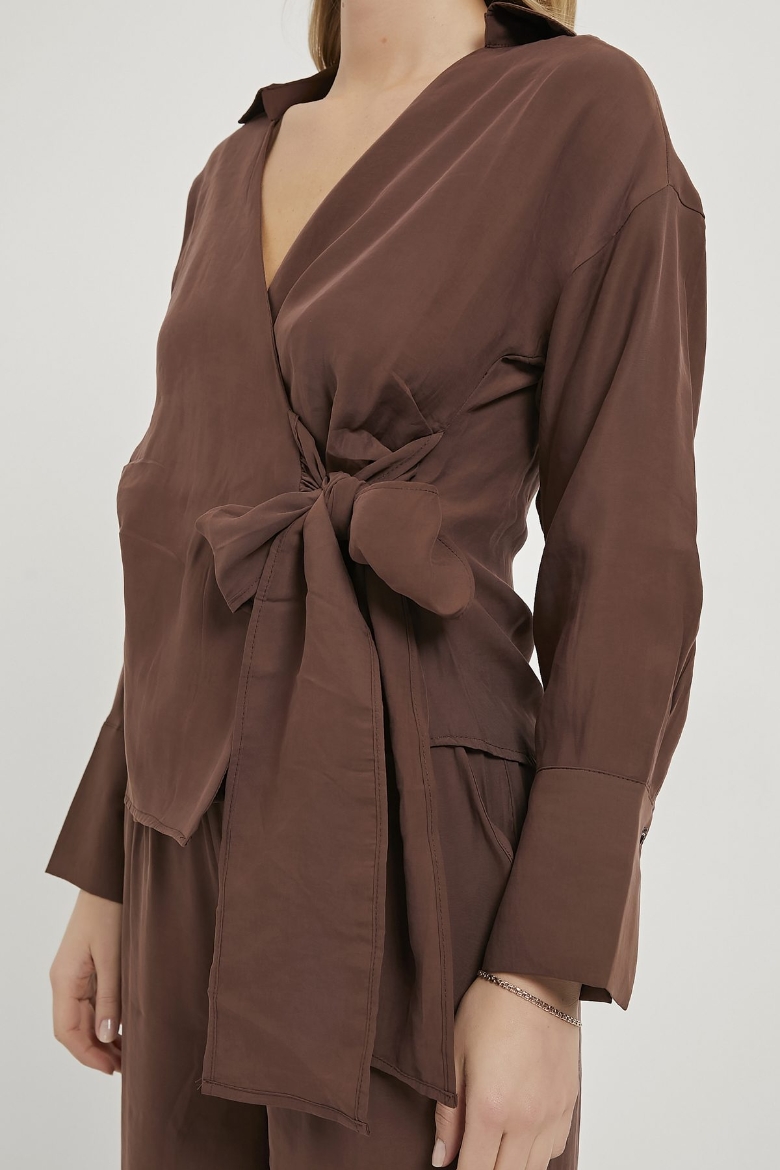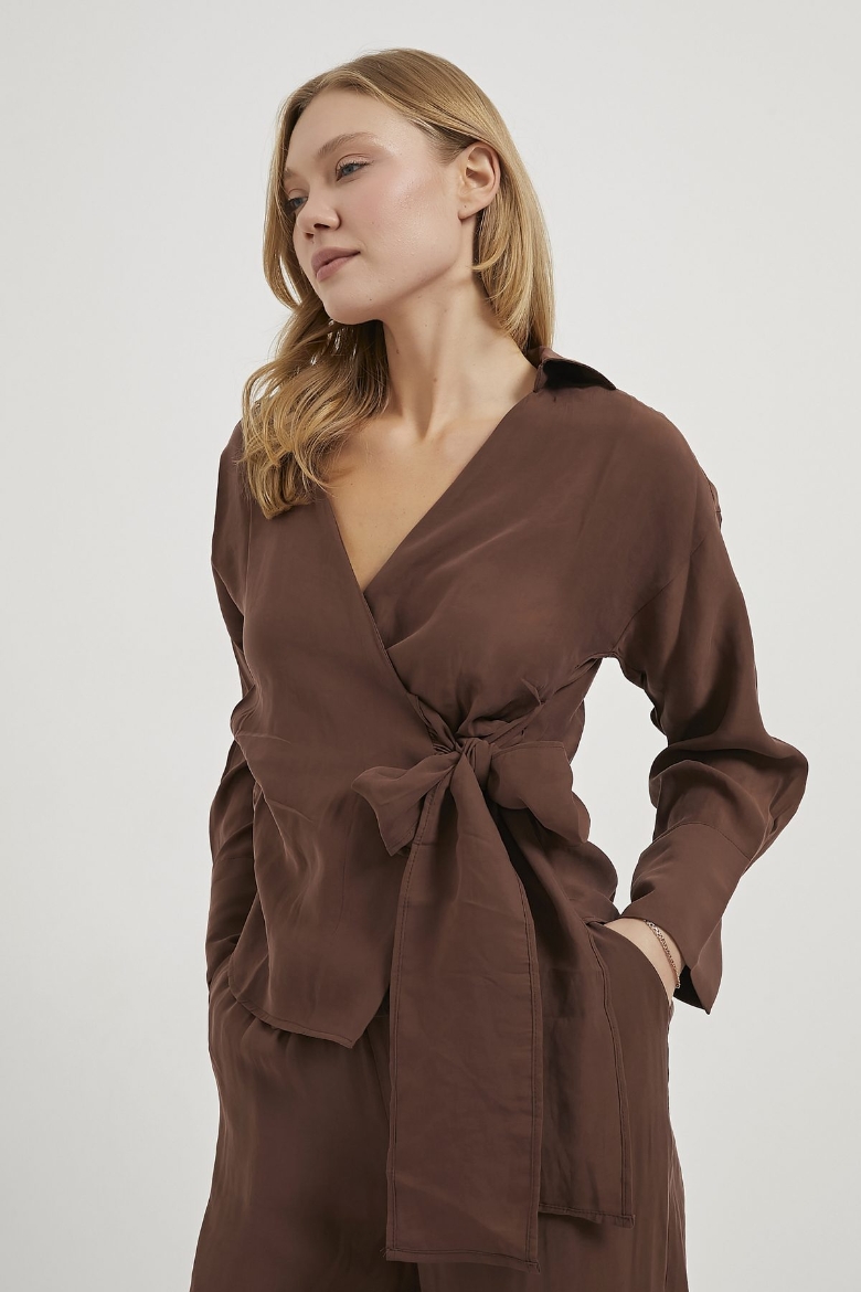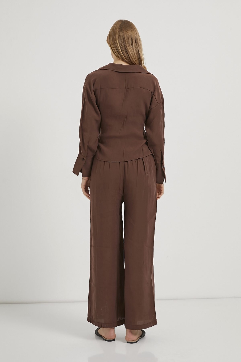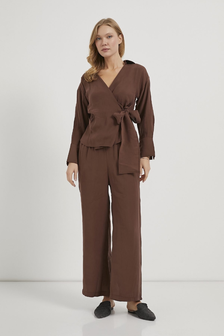 ARMALIFE 0412 UZUN KOL YANI BAĞLAMALI BLUZ BELİ LASTİKLİ PANTOLON KADIN TAKIM