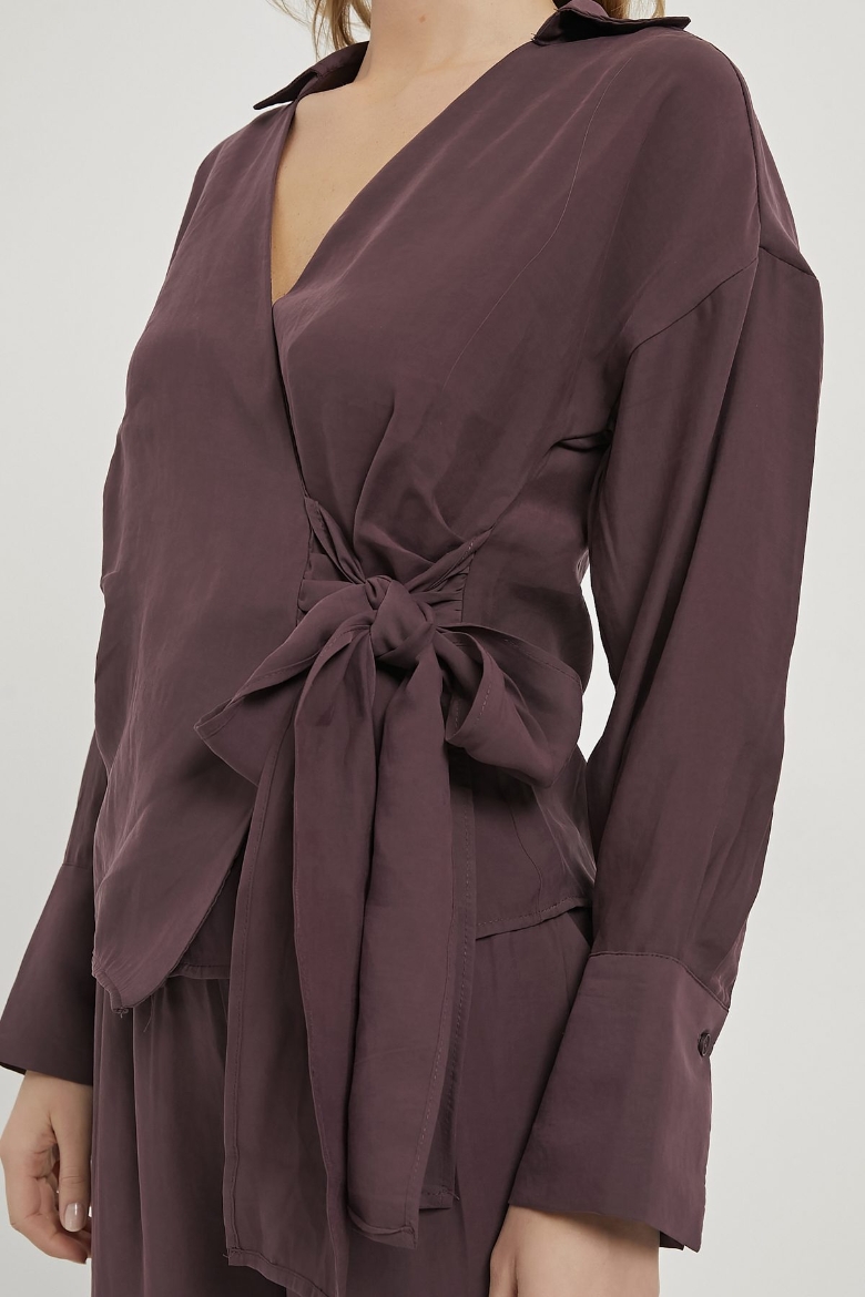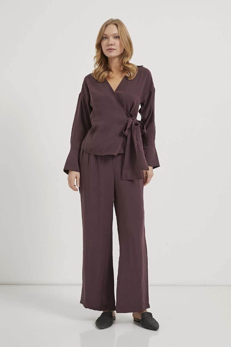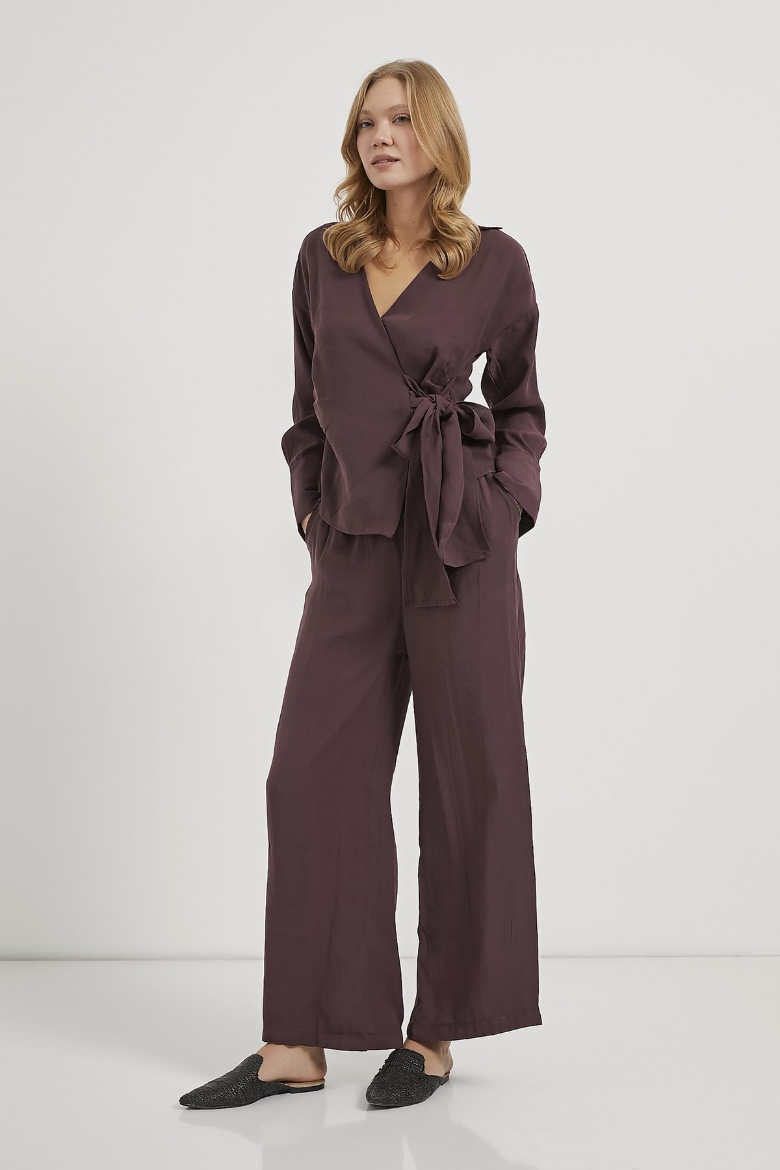 ARMALIFE 0412 UZUN KOL YANI BAĞLAMALI BLUZ BELİ LASTİKLİ PANTOLON KADIN TAKIM