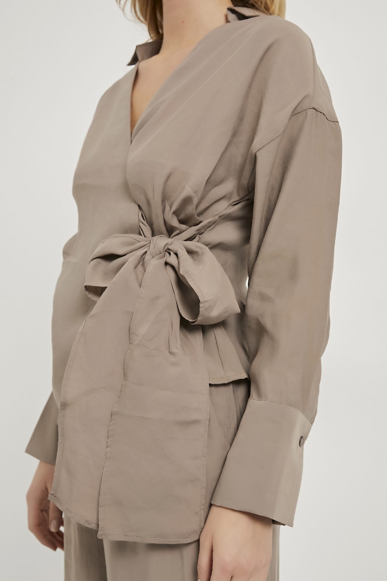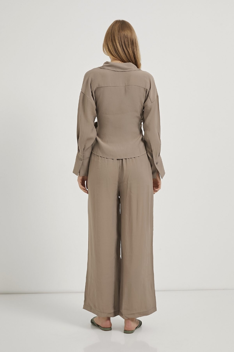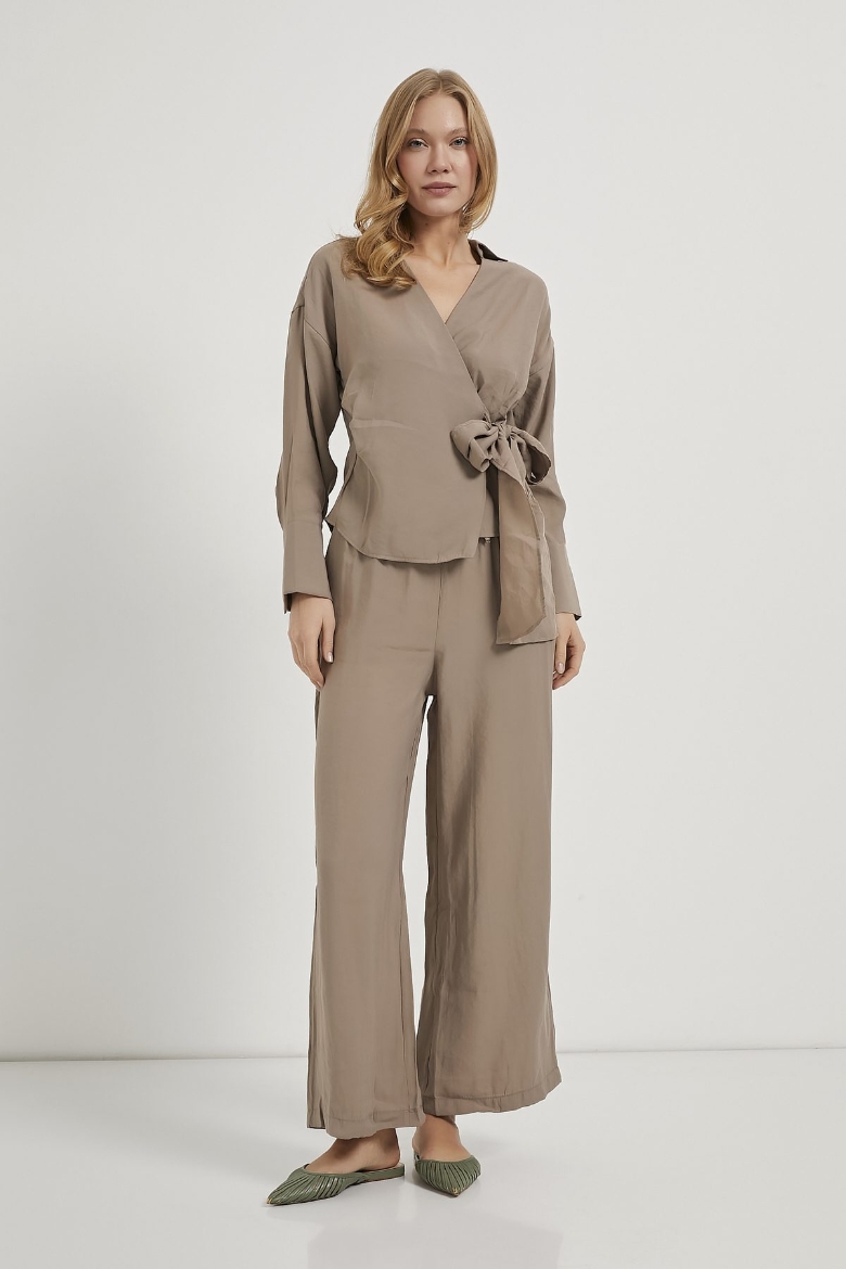 ARMALIFE 0412 UZUN KOL YANI BAĞLAMALI BLUZ BELİ LASTİKLİ PANTOLON KADIN TAKIM