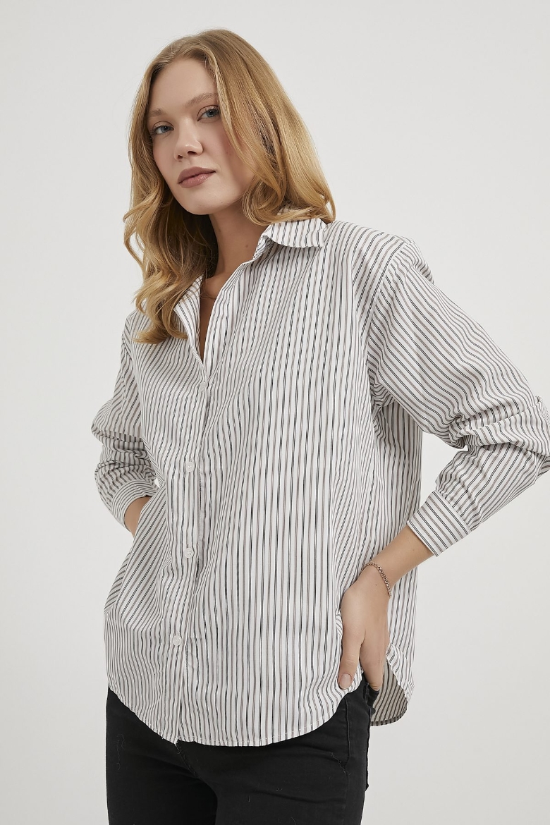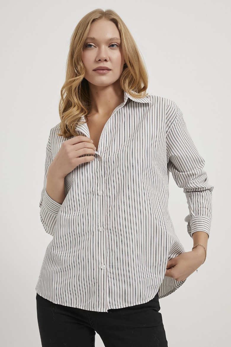 ARMALIFE 0414 ÇİZGİLİ AÇIK YAKA KADIN GÖMLEK