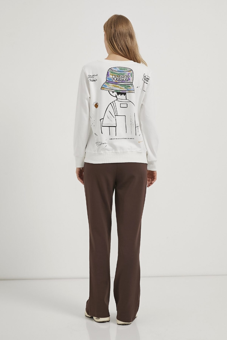ARMALIFE 0419 APLİKE DETAYLI BASKILI BİSİKLET YAKA KADIN SWEAT