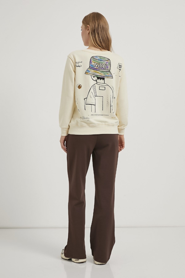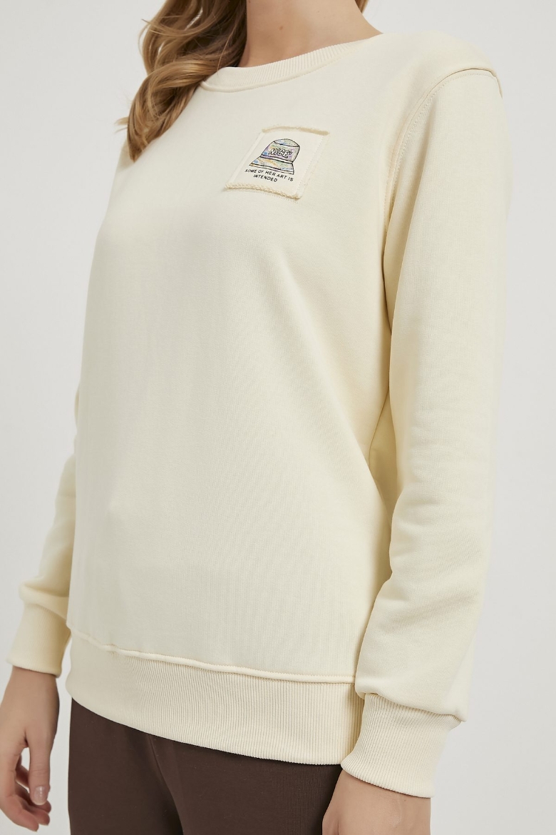 ARMALIFE 0419 APLİKE DETAYLI BASKILI BİSİKLET YAKA KADIN SWEAT