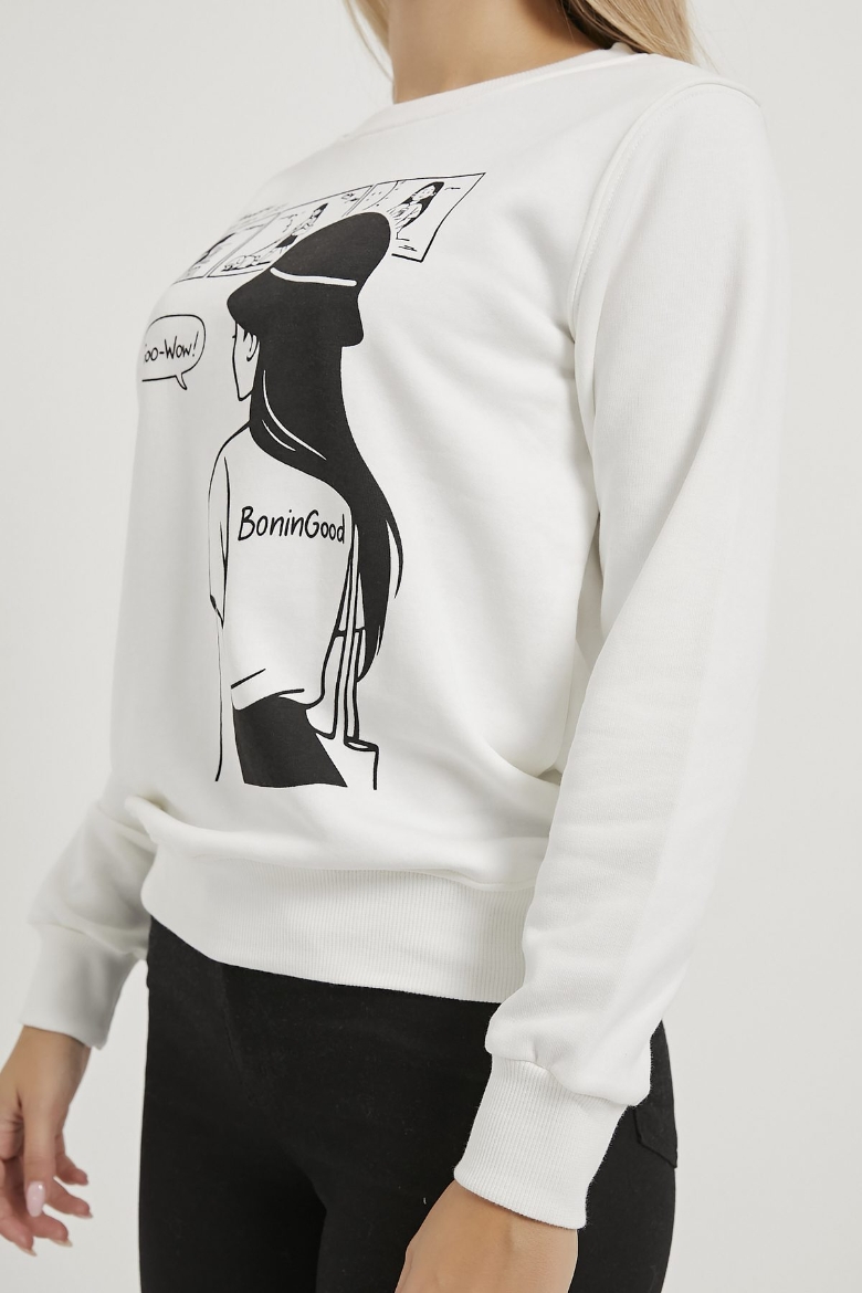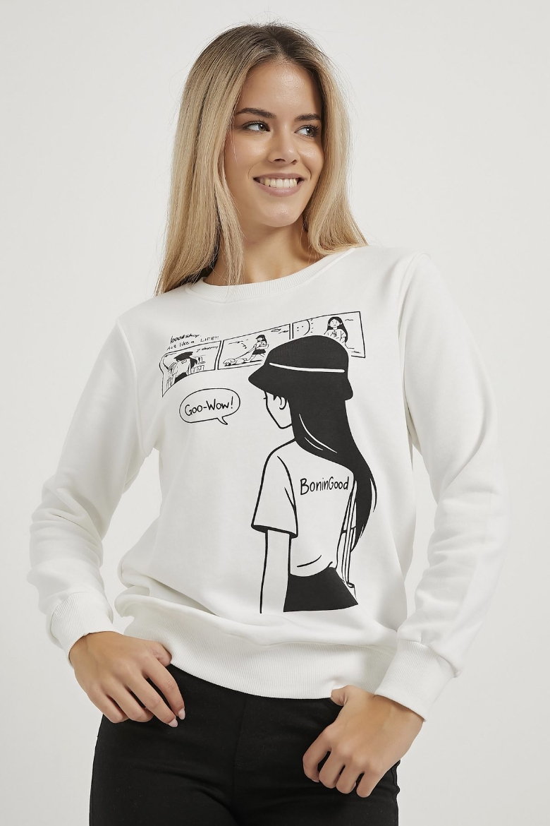ARMALIFE 0421 BASKILI BİSİKLET YAKA KADIN SWEAT
