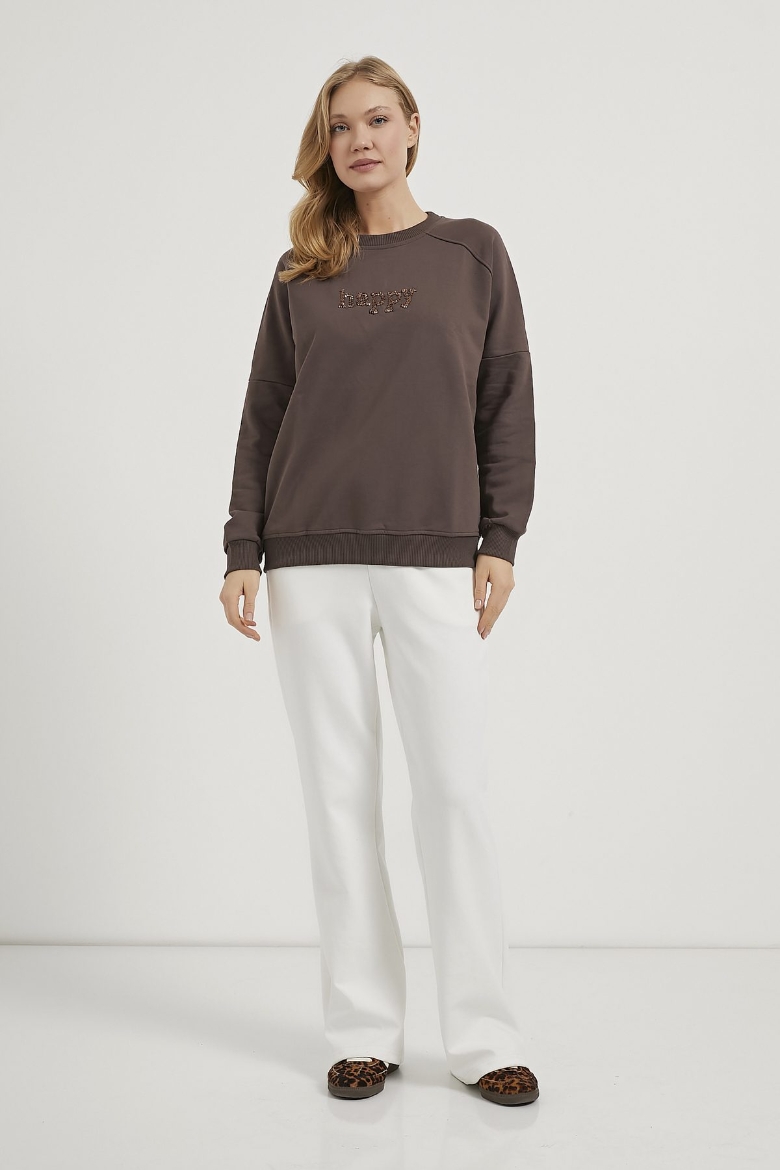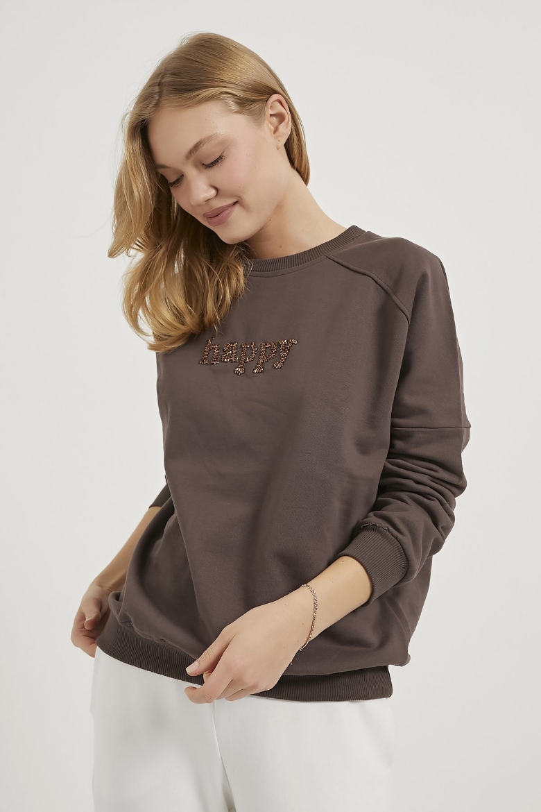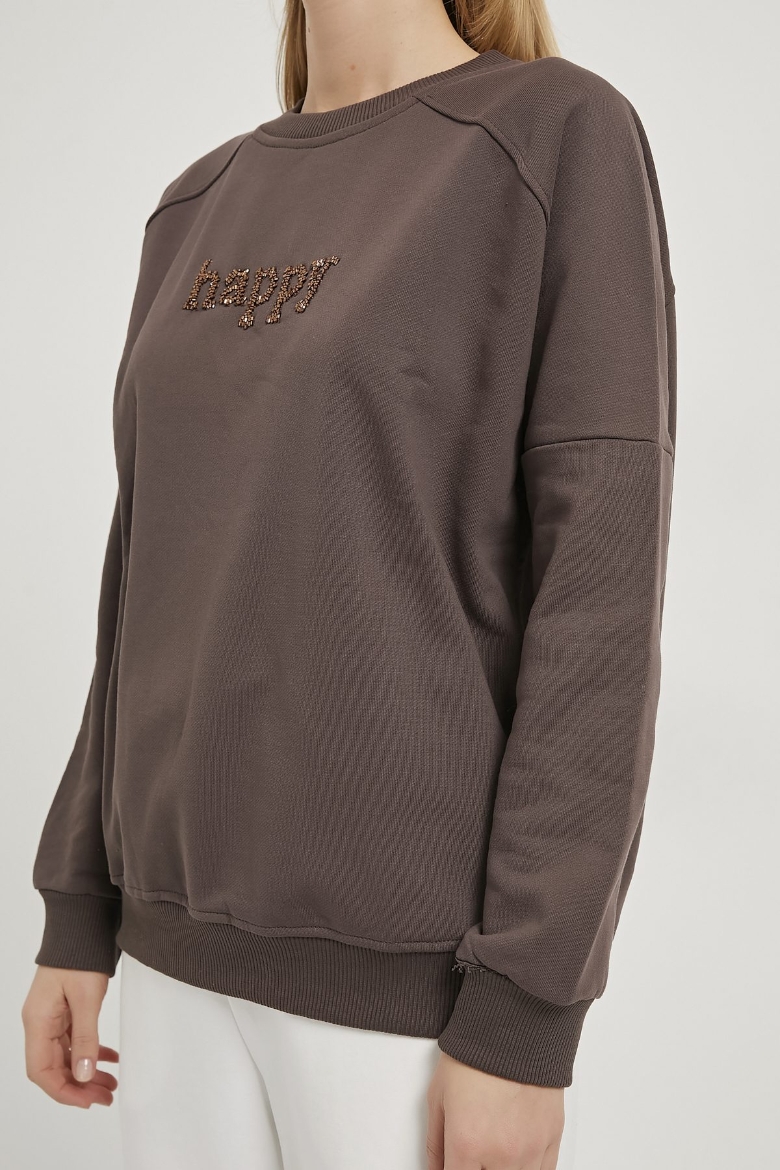 ARMALIFE 0427 BONCUK NAKIŞLI BİSİKLET YAKA KADIN SWEAT
