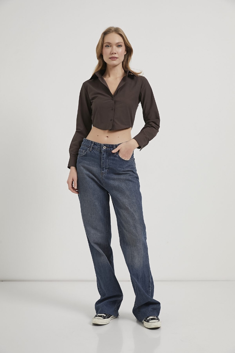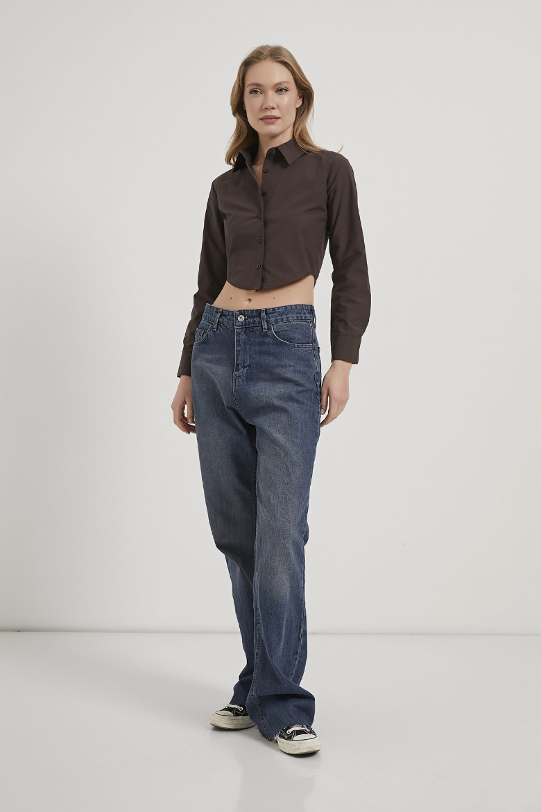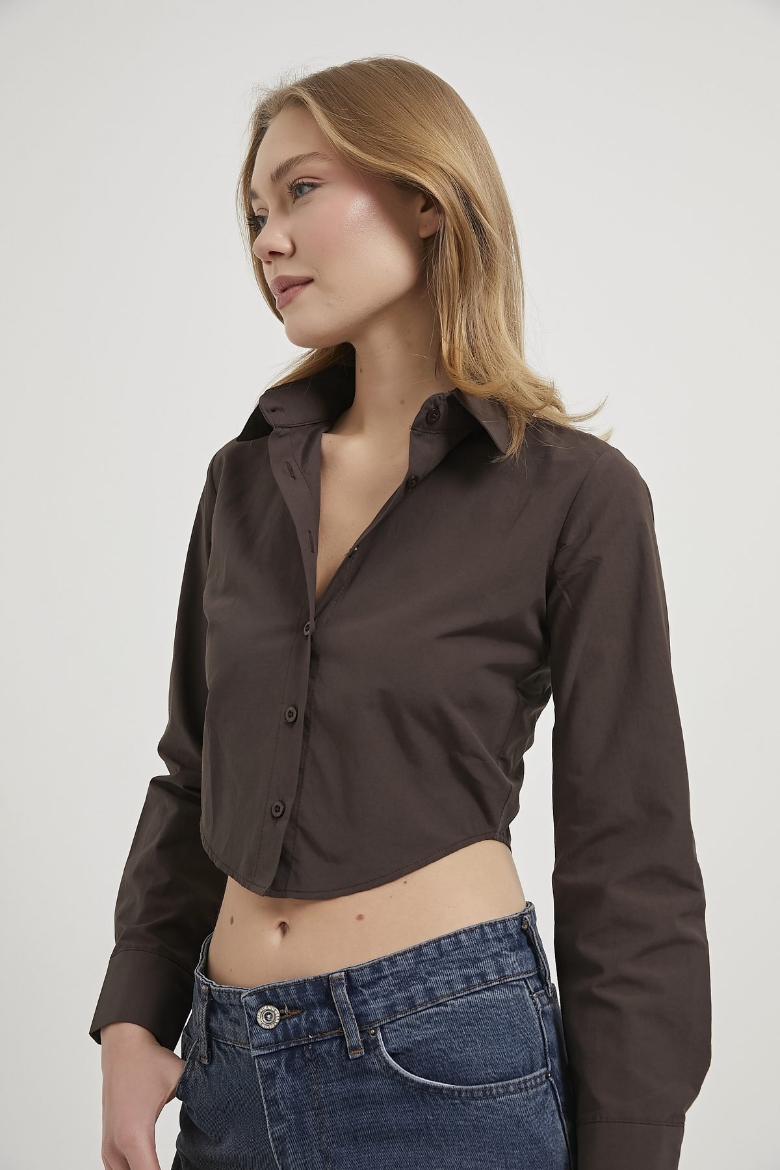 ARMALIFE 0428 PAMUK KARIŞIMLI CROP KADIN GÖMLEK