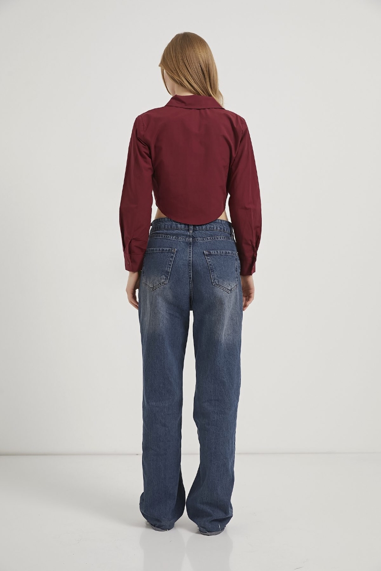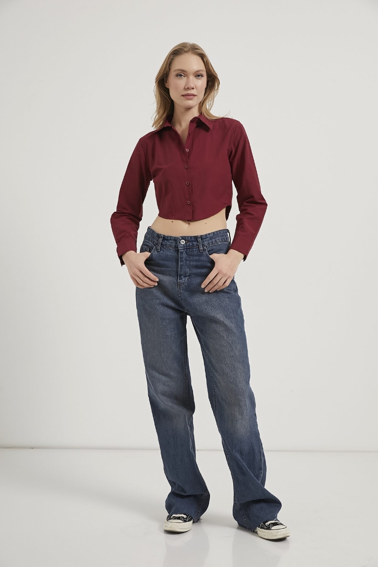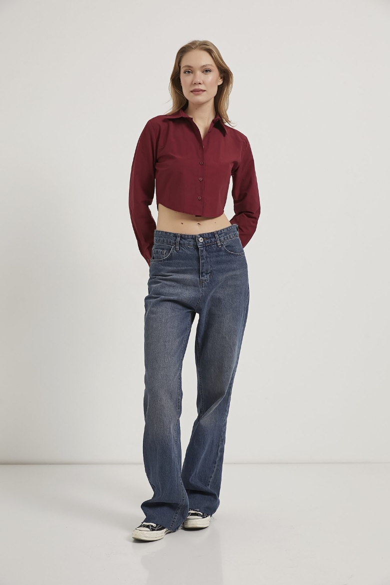 ARMALIFE 0428 PAMUK KARIŞIMLI CROP KADIN GÖMLEK