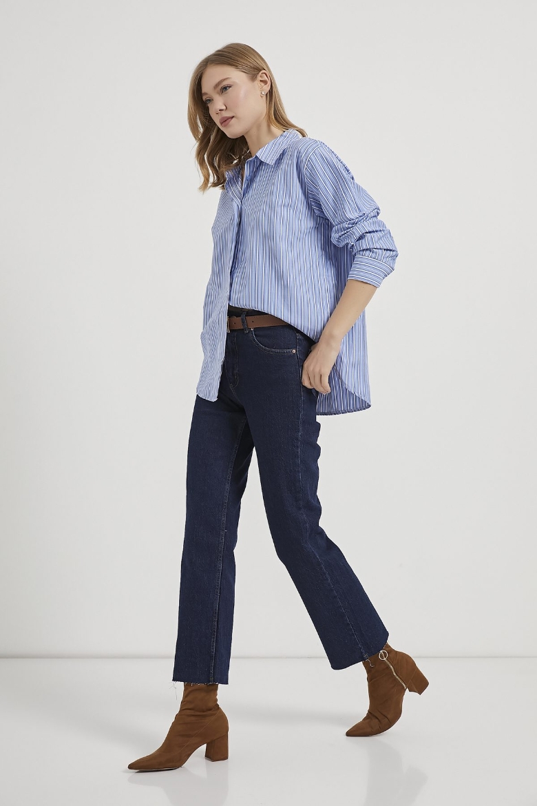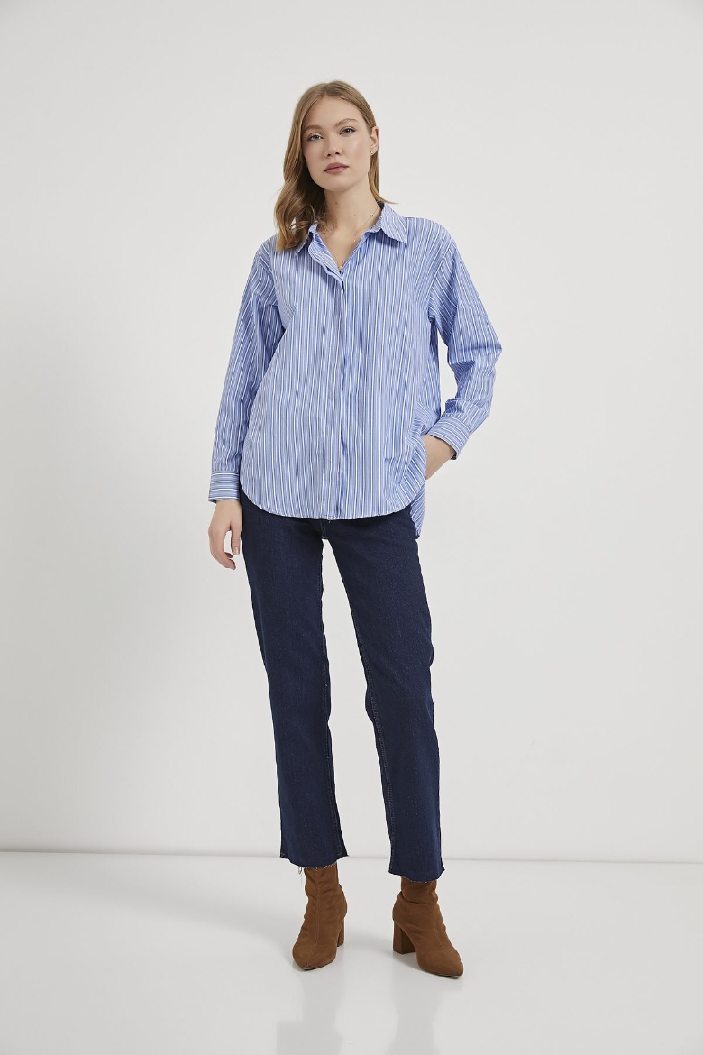 ARMALIFE 0429 ÇİZGİLİ ETEĞİ OVAL KADIN GÖMLEK