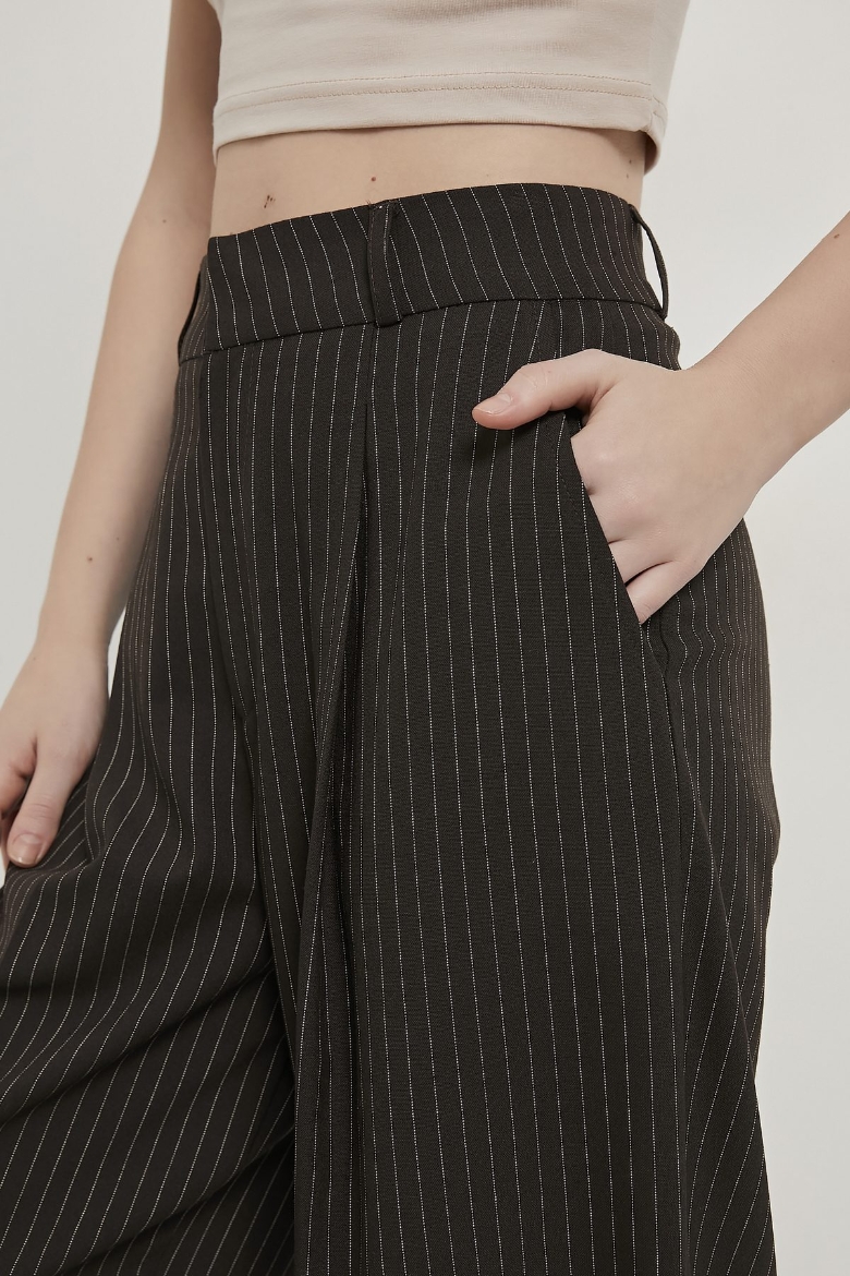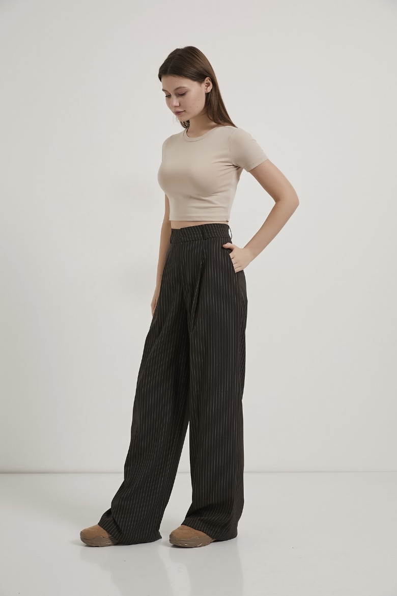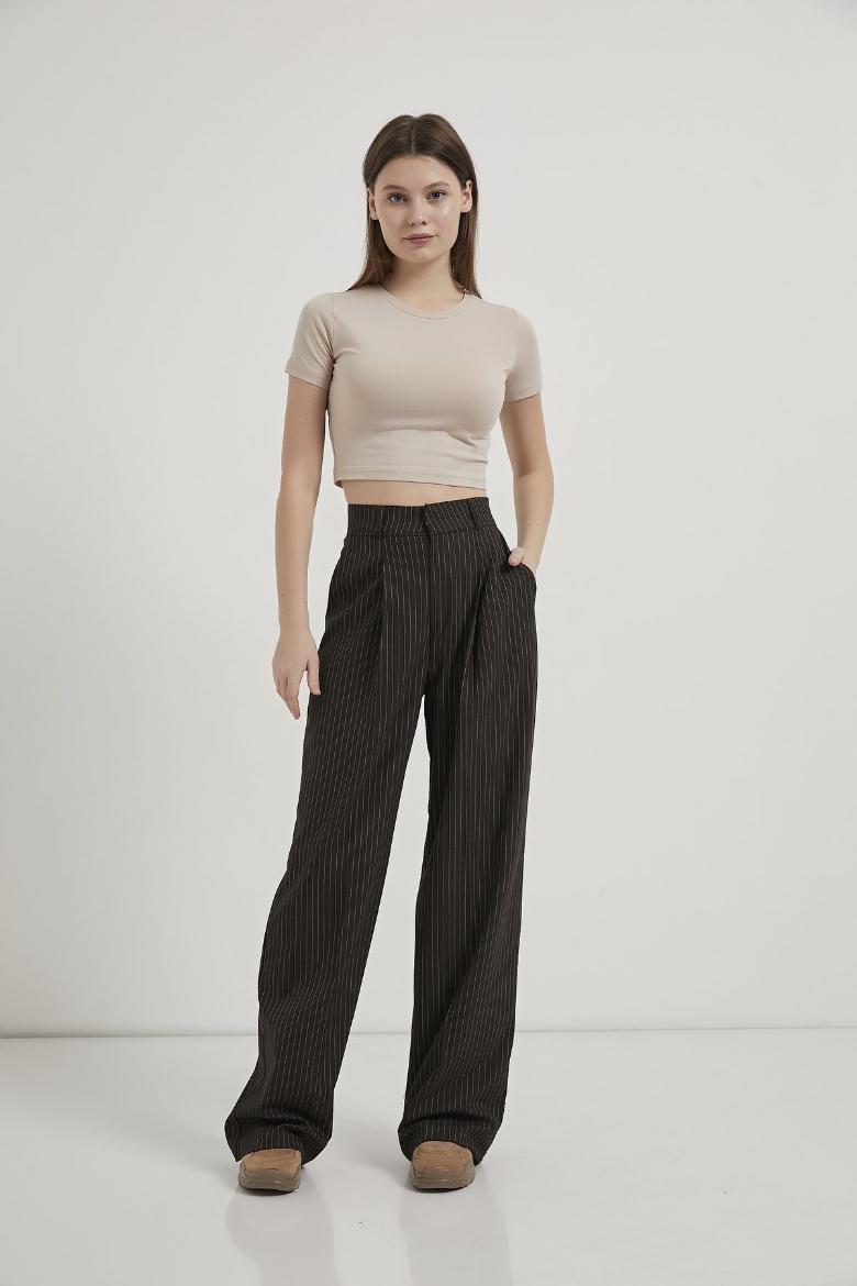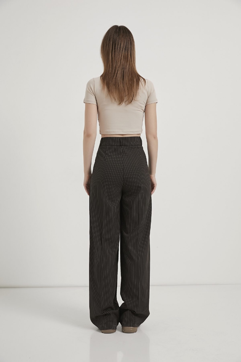 ARMALIFE 0431 PİLE DETAY YÜKSEK BEL ÇİZGİLİ KADIN PANTOLON
