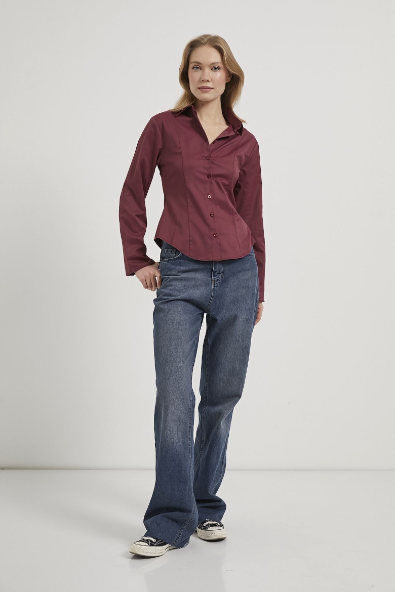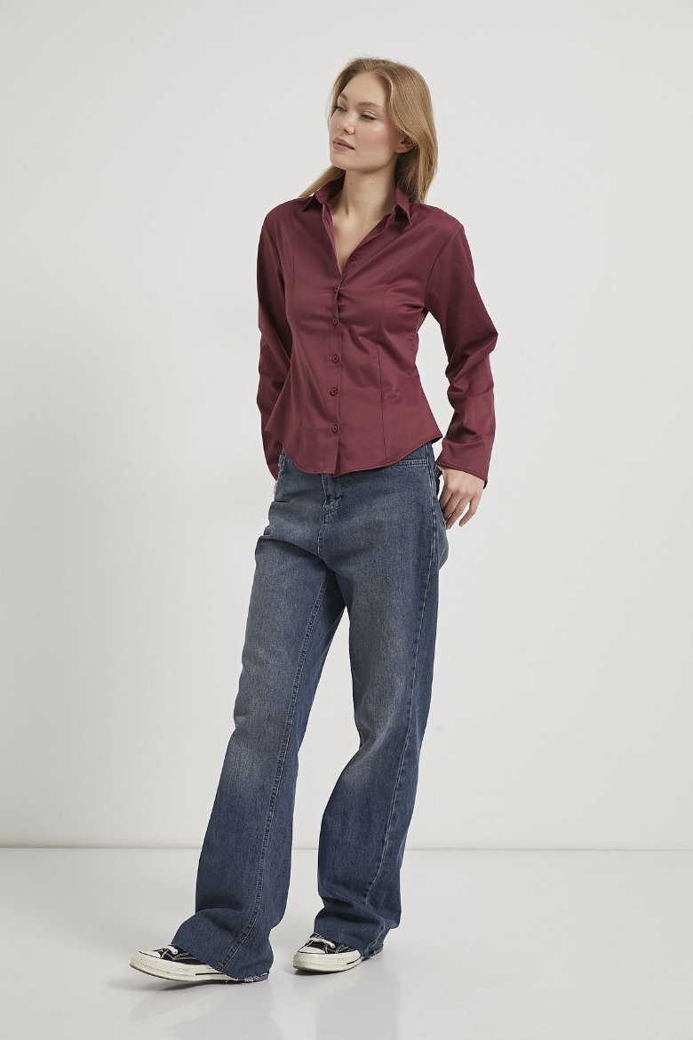 ARMALIFE 0433-1 ÇAN KOLLU SLIM ESNEK KADIN GÖMLEK
