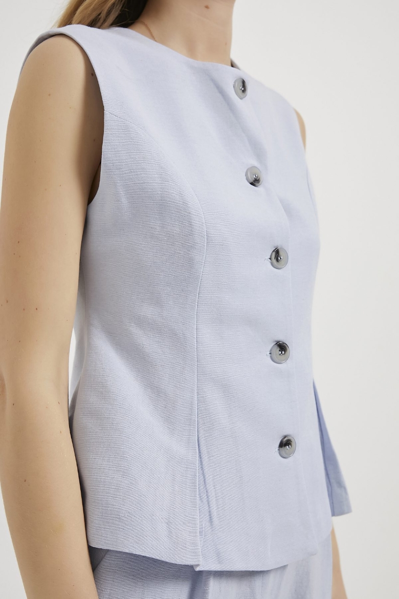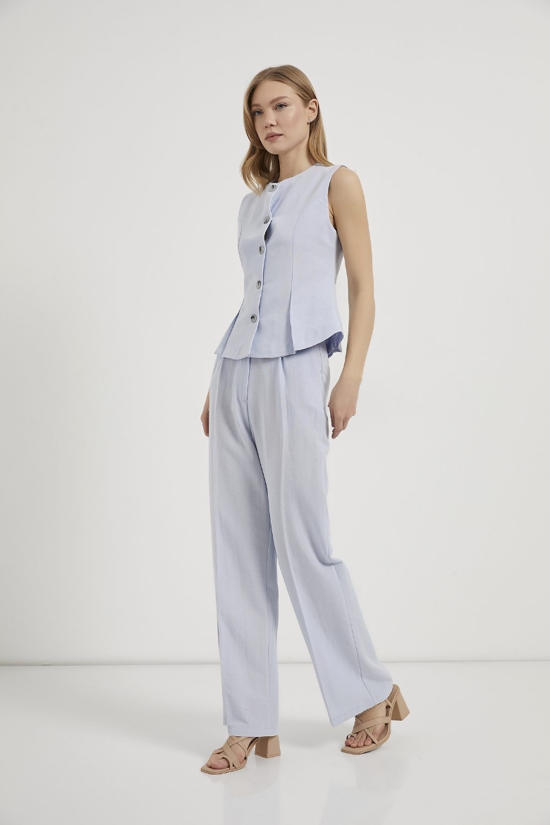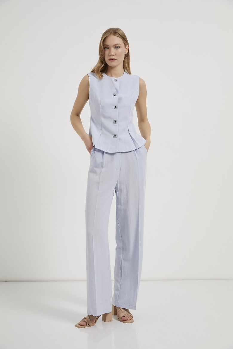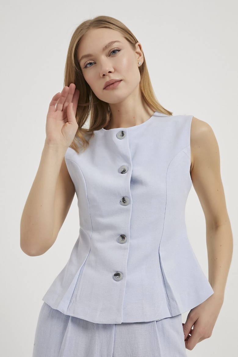 ARMALIFE 0434 DÜĞME DETAYLI KOLSUZ KETEN KARIŞIMLI KADIN YELEK