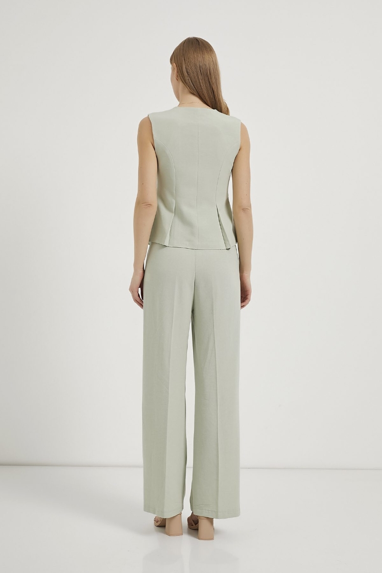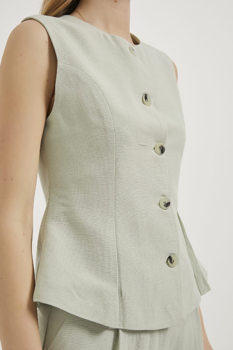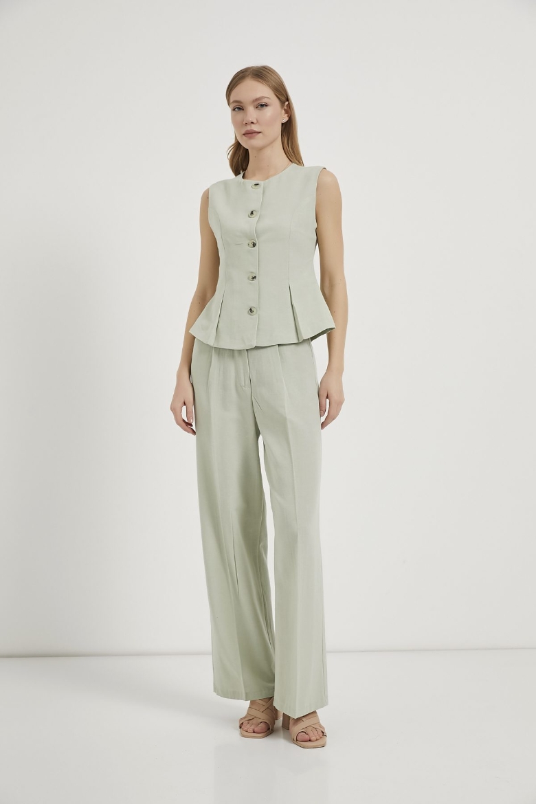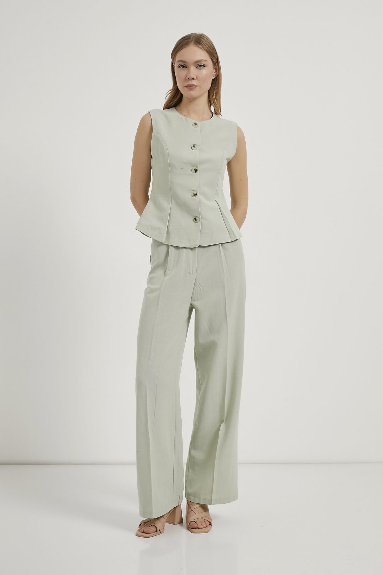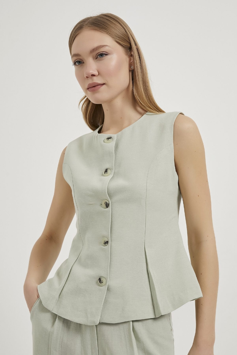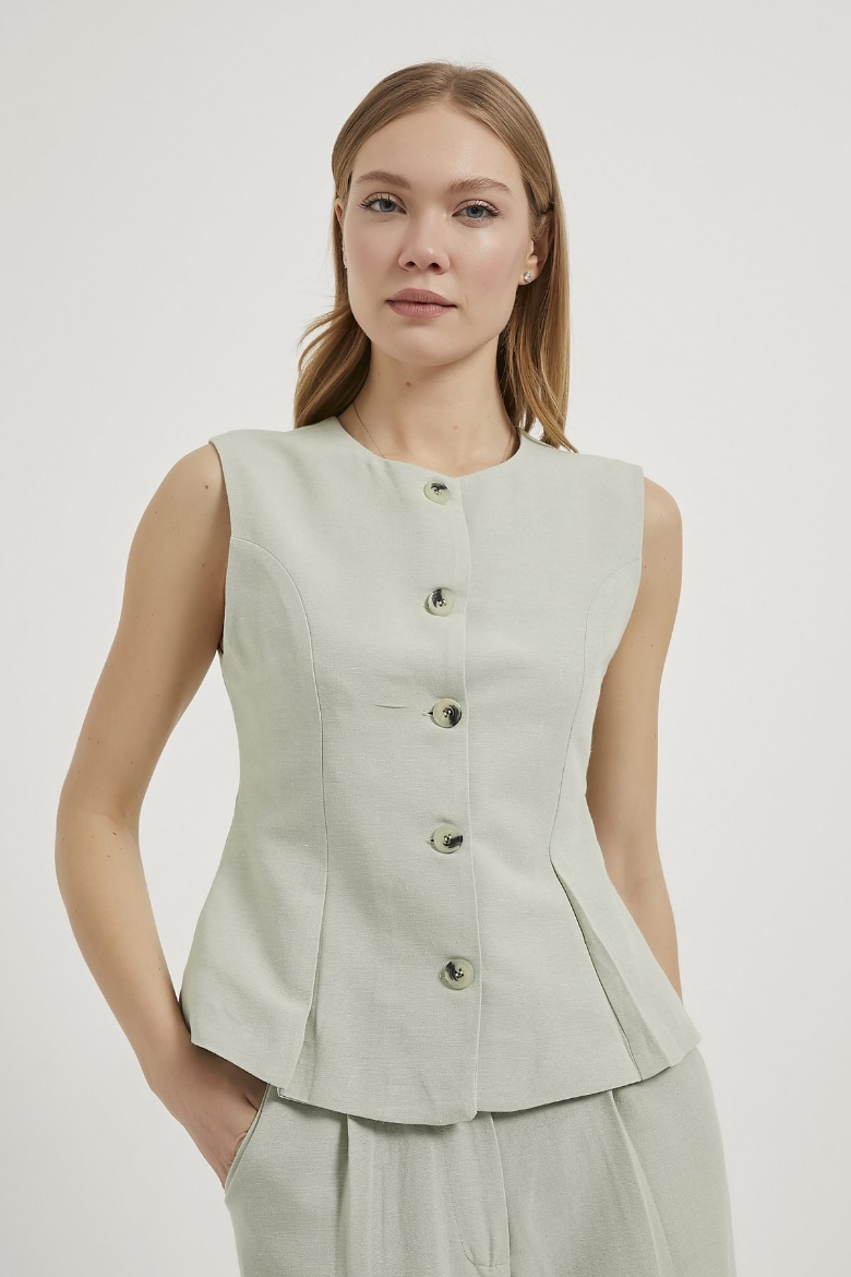 ARMALIFE 0434 DÜĞME DETAYLI KOLSUZ KETEN KARIŞIMLI KADIN YELEK