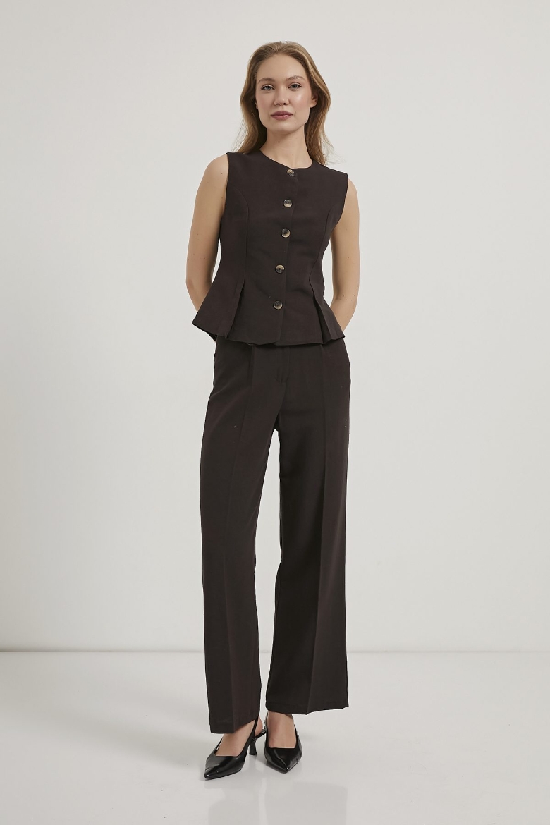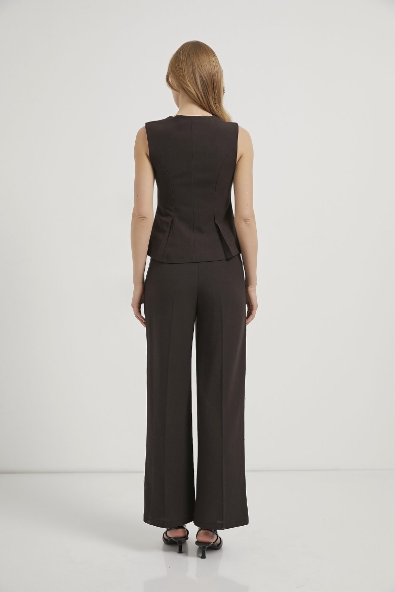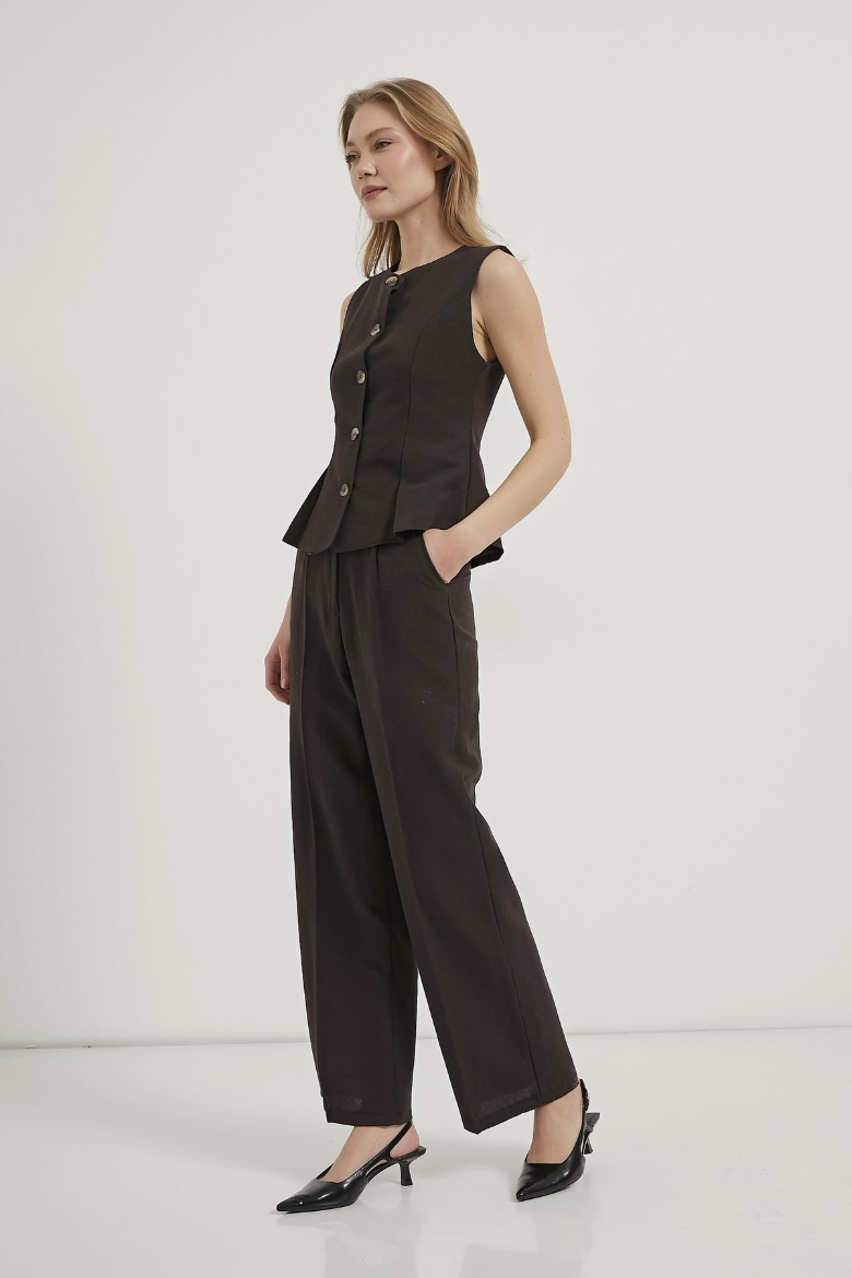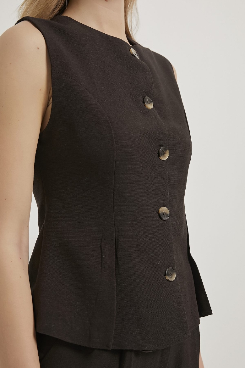 ARMALIFE 0434 DÜĞME DETAYLI KOLSUZ KETEN KARIŞIMLI KADIN YELEK