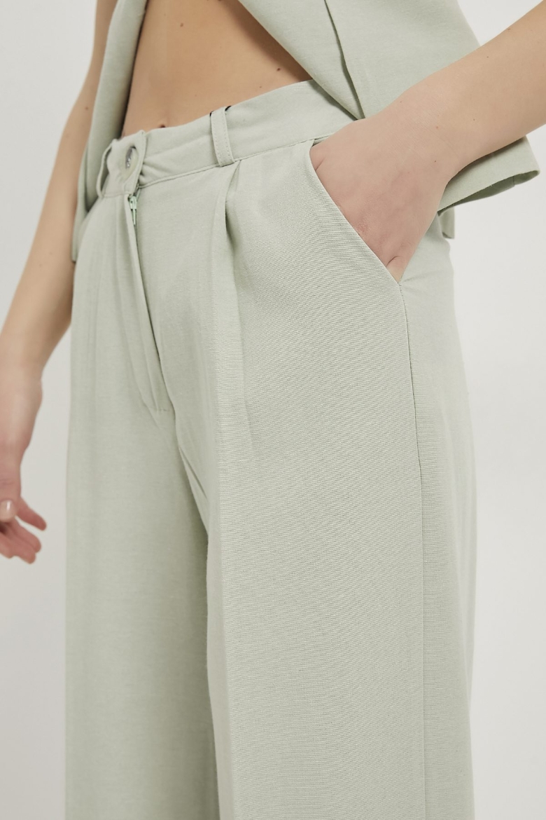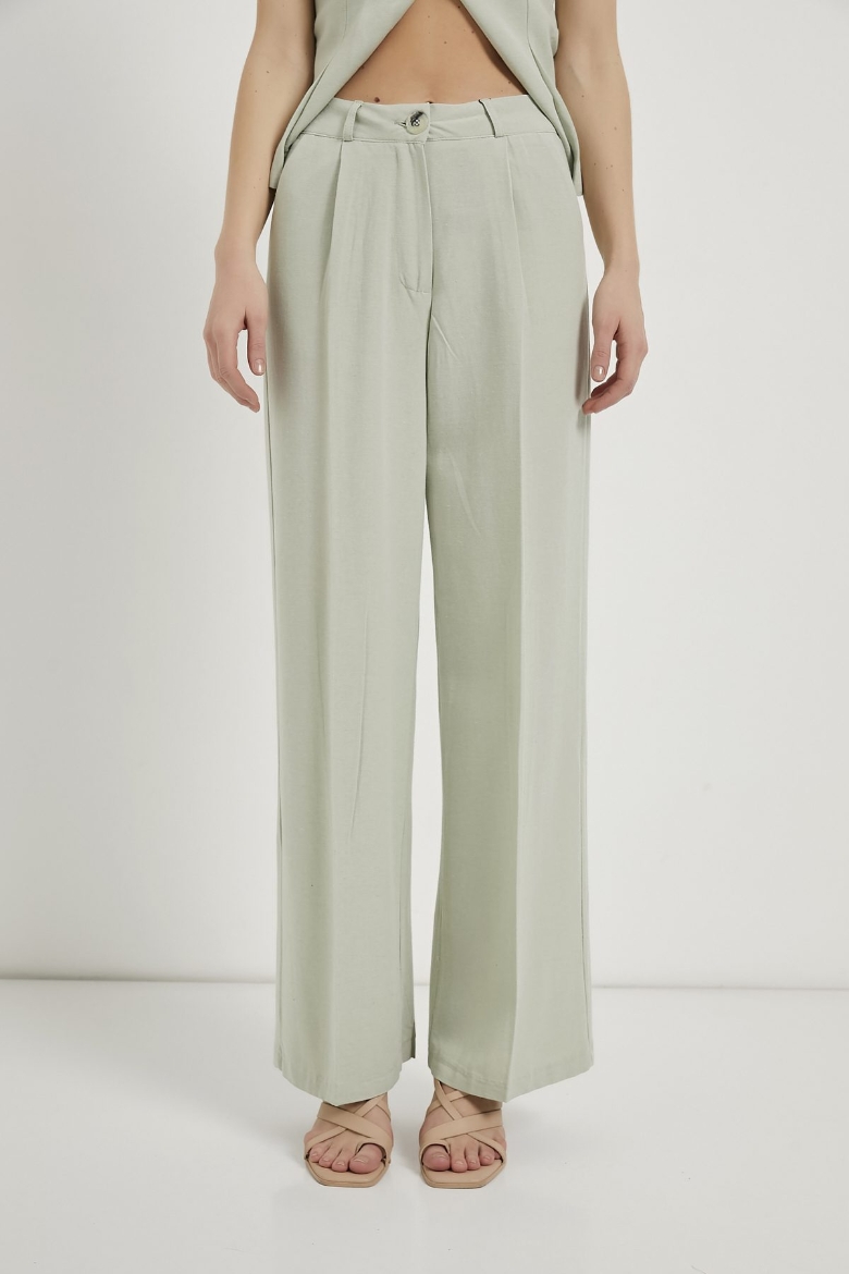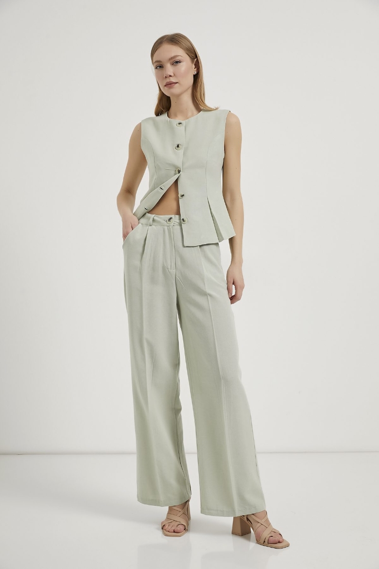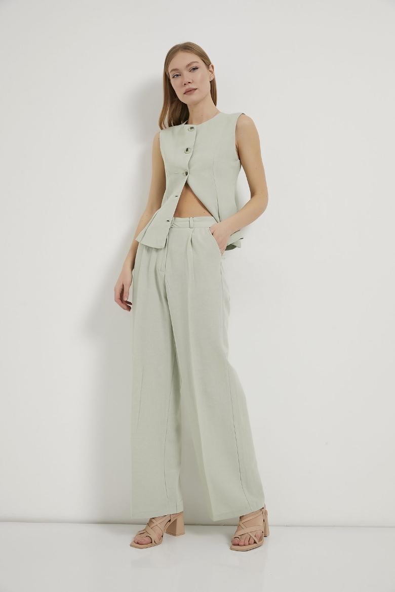 ARMALIFE 0435 PİLE DETAY DÜĞMELİ KETEN KARIŞIMLI KADIN PANTOLON