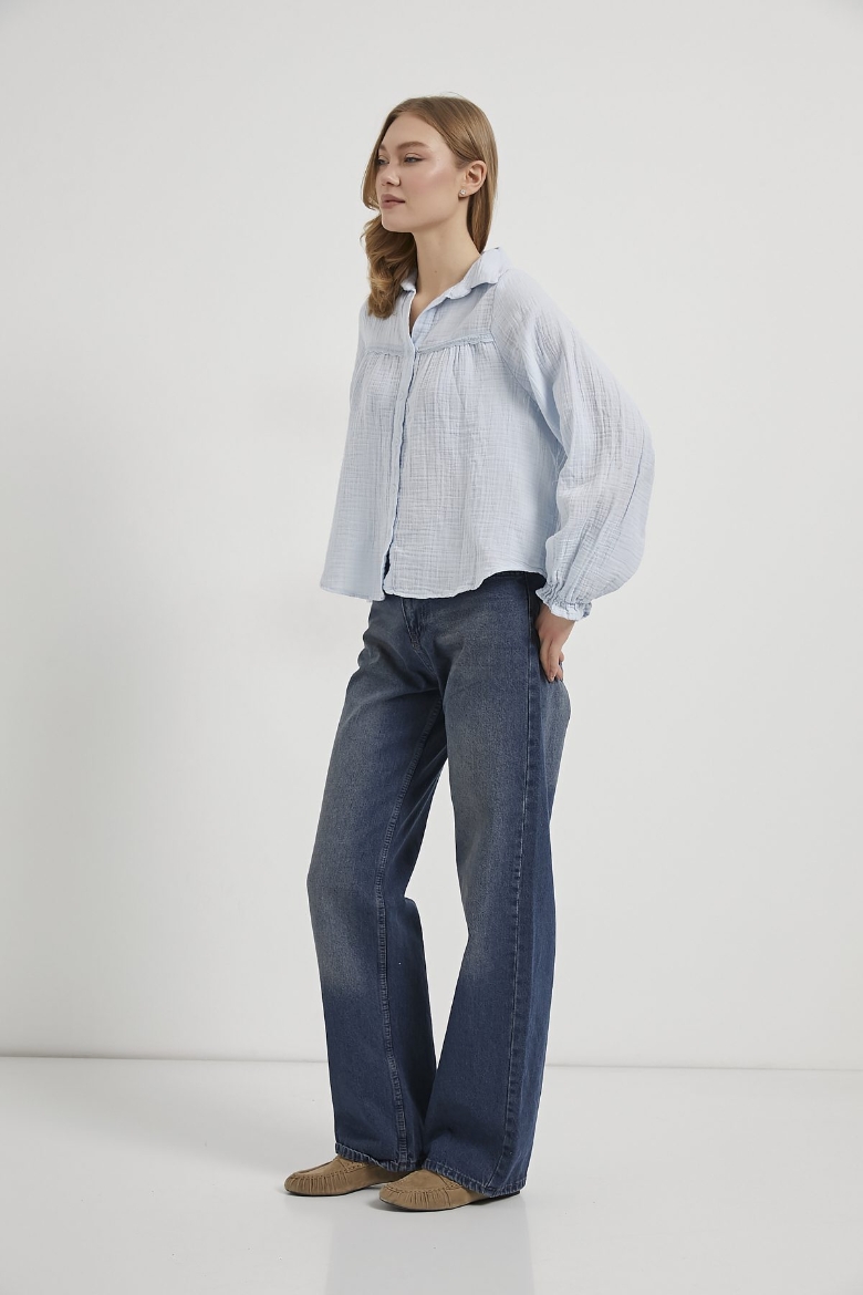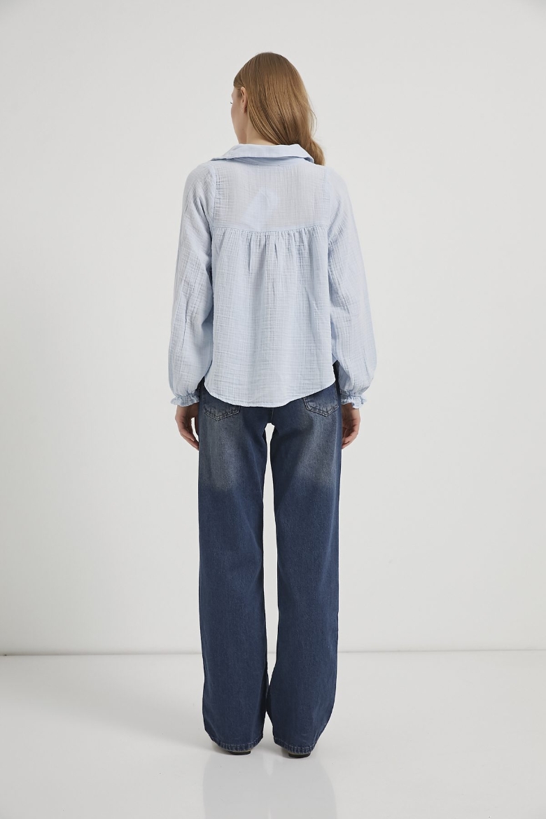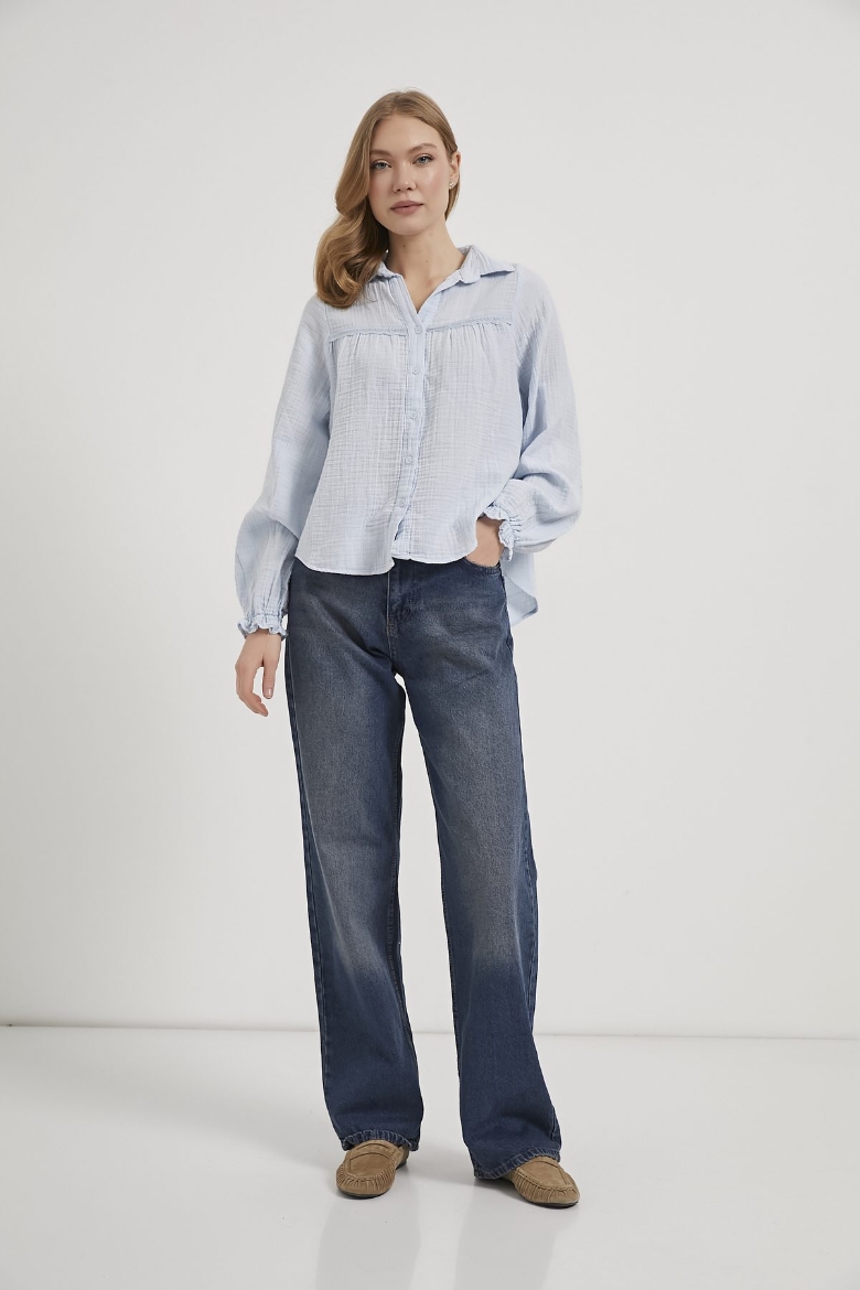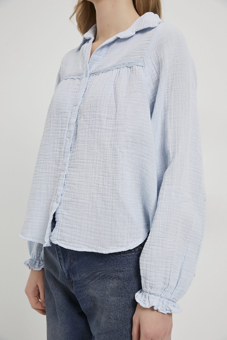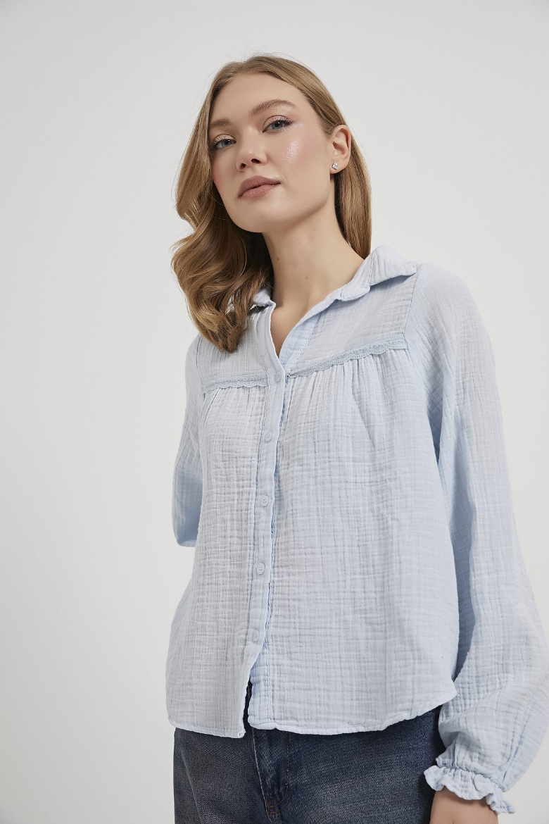 ARMALIFE 0436 GÜPÜR DETAY KOLU FIRFIRLI MÜSLİN KADIN GÖMLEK
