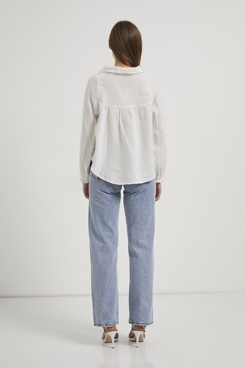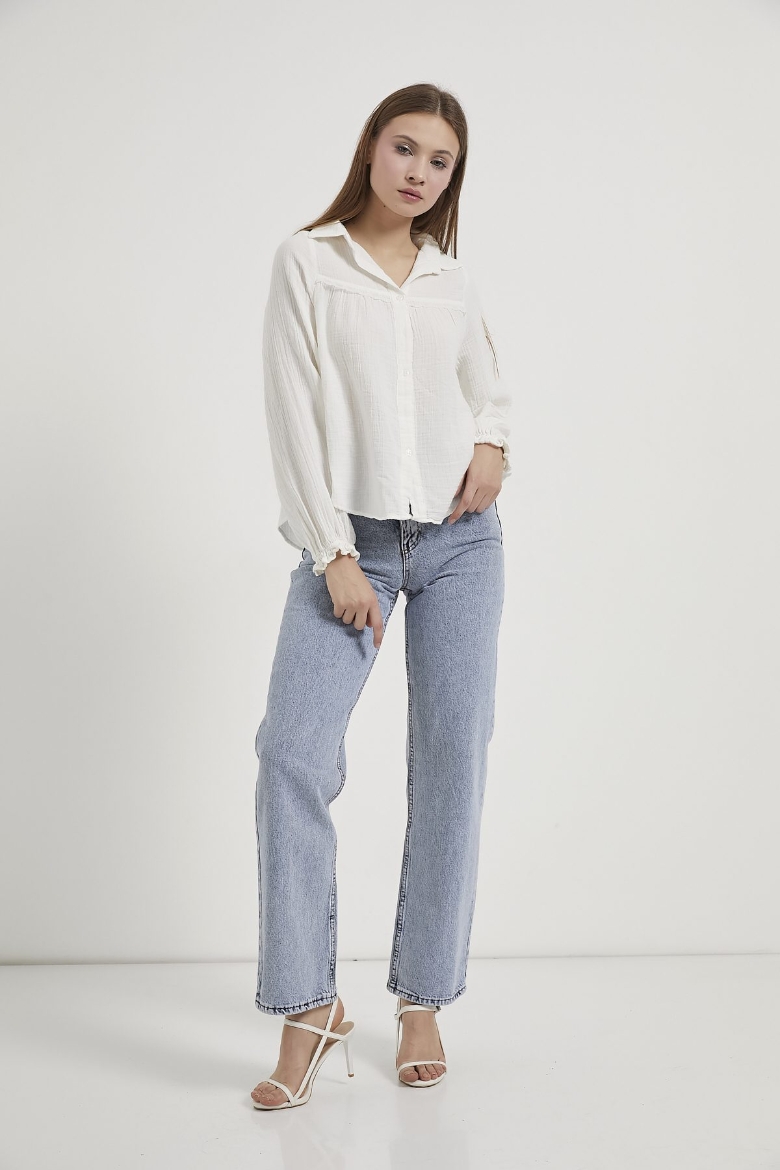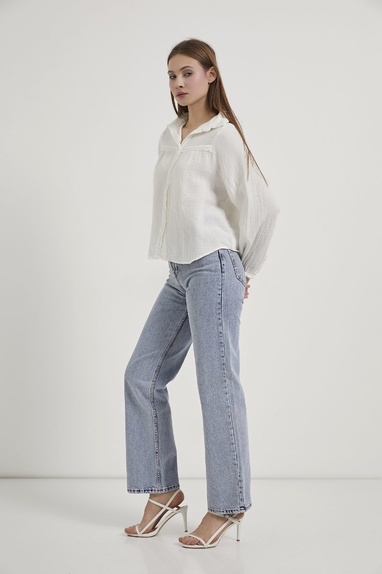 ARMALIFE 0436 GÜPÜR DETAY KOLU FIRFIRLI MÜSLİN KADIN GÖMLEK