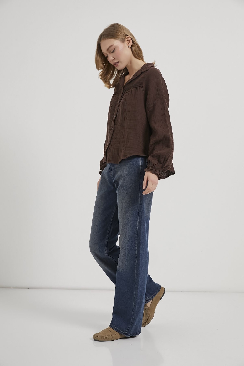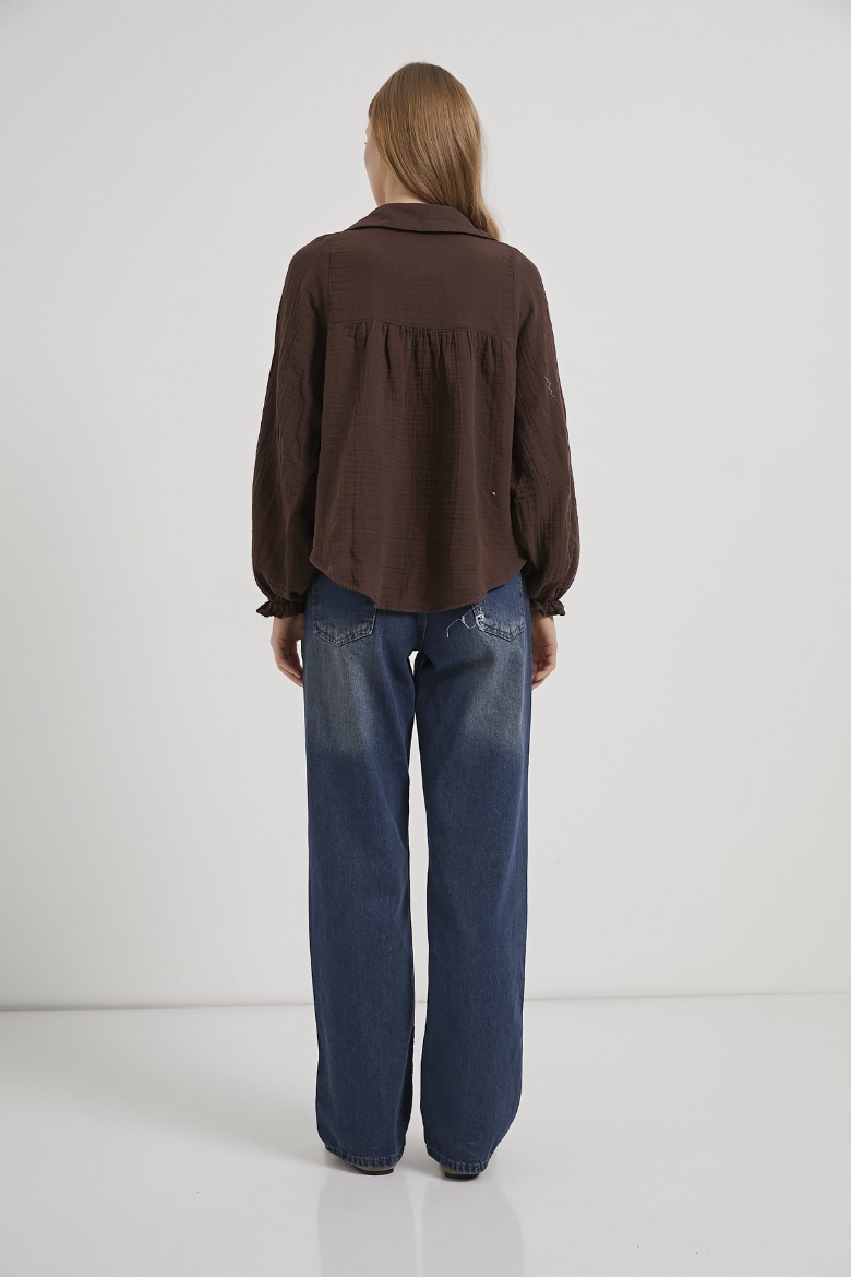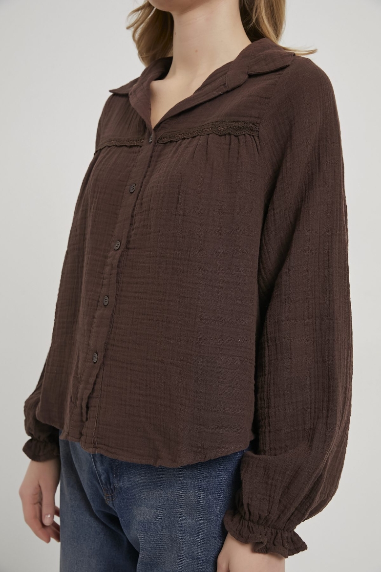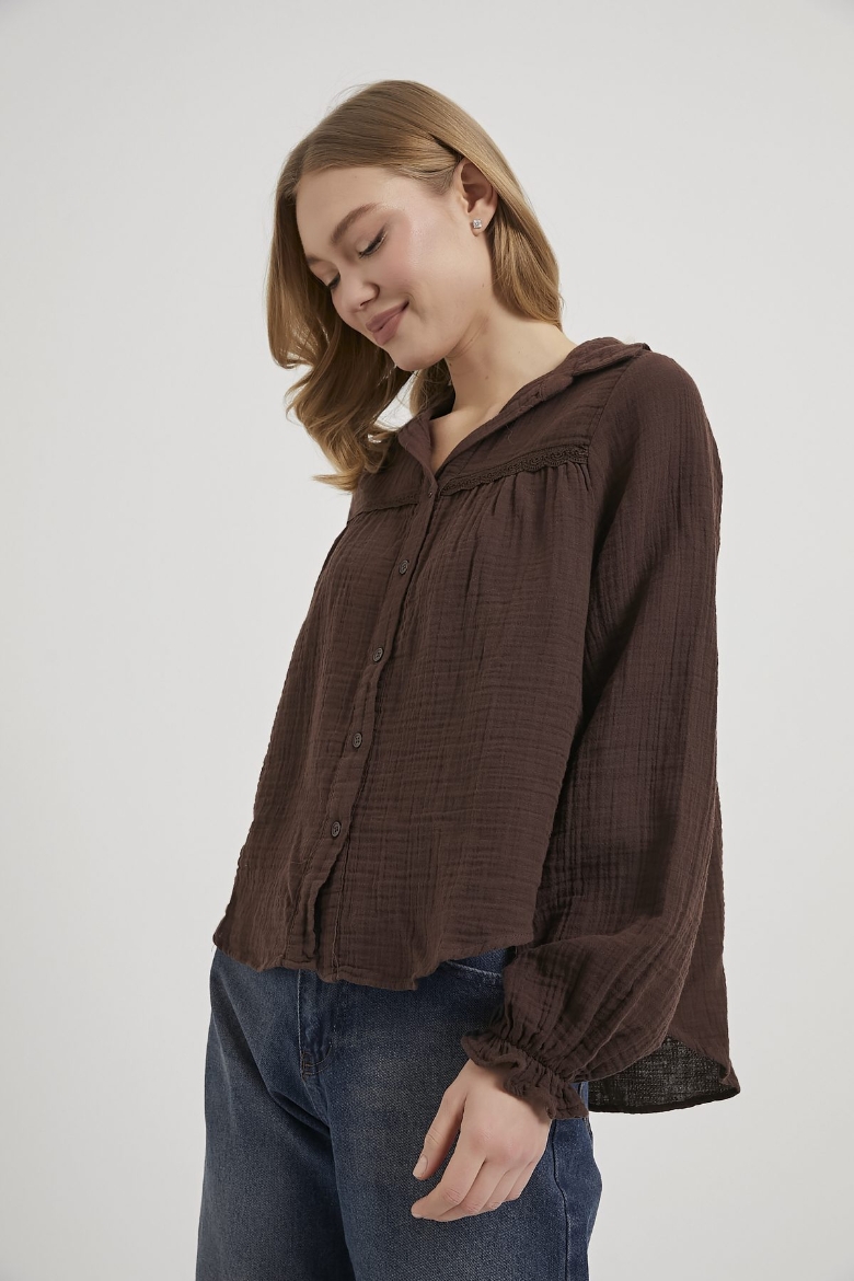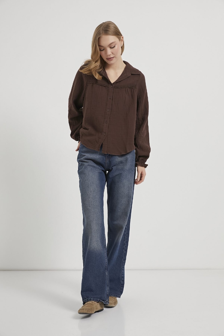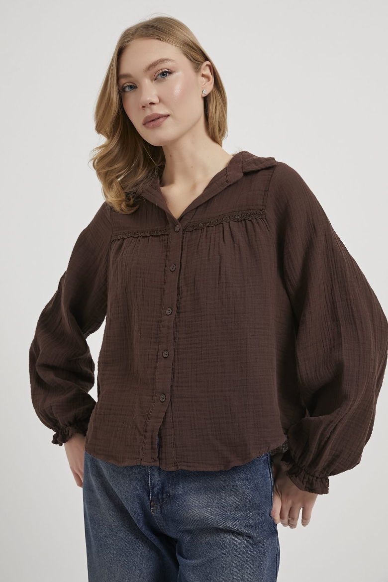 ARMALIFE 0436 GÜPÜR DETAY KOLU FIRFIRLI MÜSLİN KADIN GÖMLEK