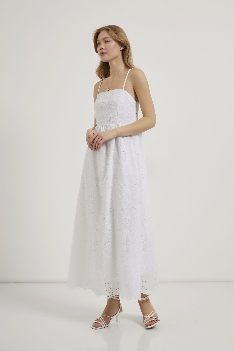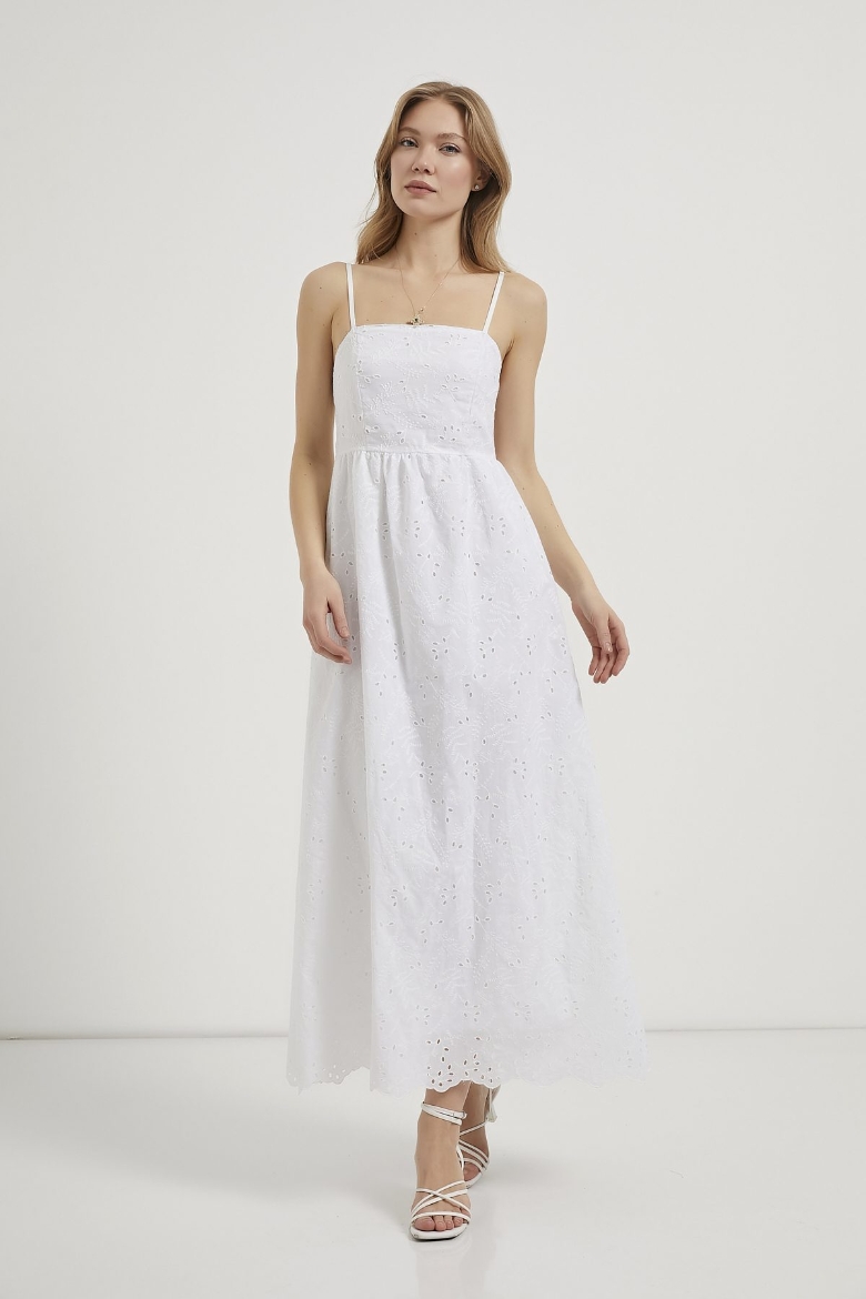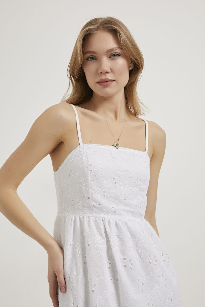ARMALIFE 0440 AYARLANABİLİR ASKI DETAYLI FERMUARLI BRODE KADIN ELBİSE