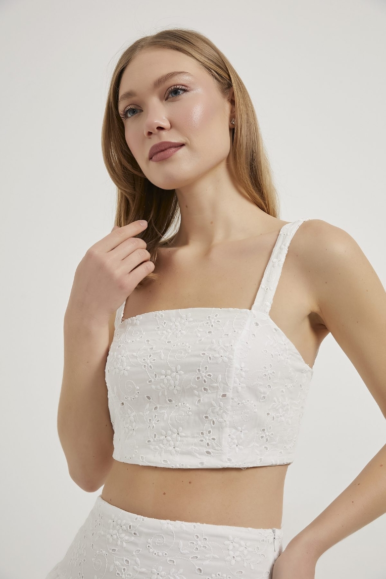 ARMALIFE 0443 SIRT ESNEK ASKILI BRODE KADIN BLUZ