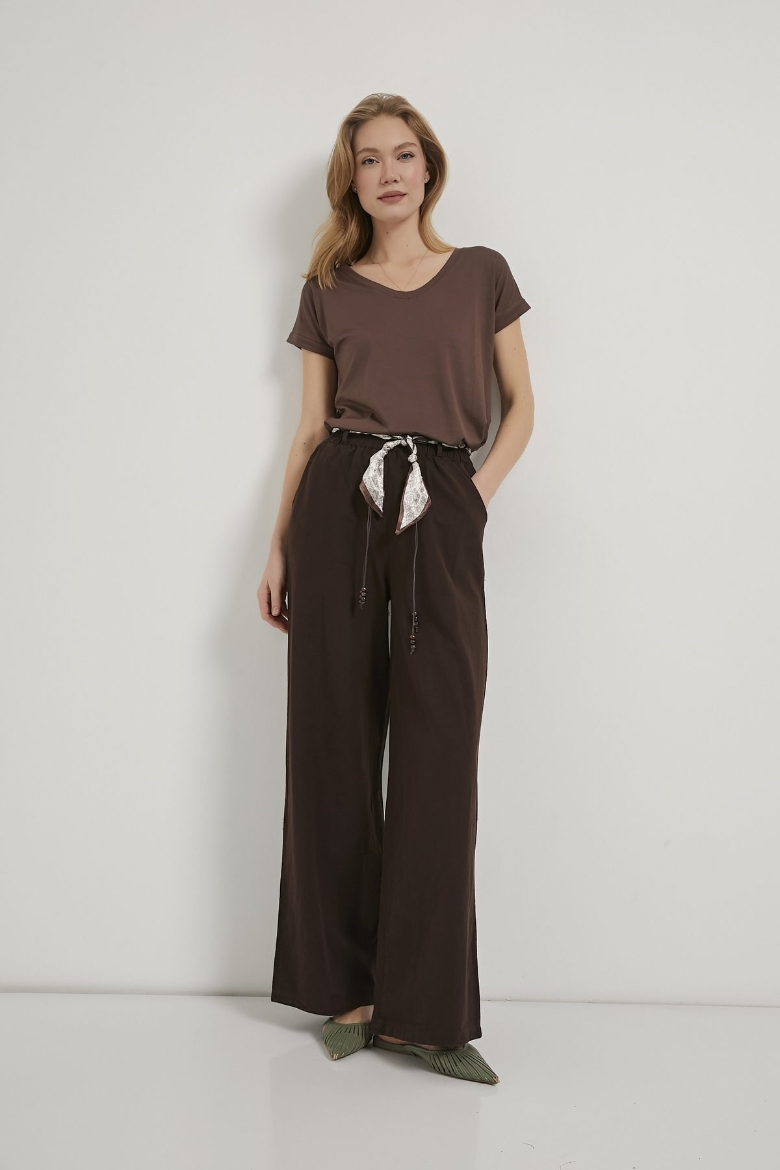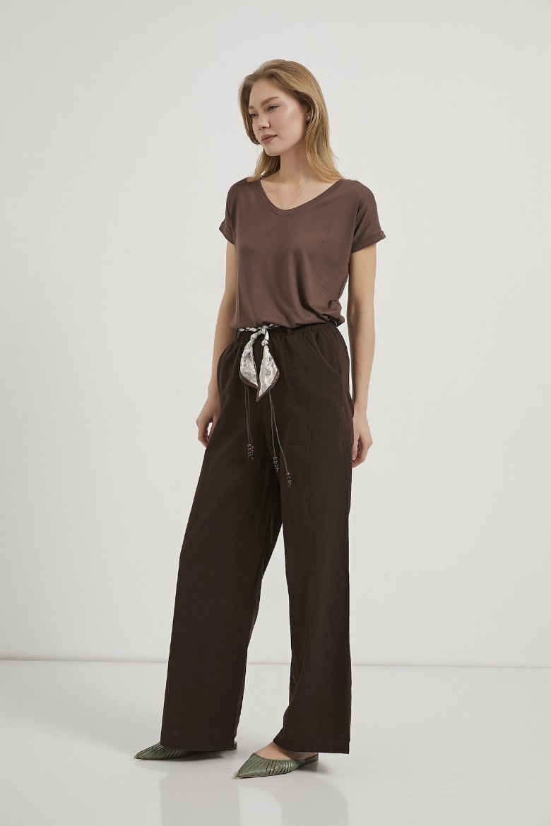 ARMALIFE 045 PAMUK KARIŞIMLI FULAR AKSESUARLI BELİ LASTİKLİ KADIN PANTOLON