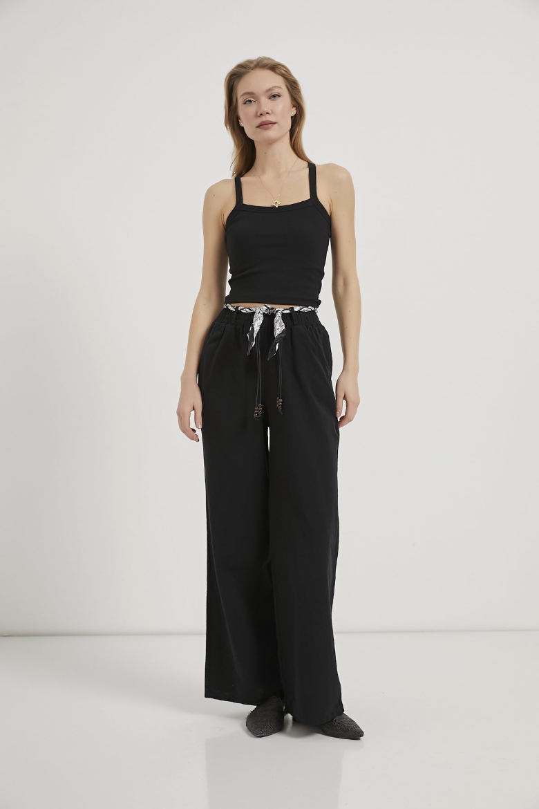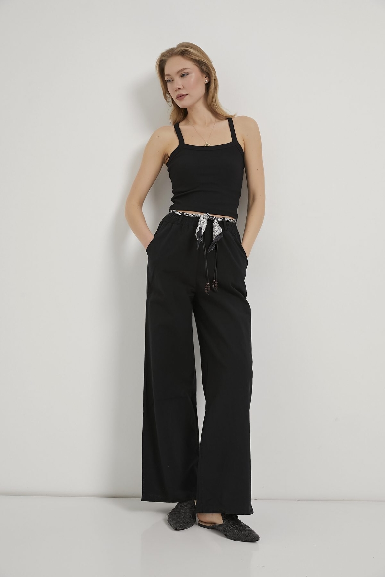 ARMALIFE 045 PAMUK KARIŞIMLI FULAR AKSESUARLI BELİ LASTİKLİ KADIN PANTOLON
