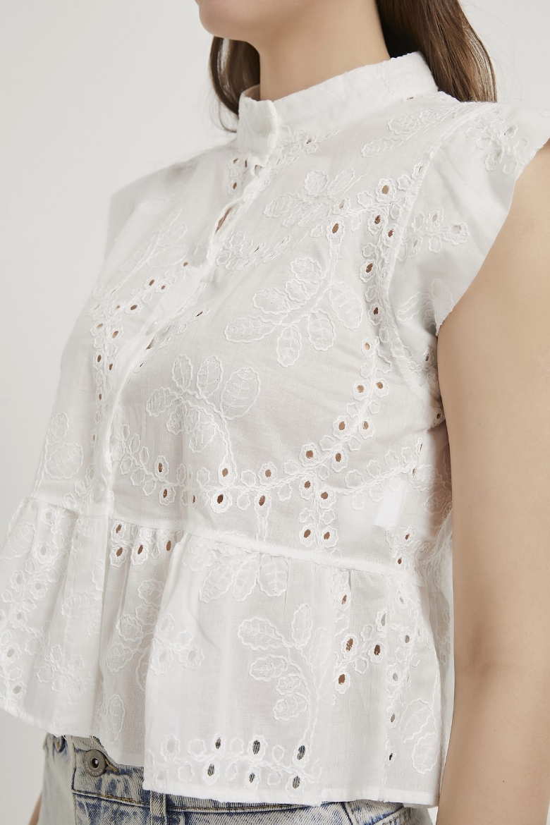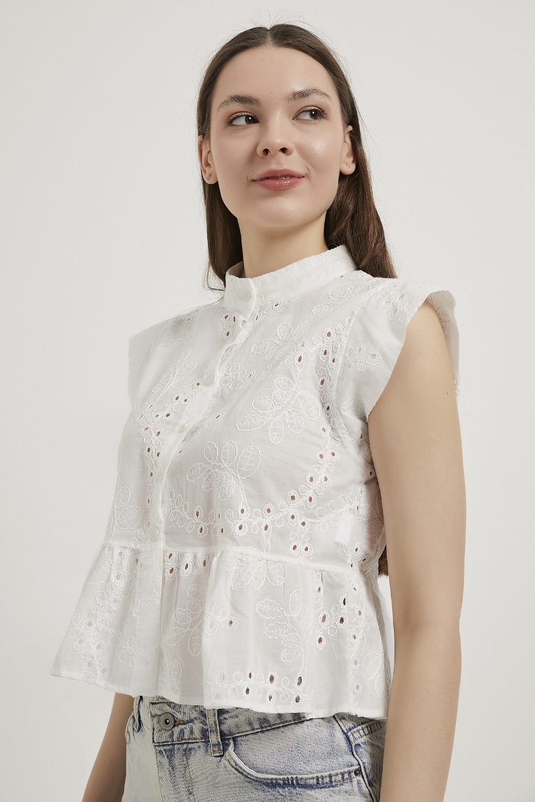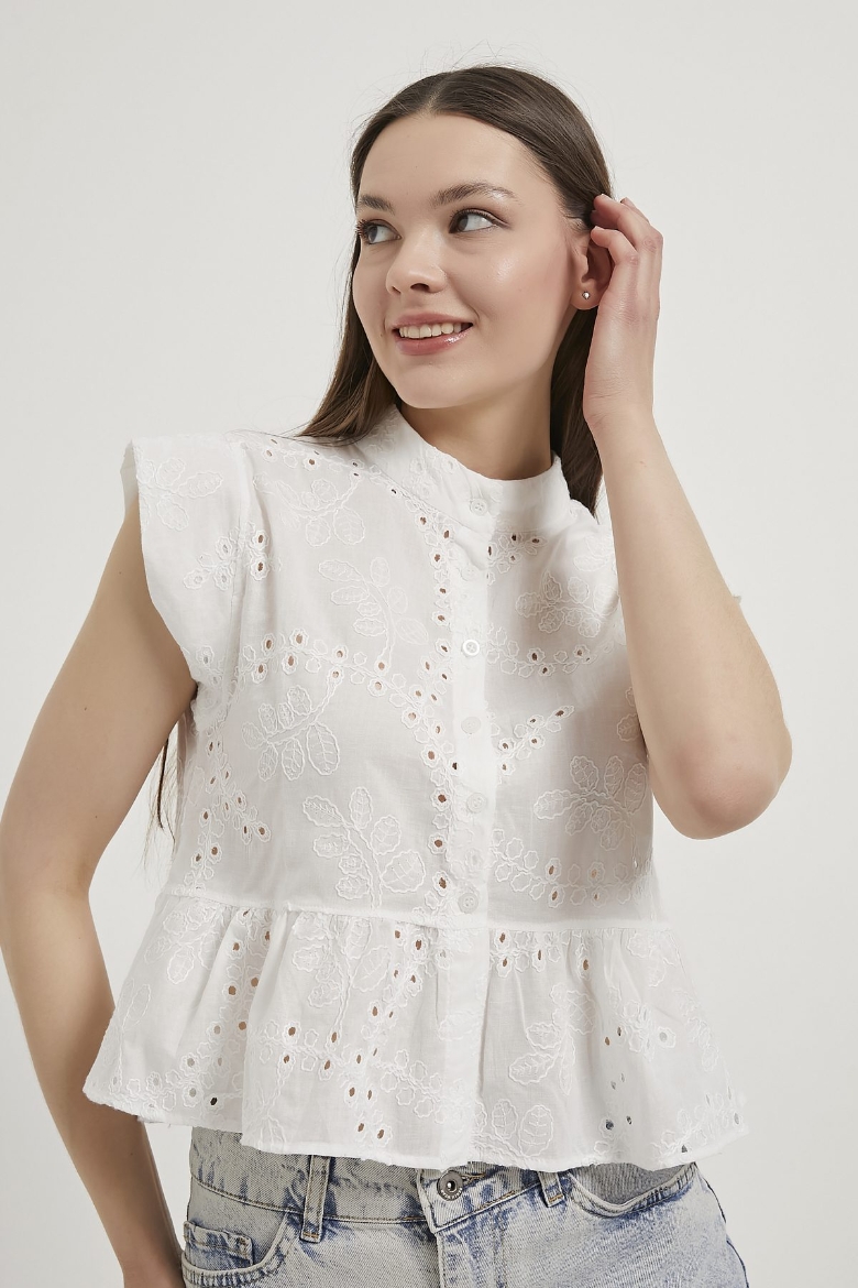 ARMALIFE 0454 ETEĞİ VOLANLI KOLSUZ BRODE KADIN GÖMLEK