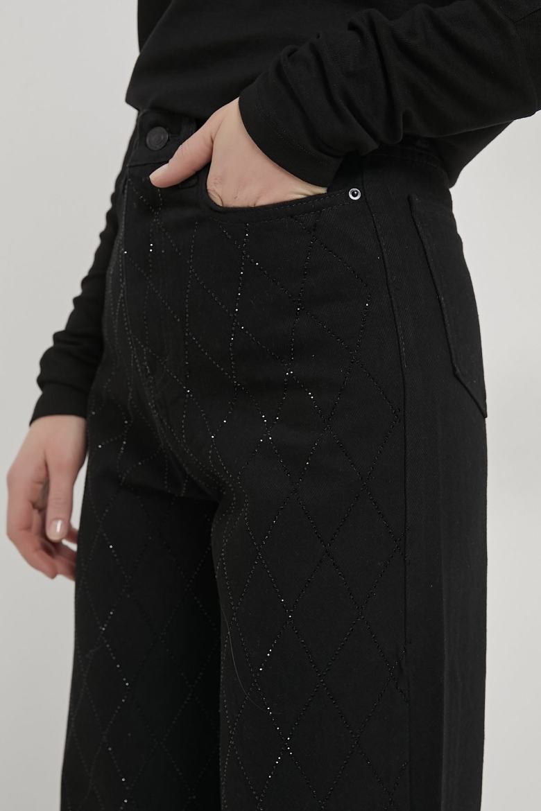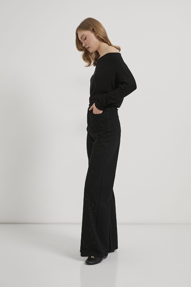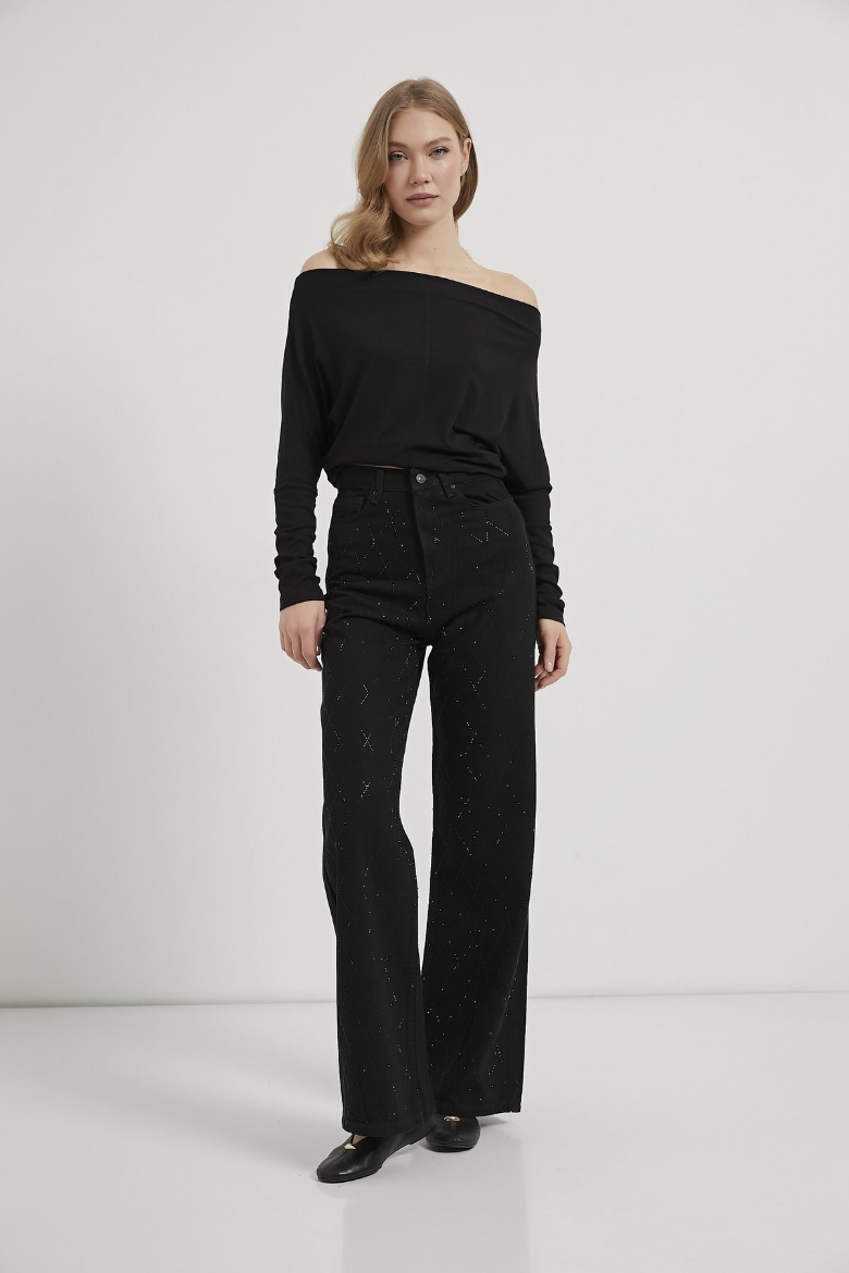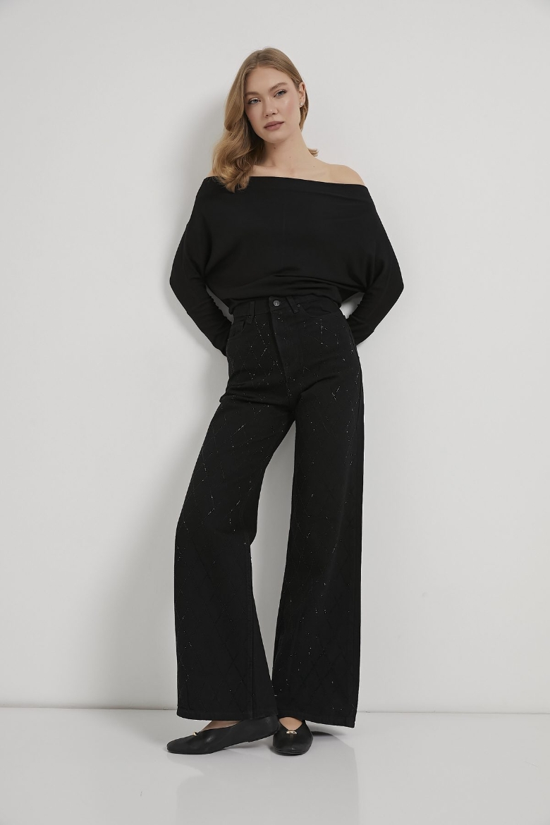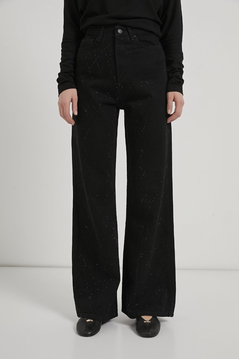 ARMALIFE 058 YÜKSEK BEL TAŞLI BOL PAÇA DENIM KADIN PANTOLON