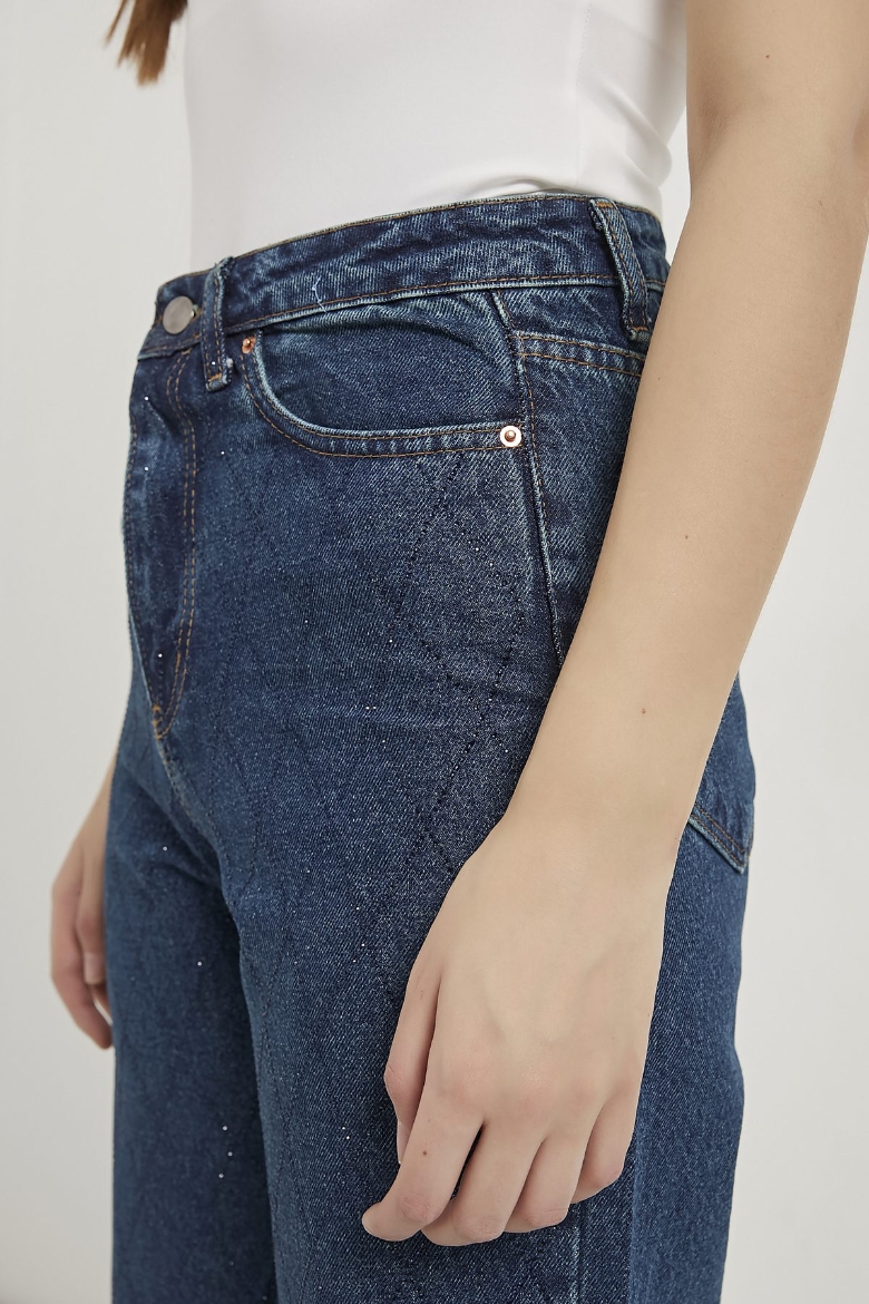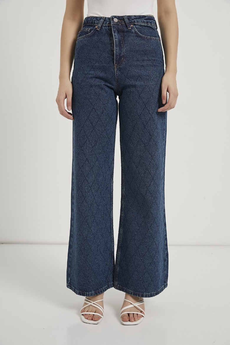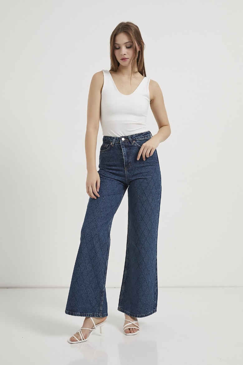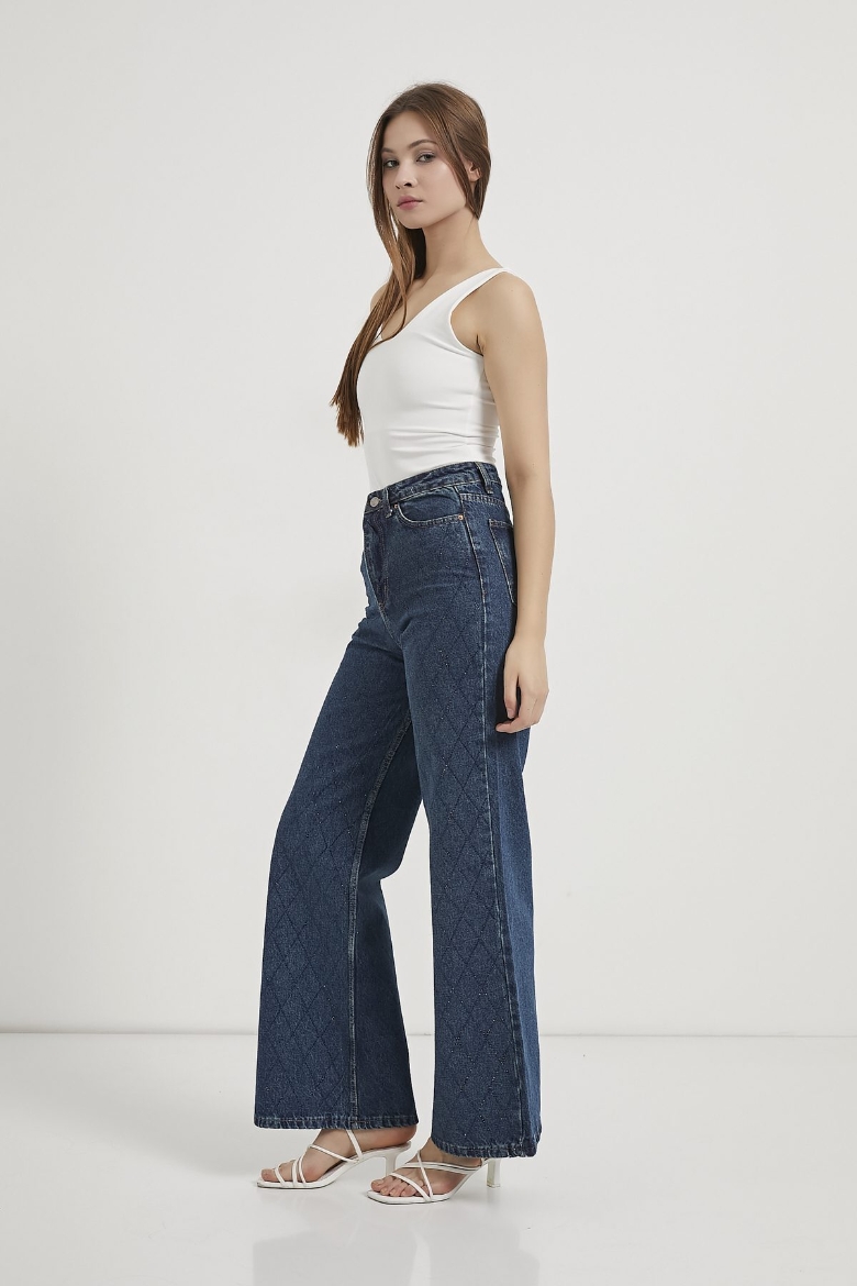 ARMALIFE 058 YÜKSEK BEL TAŞLI BOL PAÇA DENIM KADIN PANTOLON