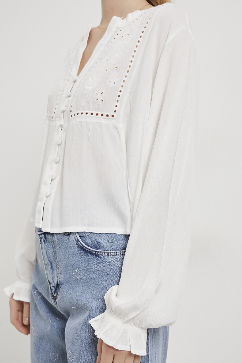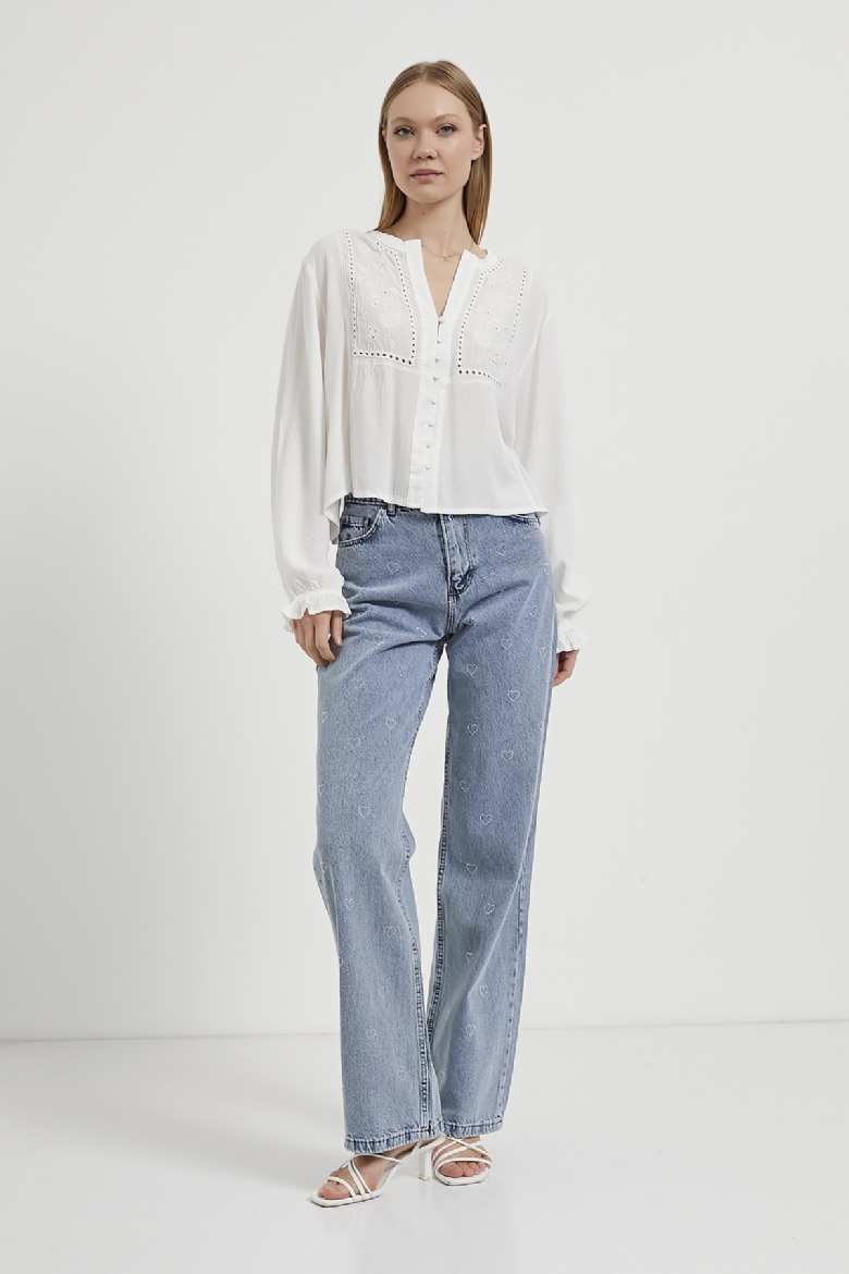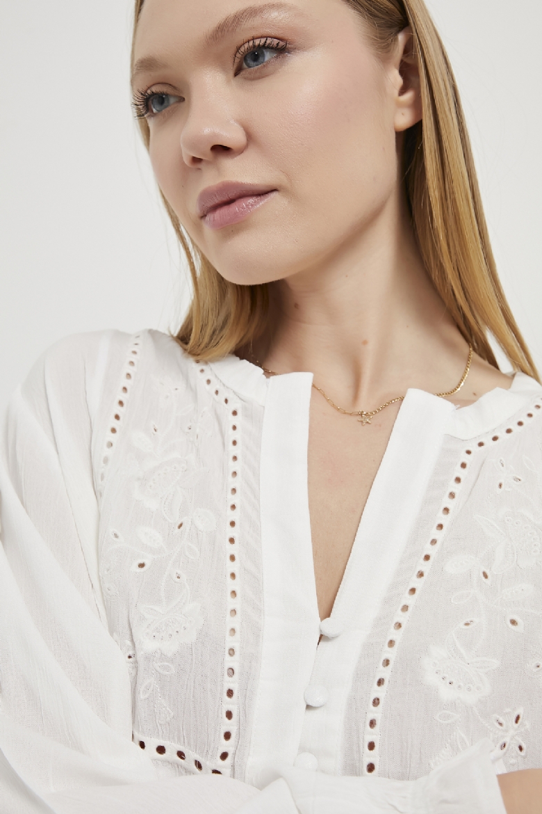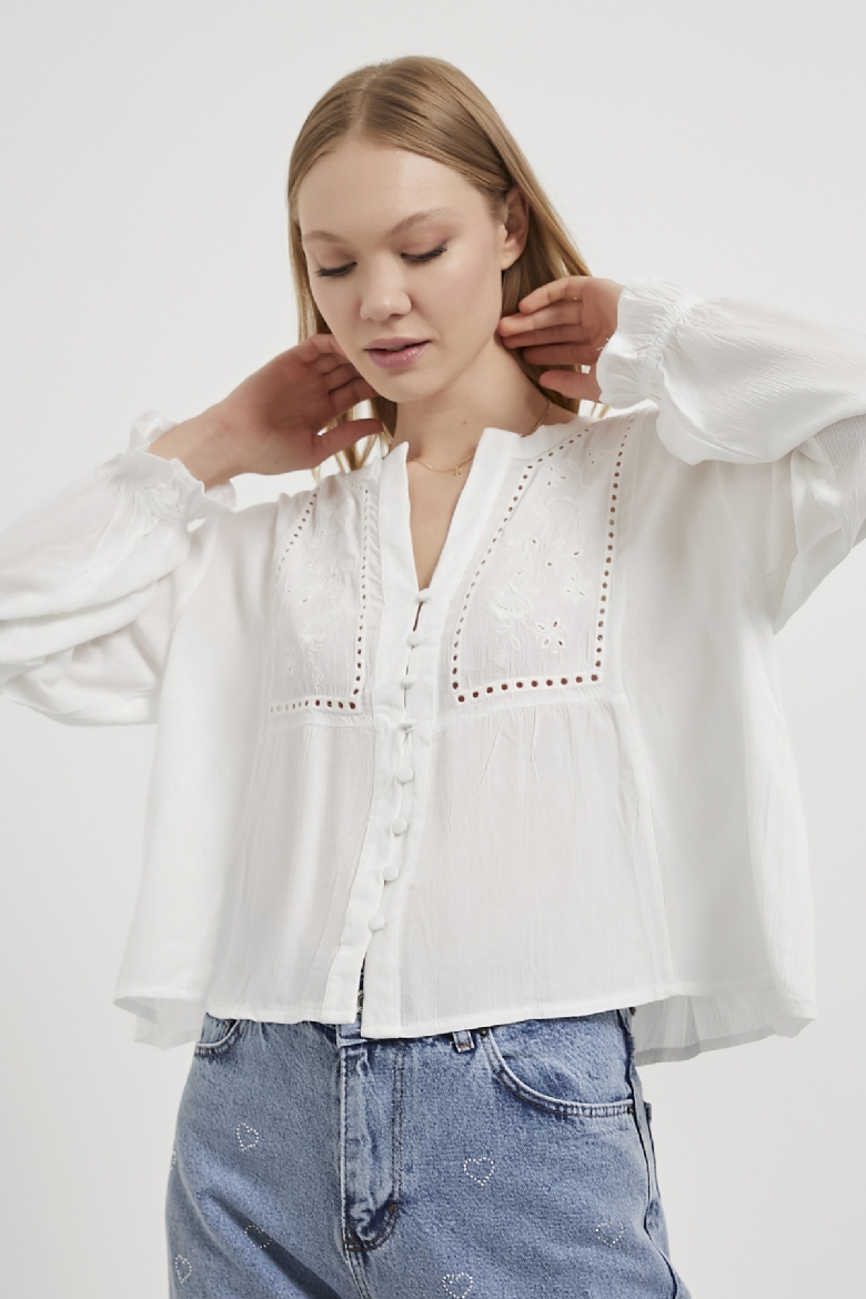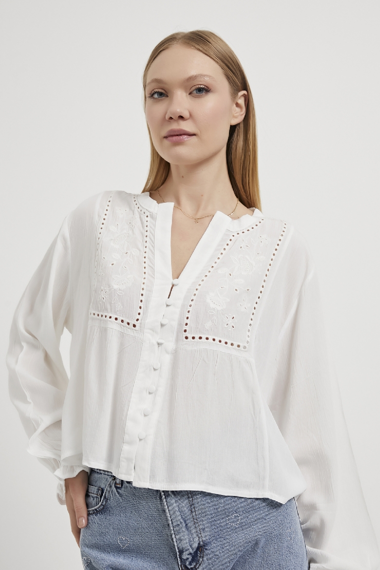 ARMALIFE 10002 DÜĞME DETAYLI İŞLEMELİ KADIN BLUZ