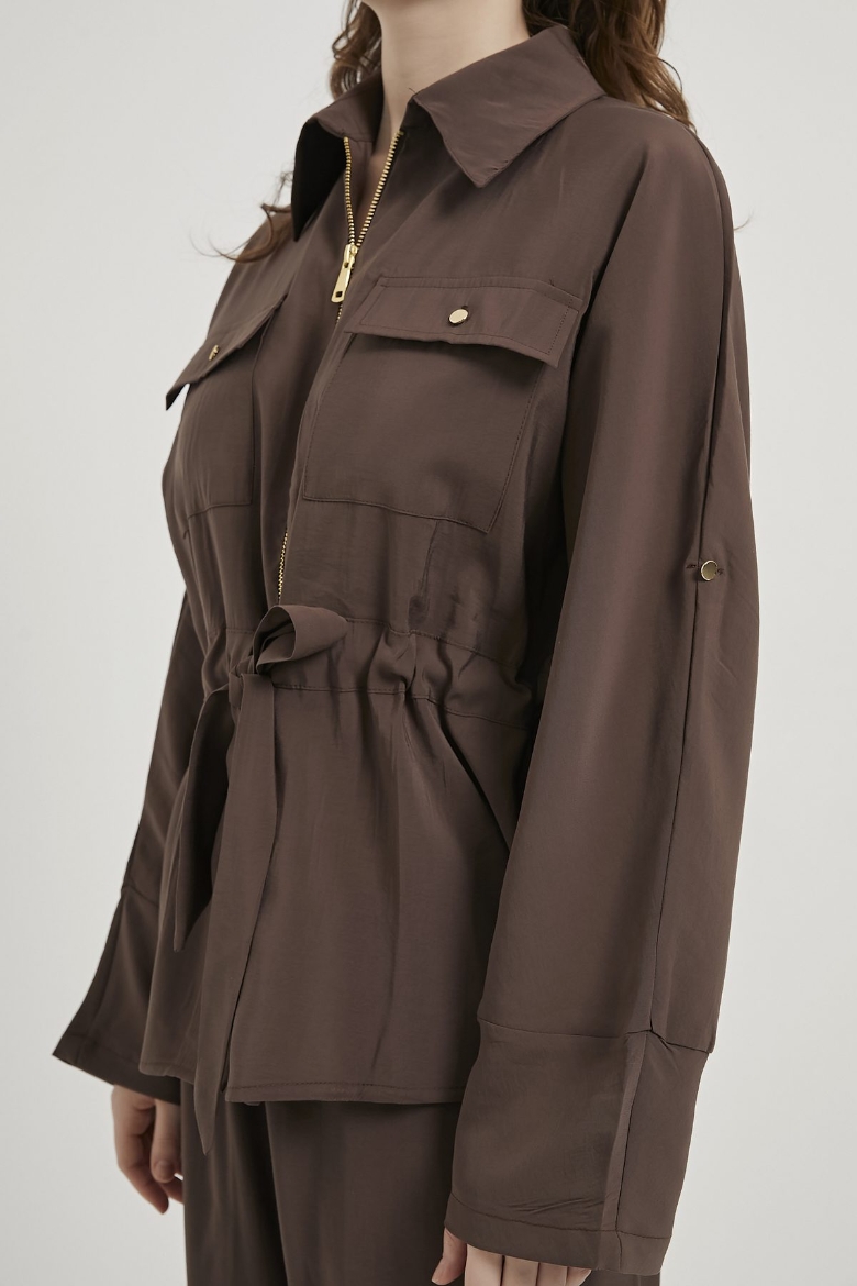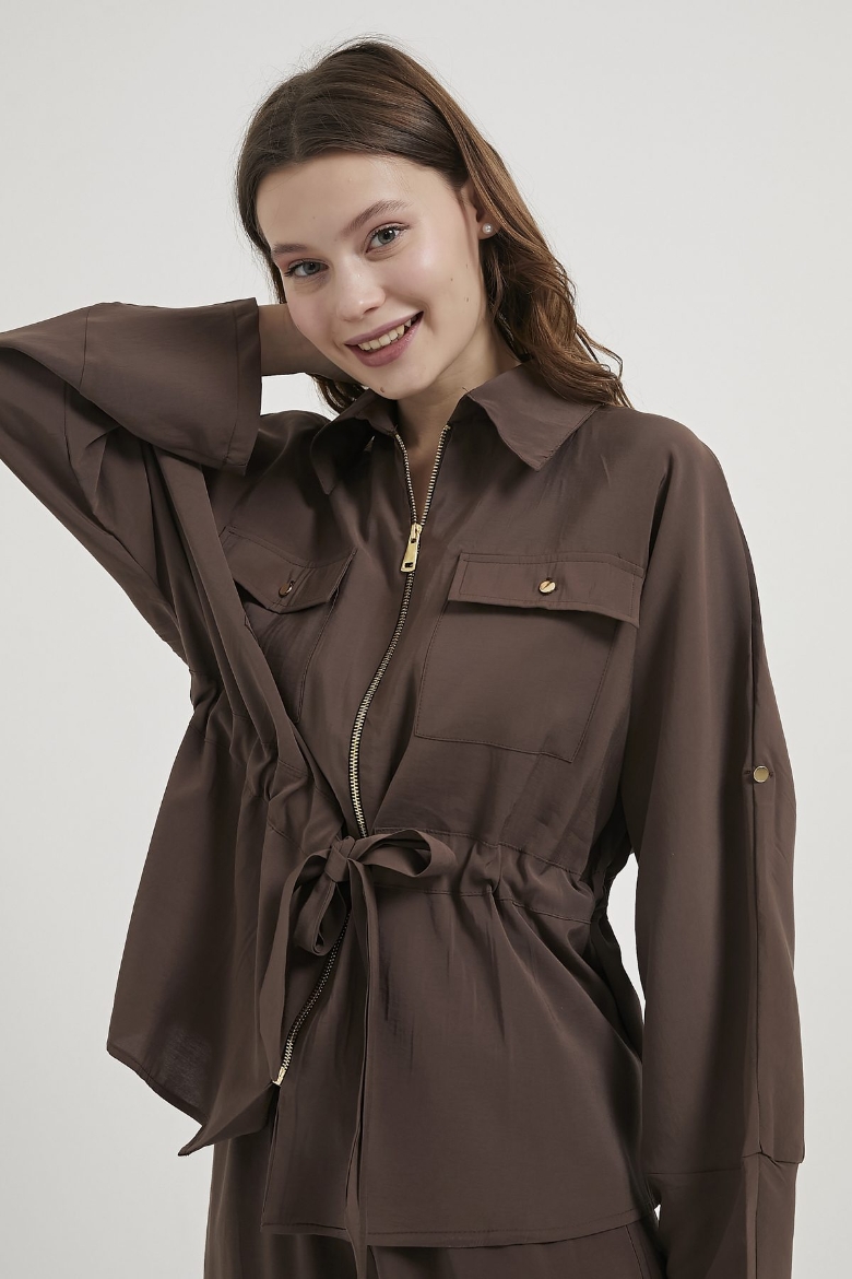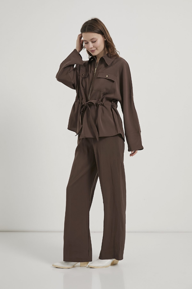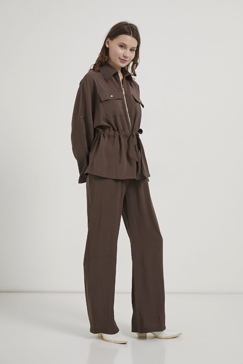 ARMALIFE 1003 PREMIUM KOL APOLETLİ BELİ KEMERLİ FERMUARLI TUNİK BELİ LASTİKLİ PANTOLON KADIN TAKIM