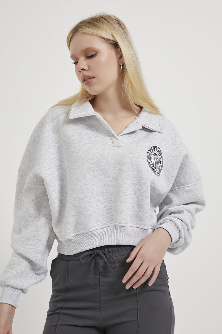 ARMALIFE 10170 YAKA AÇIK CROP BASKILI ŞARDONLU KADIN SWEAT