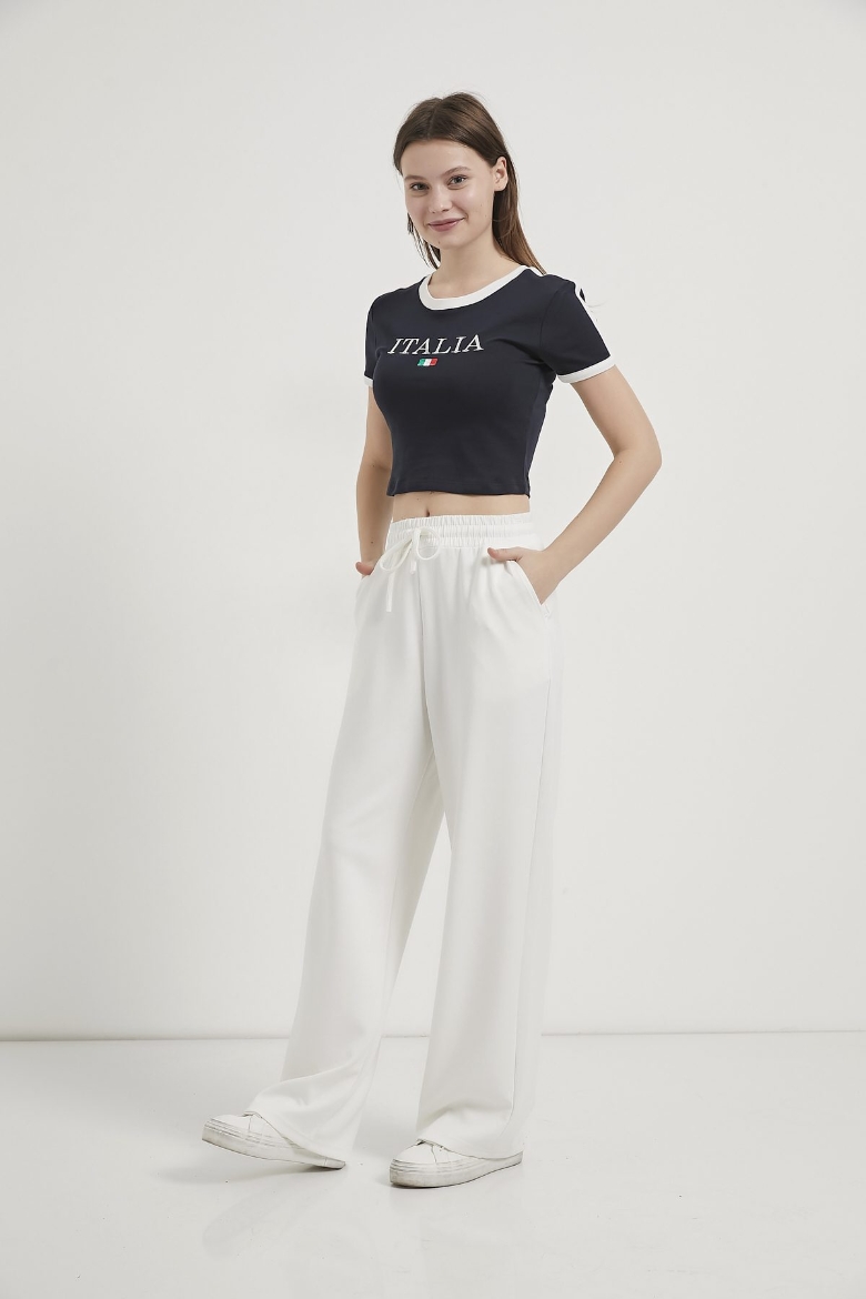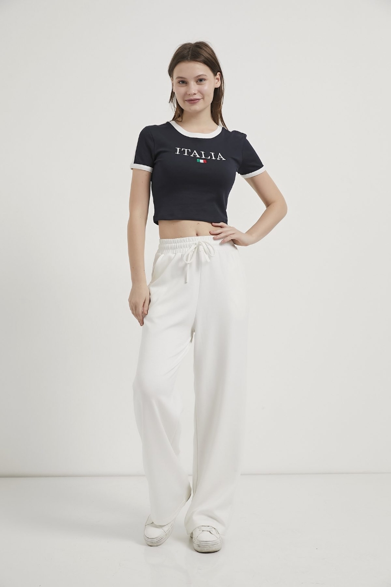 ARMALIFE 10294 BİYE DETAY NAKIŞLI CROP KADIN T-SHIRT