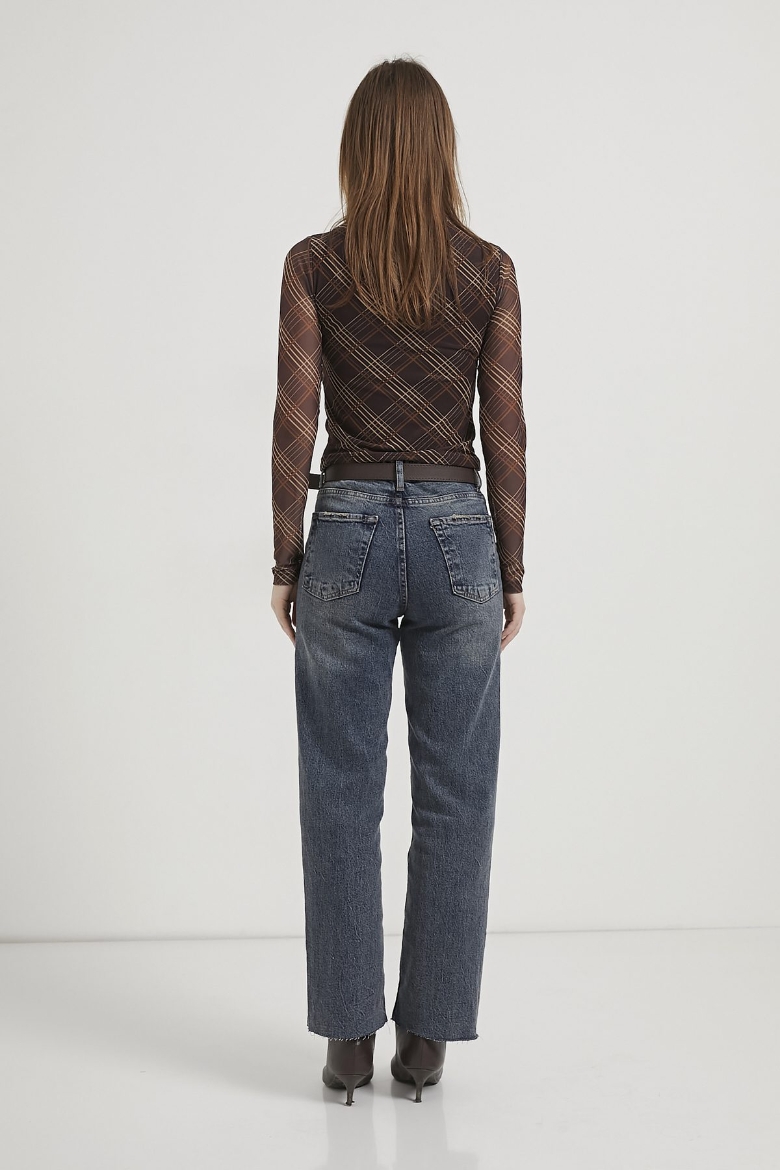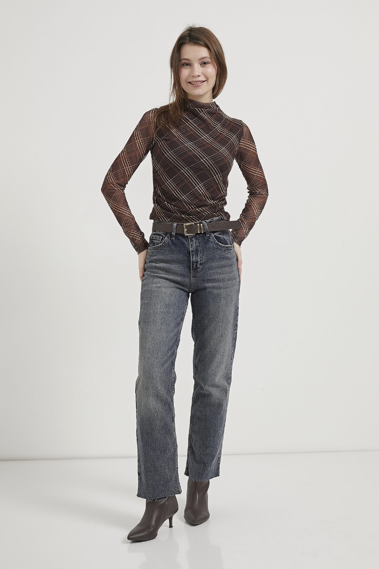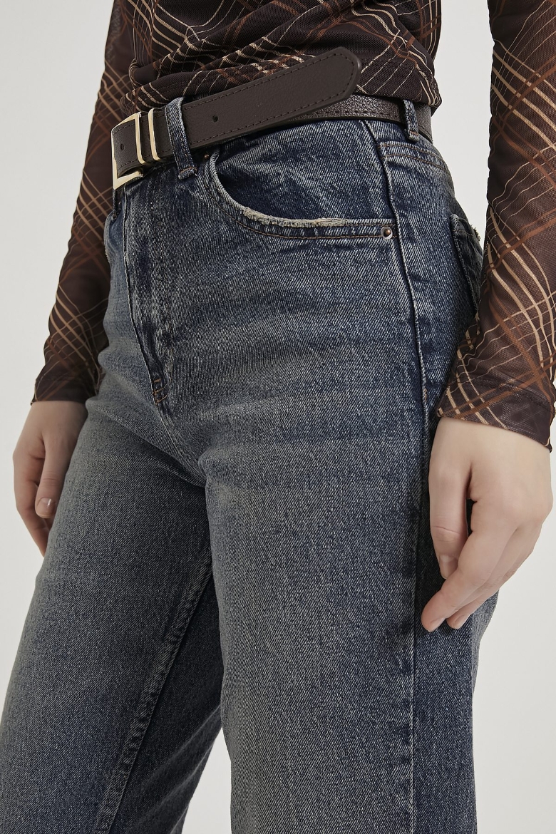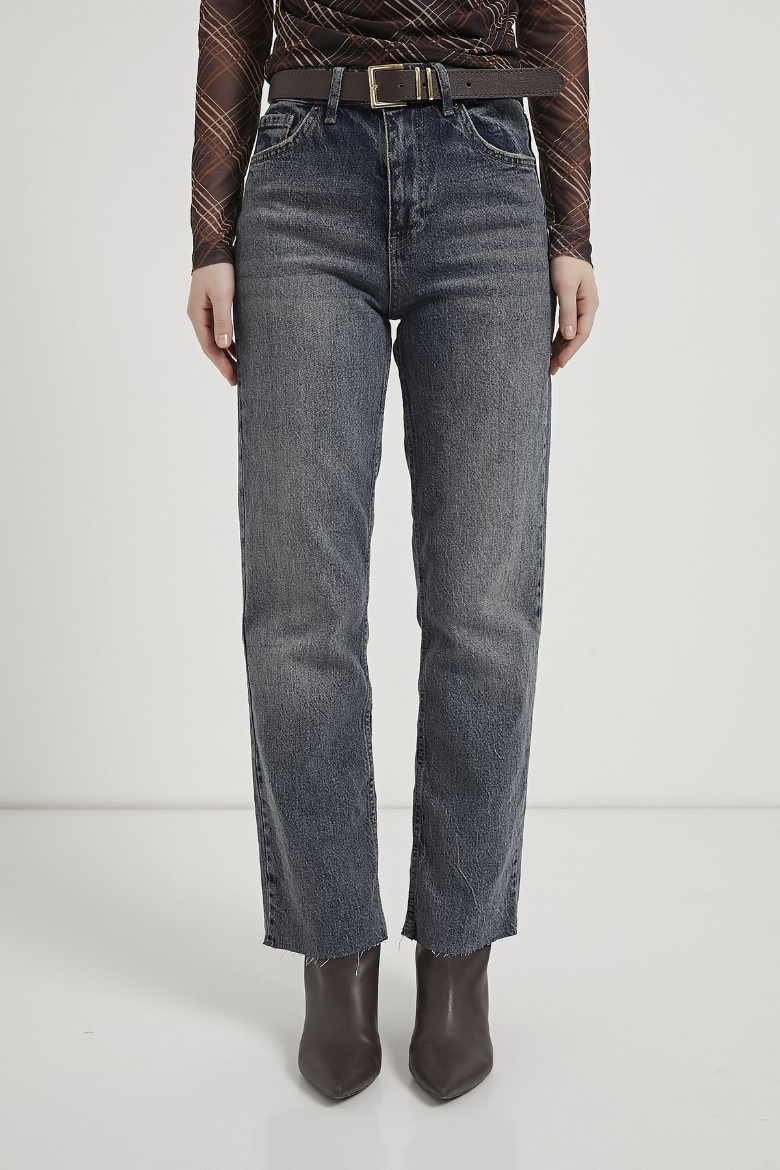 ARMALIFE 103 PAÇASI KESİK STRAIGHT FIT KEMERLİ ESNEK DENİM KADIN PANTOLON