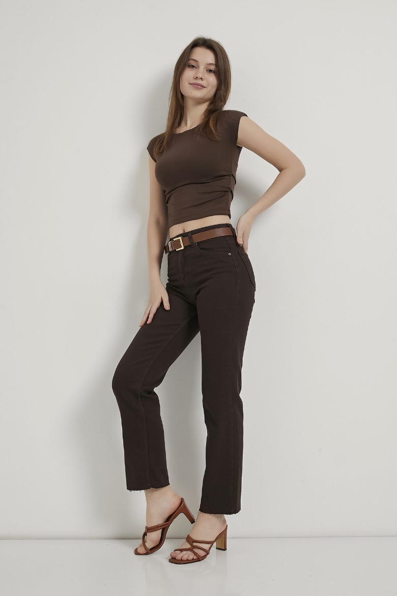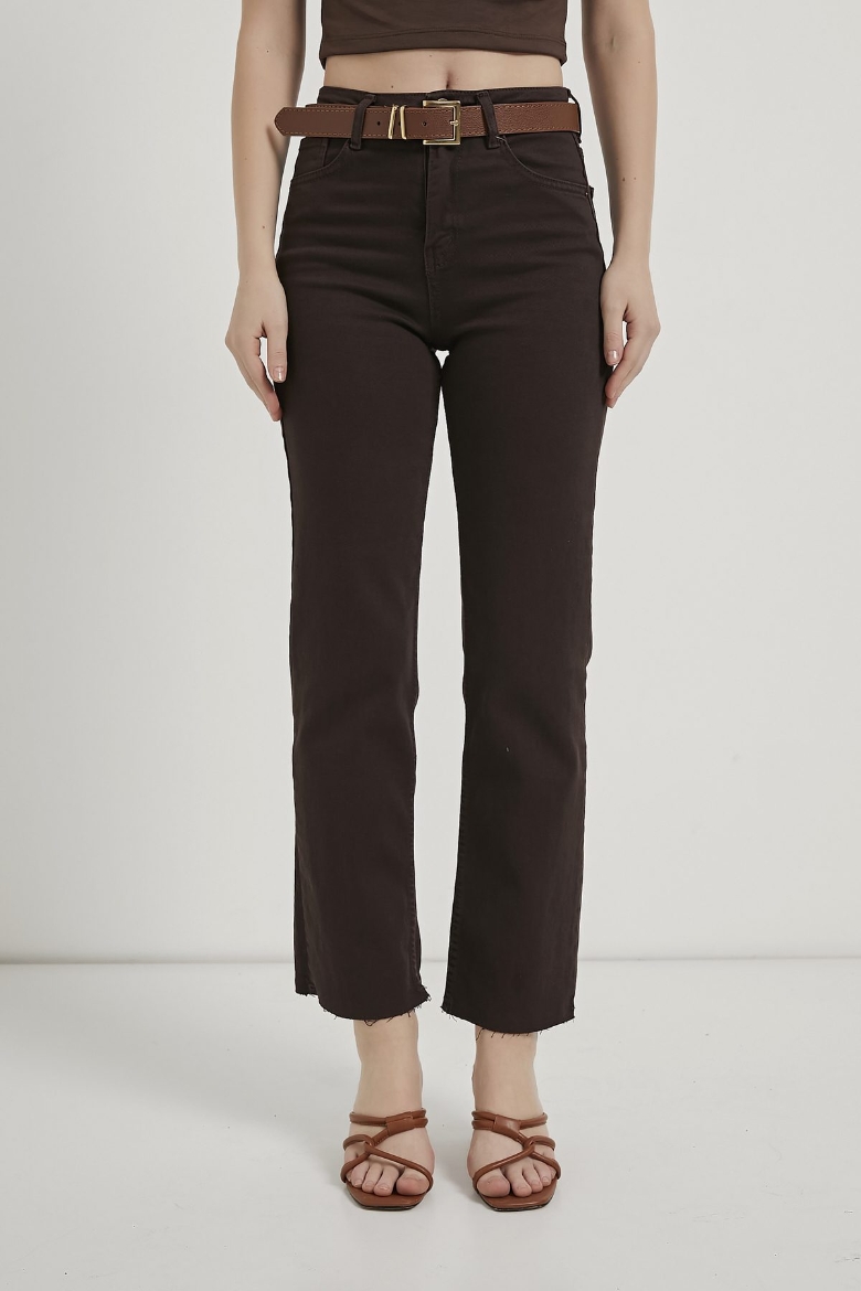 ARMALIFE 103 PAÇASI KESİK STRAIGHT FIT KEMERLİ ESNEK DENİM KADIN PANTOLON