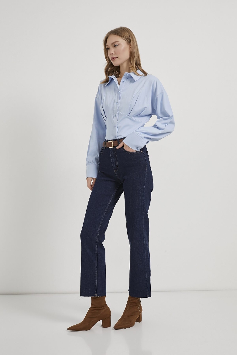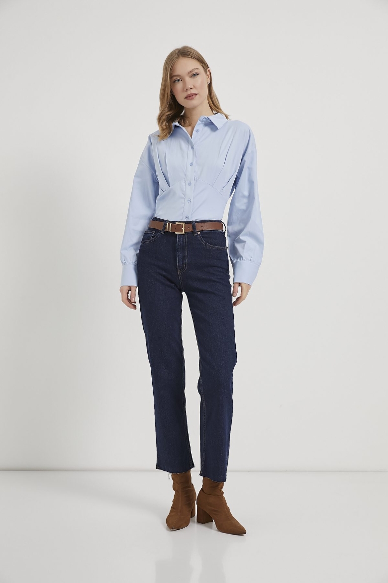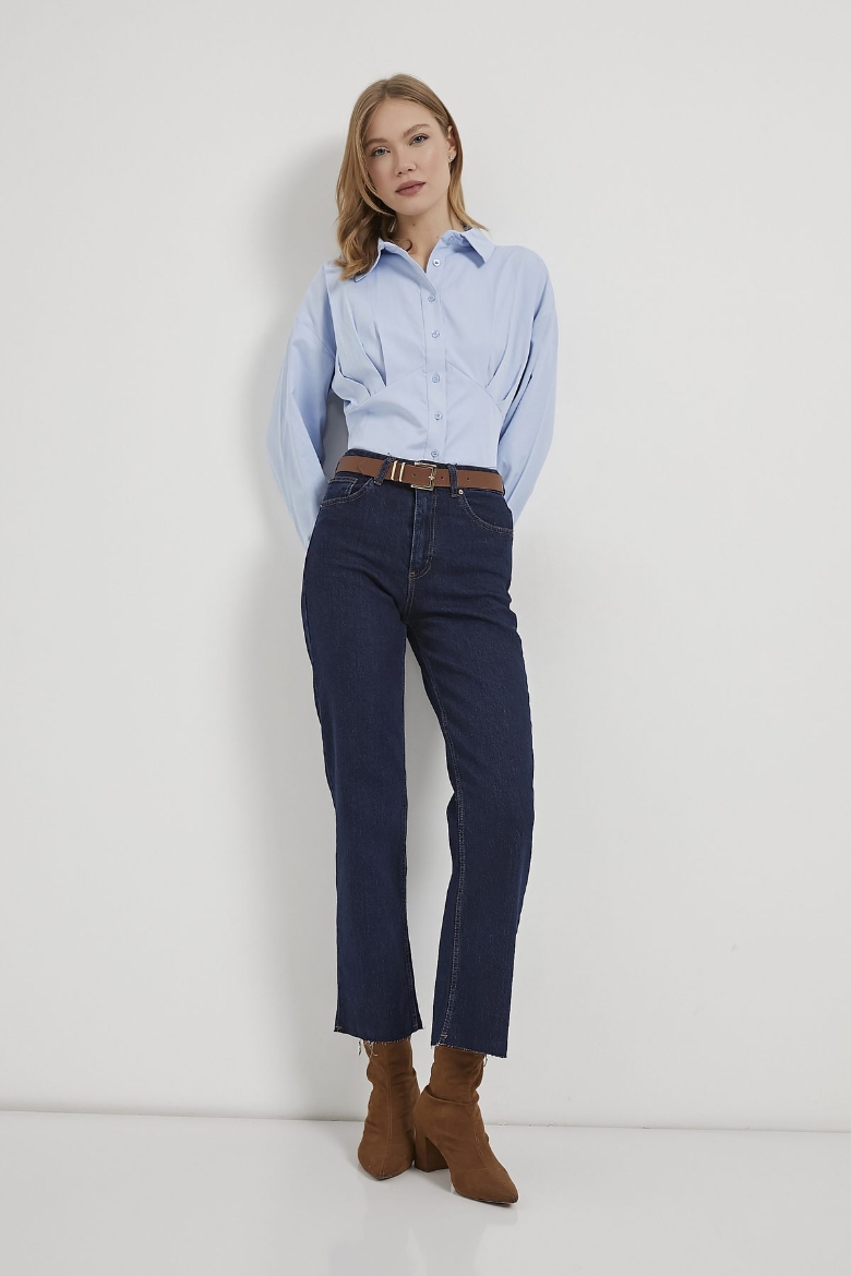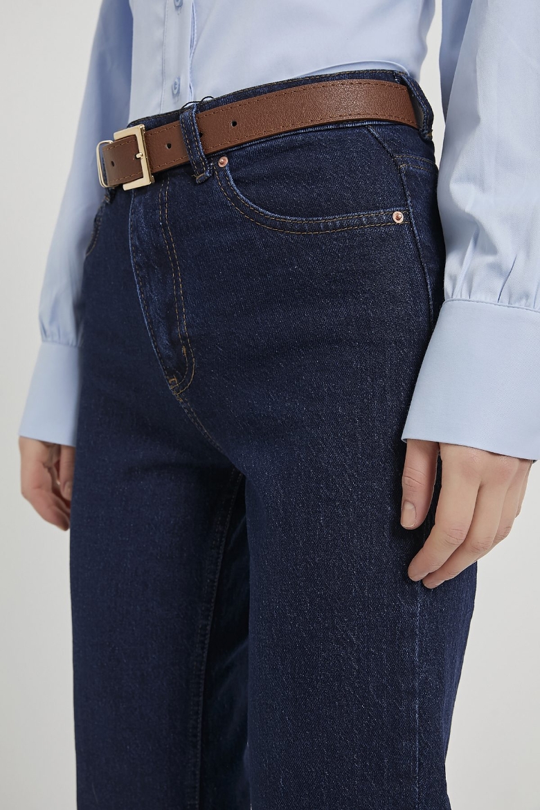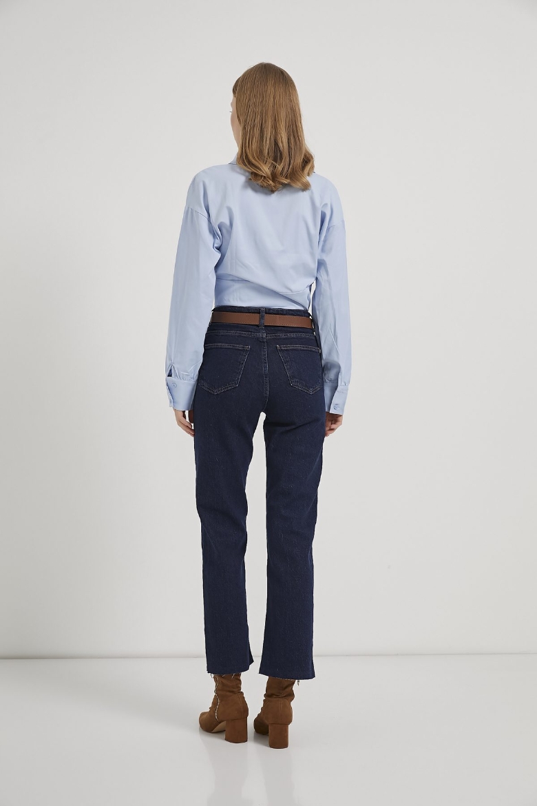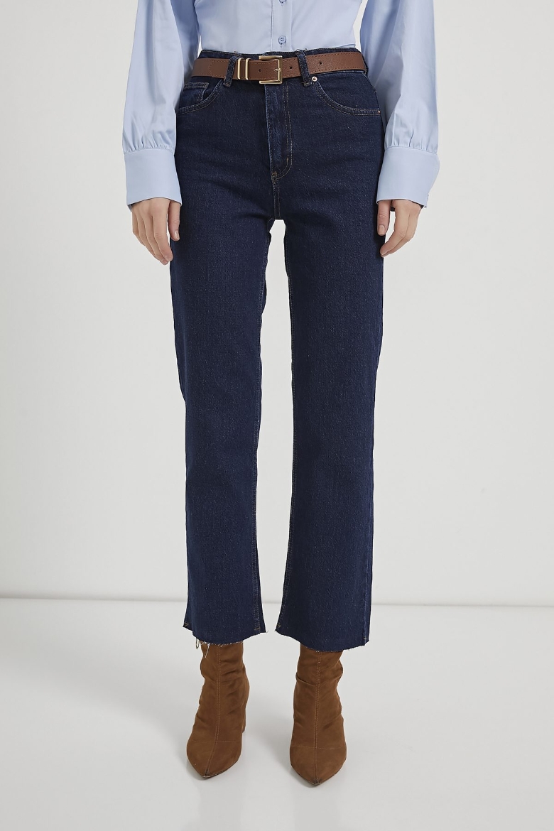 ARMALIFE 103 PAÇASI KESİK STRAIGHT FIT KEMERLİ ESNEK DENİM KADIN PANTOLON