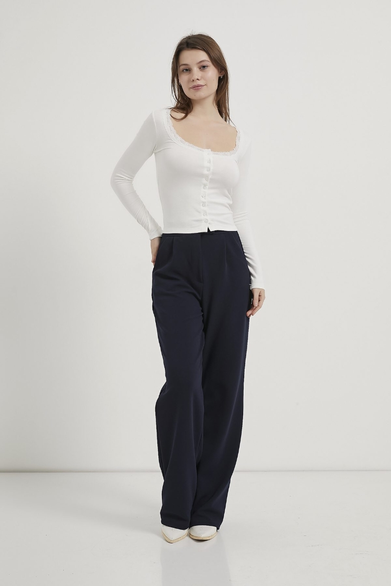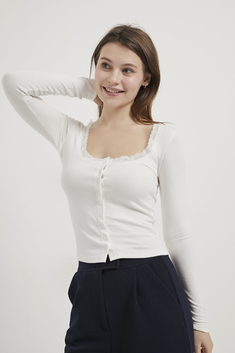 ARMALIFE 10522 DÜĞME DETAY DANTELLİ AÇIK YAKA KADIN BLUZ