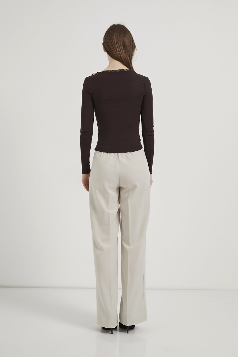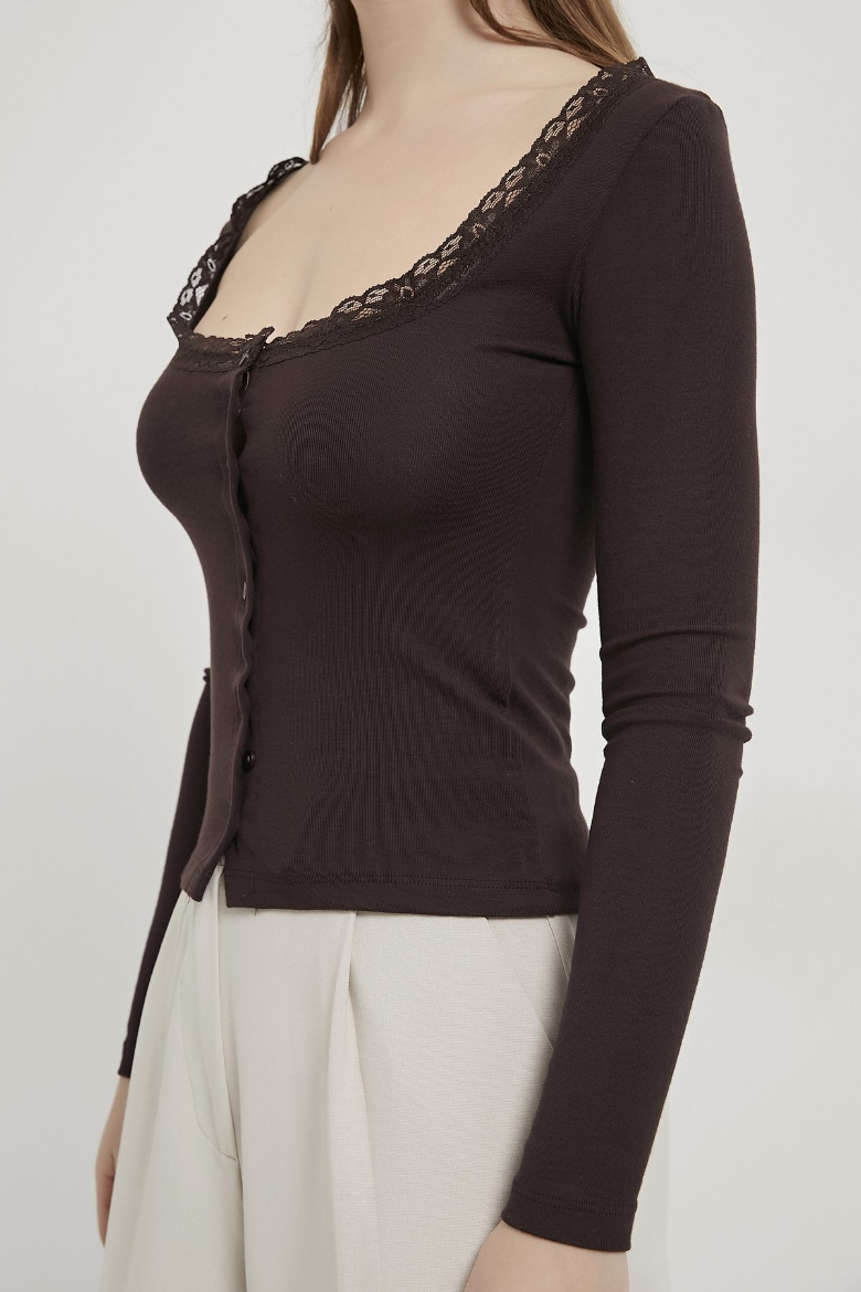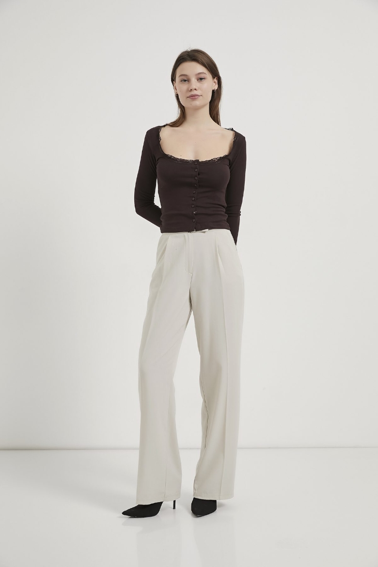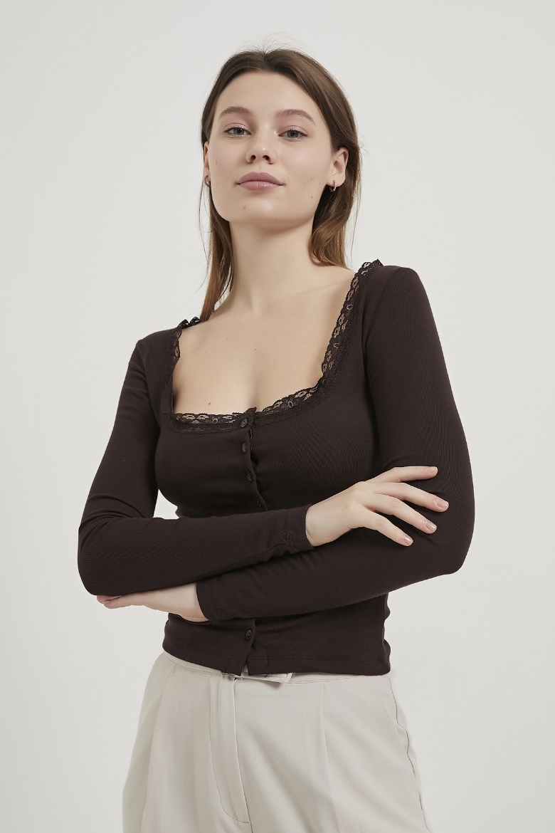 ARMALIFE 10522 DÜĞME DETAY DANTELLİ AÇIK YAKA KADIN BLUZ