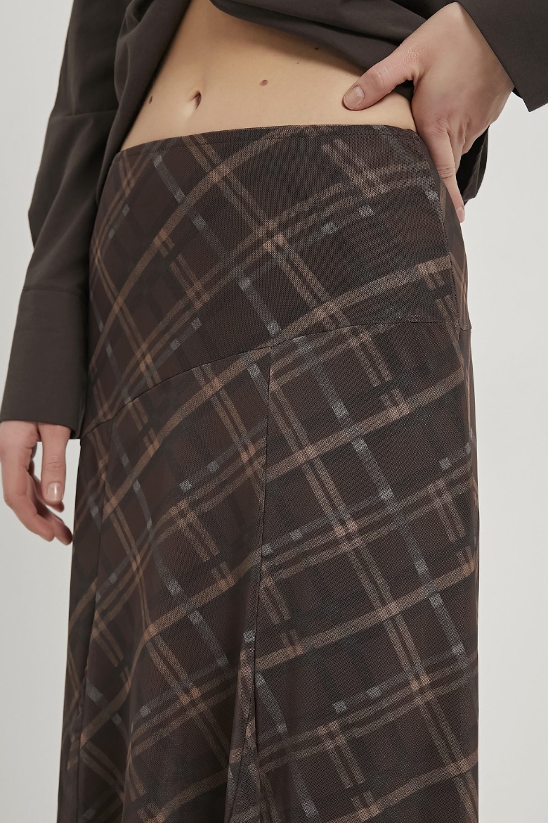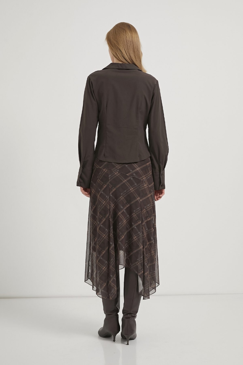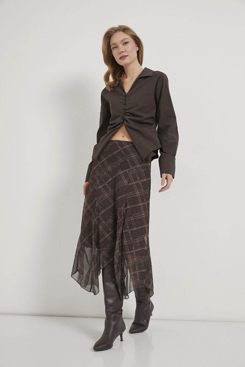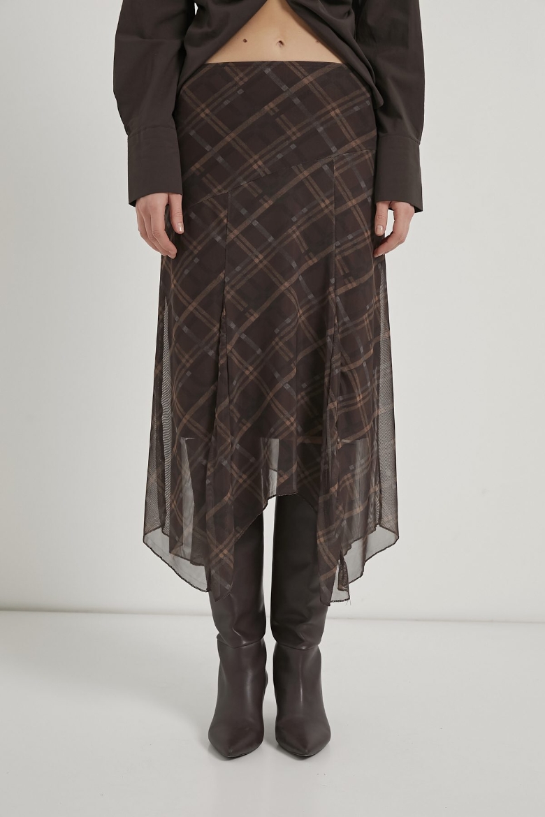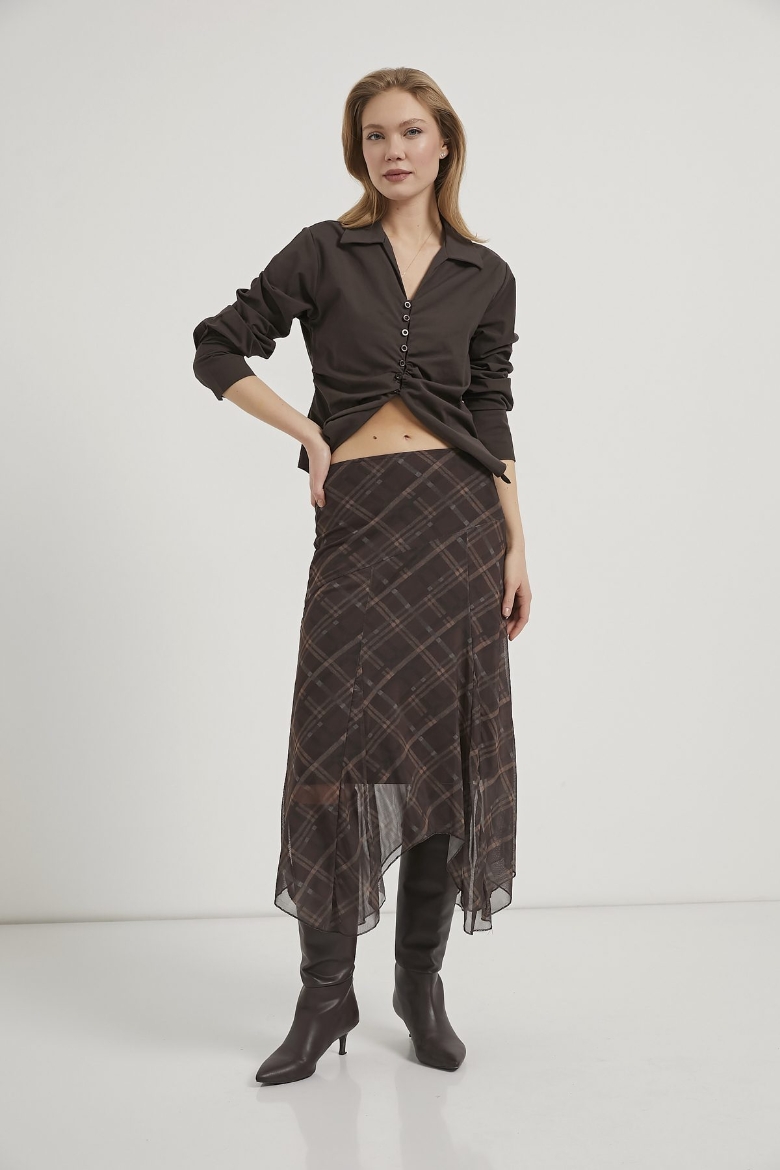 ARMALIFE 10560 ETEĞİ DİLİMLİ EKOSE TÜL MİDİ KADIN ETEK