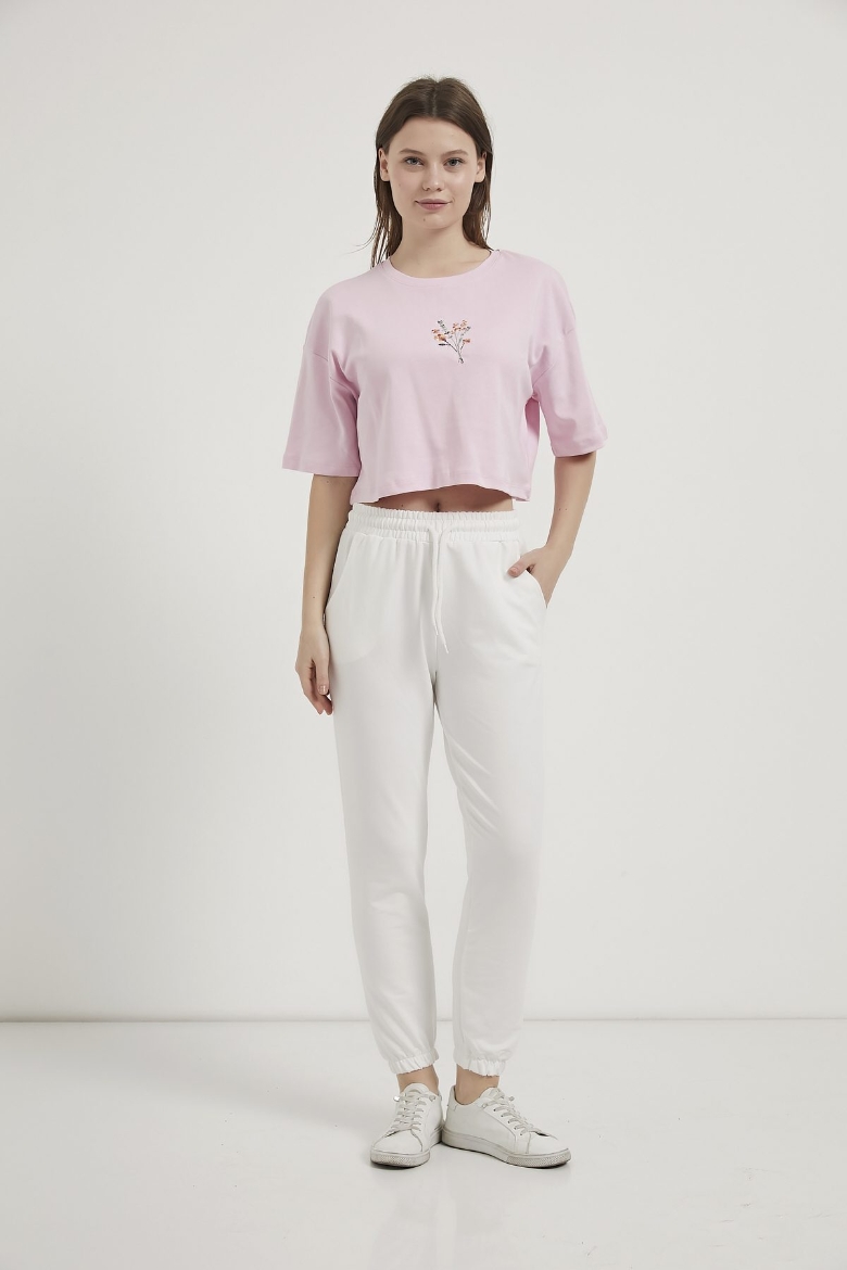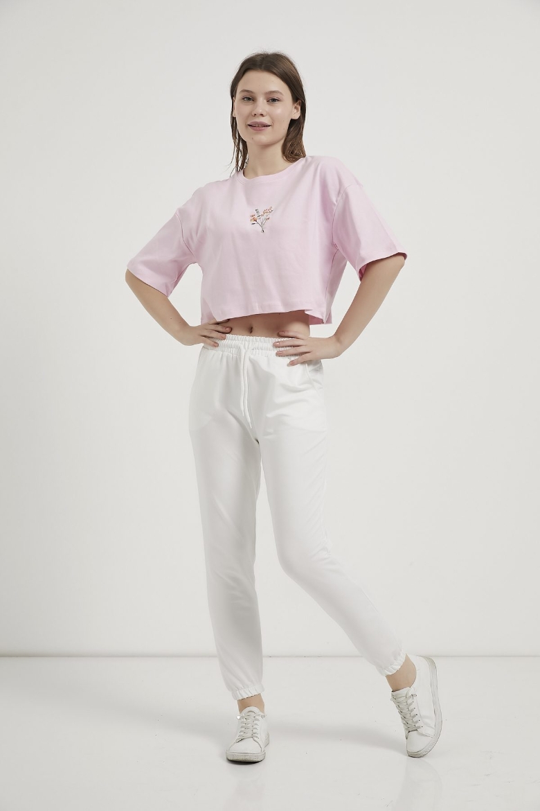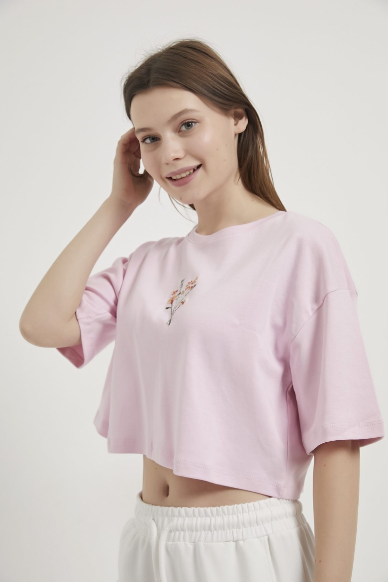 ARMALIFE 10573 ÇİÇEK NAKIŞLI CROP KADIN T-SHIRT