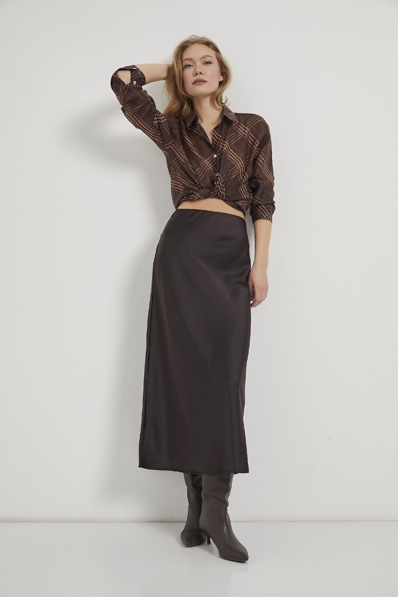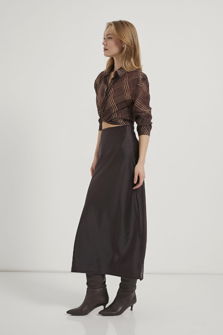 ARMALIFE 10589 BELİ LASTİKLİ UZUN SATEN KADIN ETEK