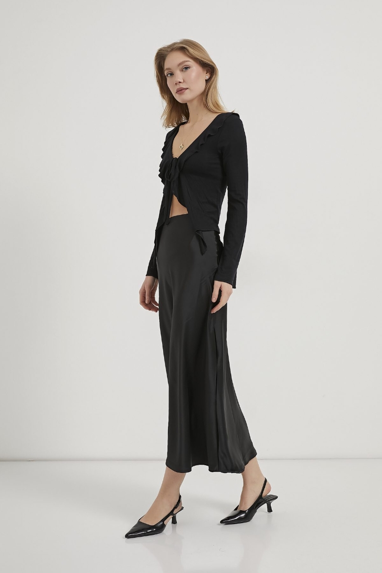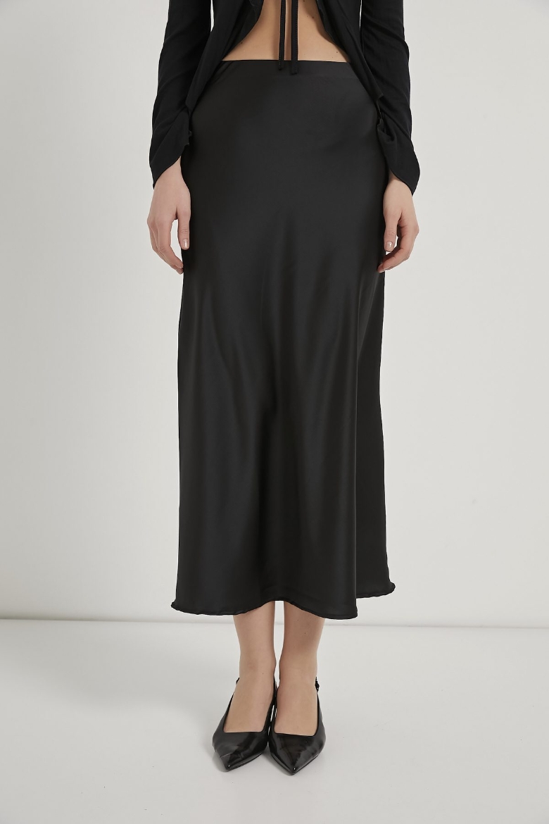 ARMALIFE 10589 BELİ LASTİKLİ UZUN SATEN KADIN ETEK