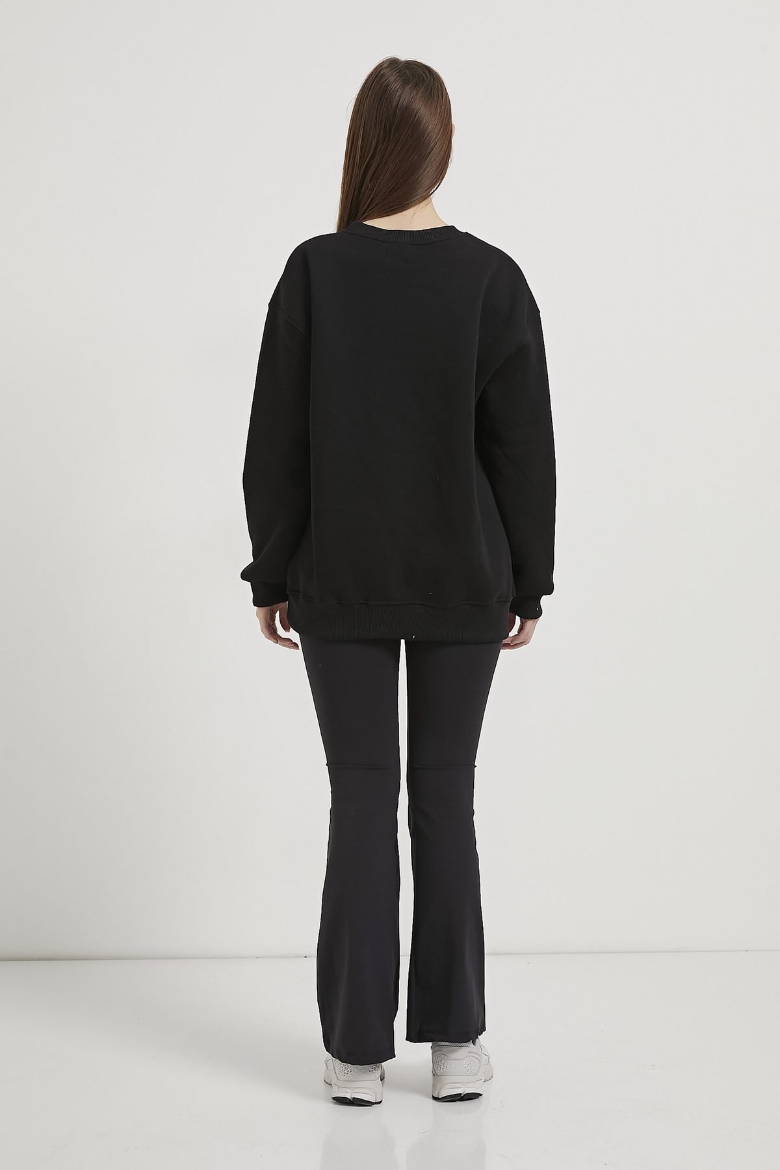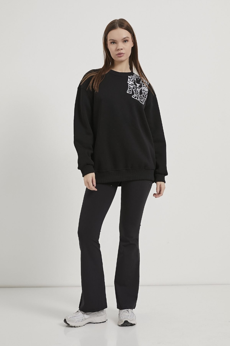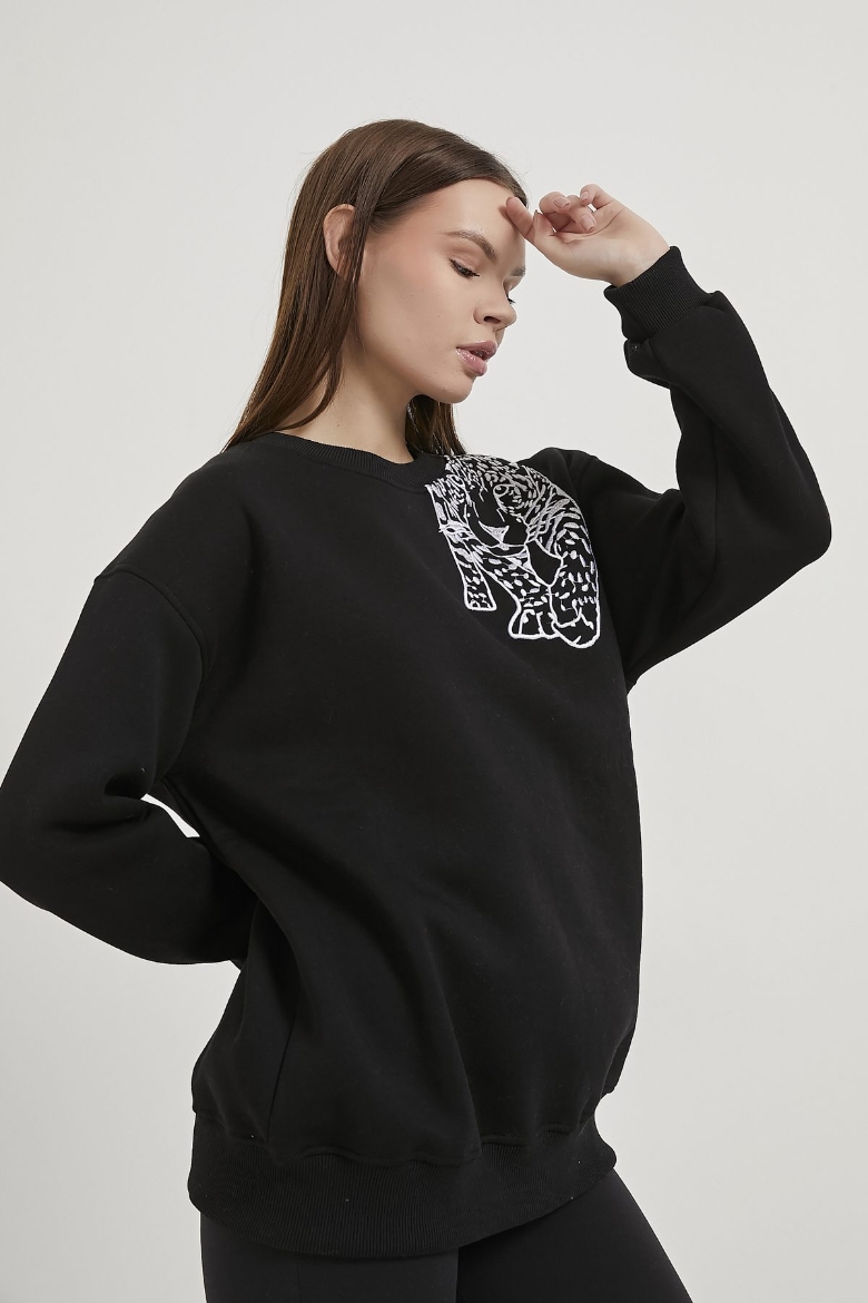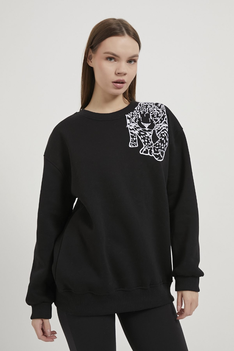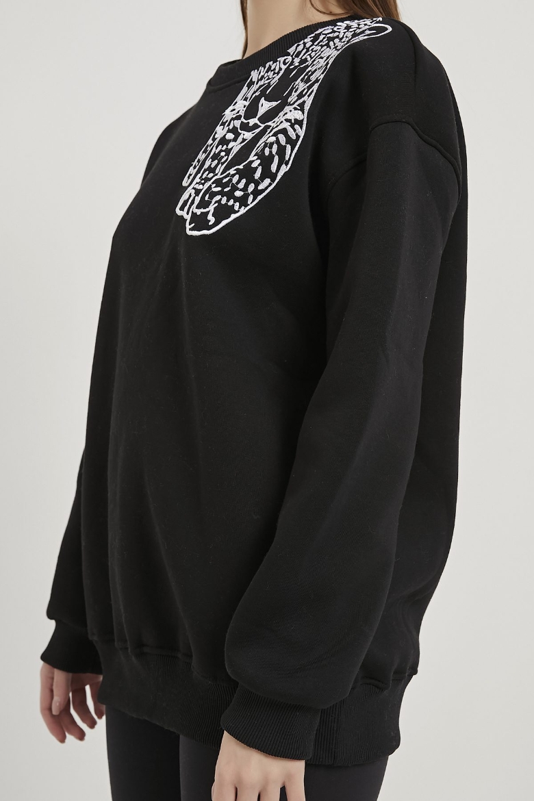 ARMALIFE 10615 OMUZ LEOPAR BASKILI BİS YAKA KADIN SWEAT