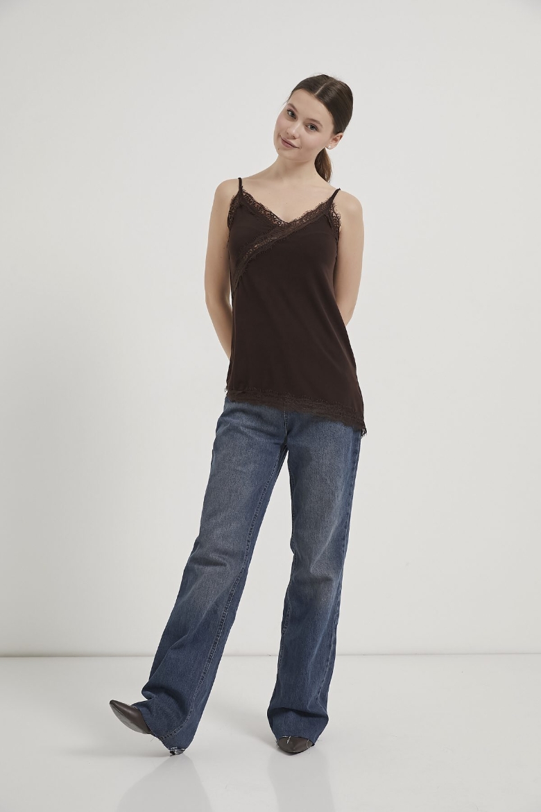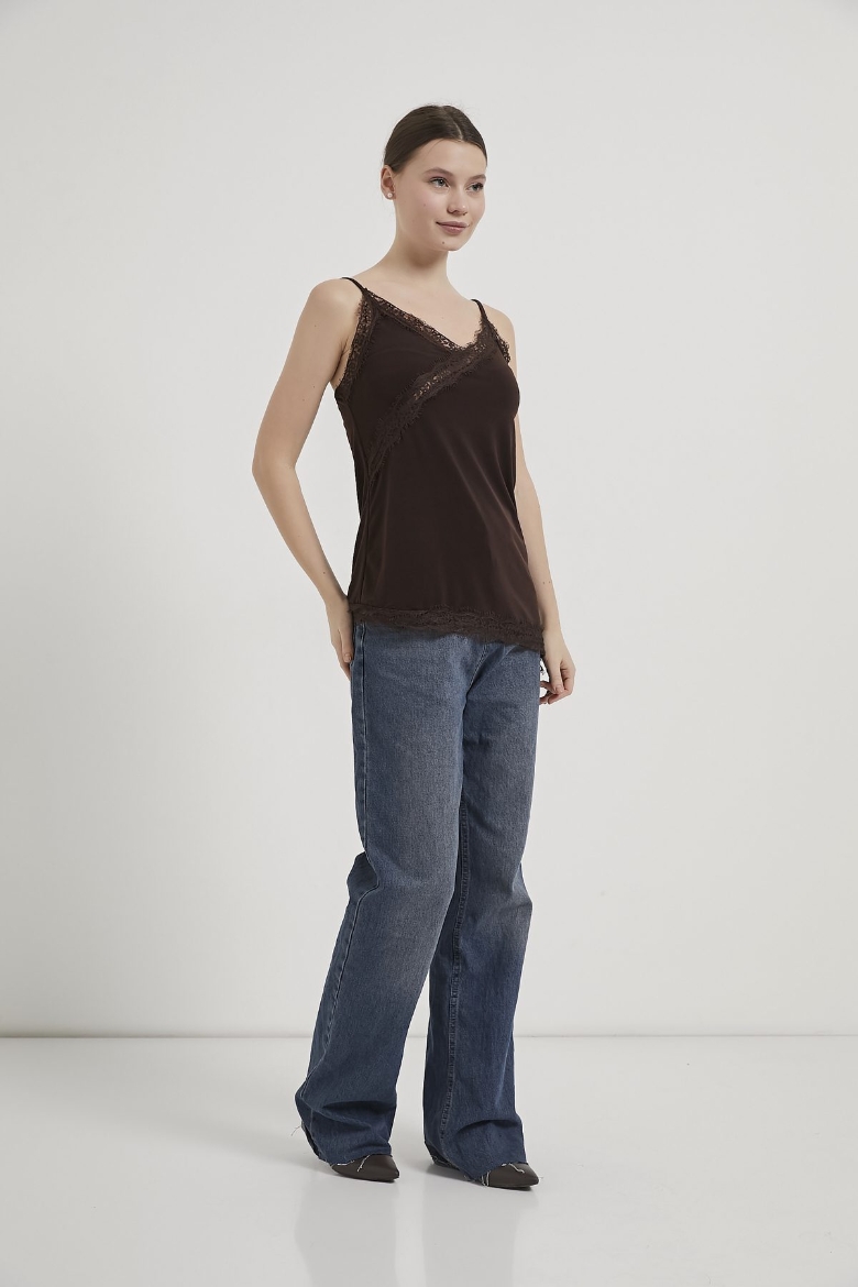 ARMALIFE 10626 DANTEL DETAYLI ASİMETRİK ESNEK ASKILI KADIN BLUZ
