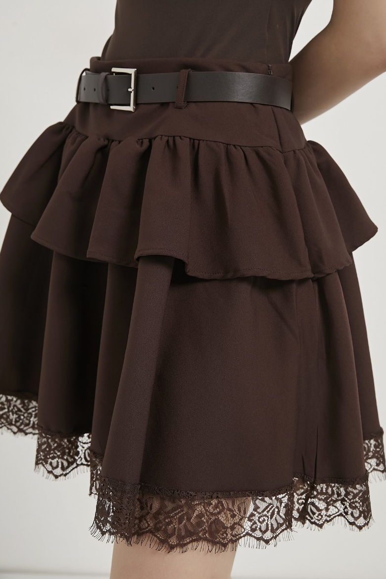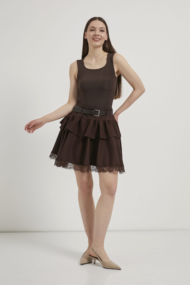 ARMALIFE 10703 KEMERLİ DANTEL DETAYLI KADIN ŞORT ETEK