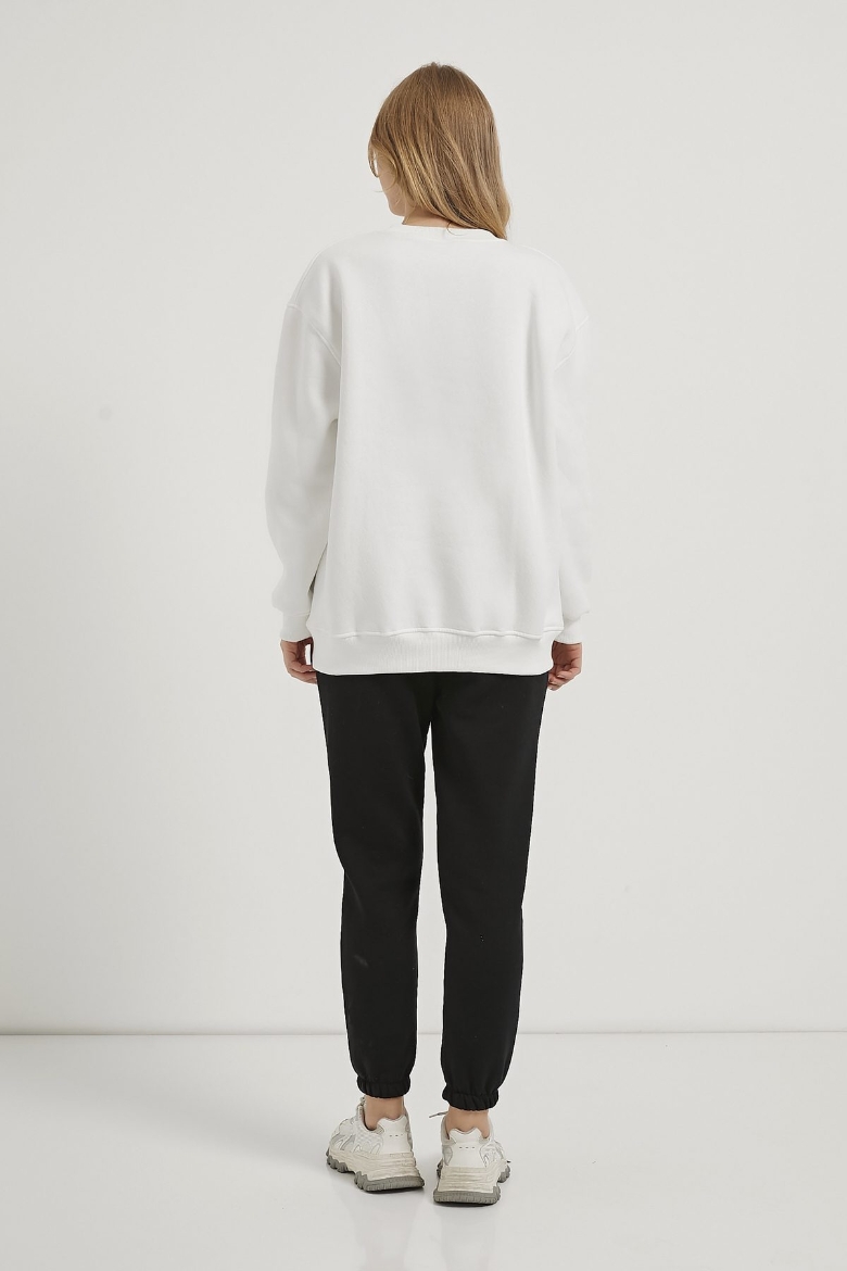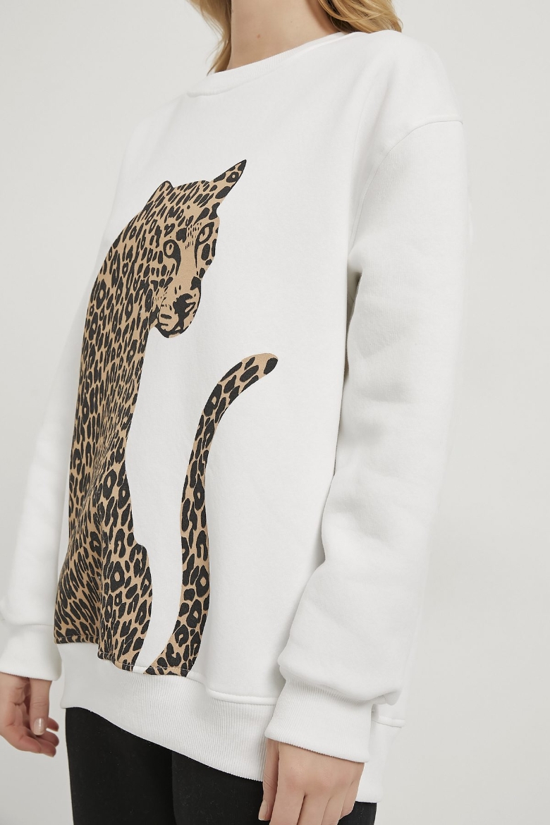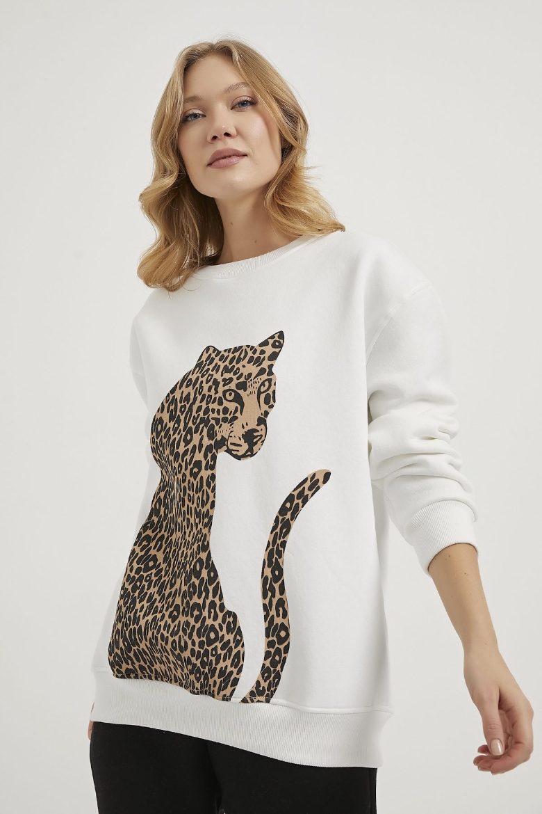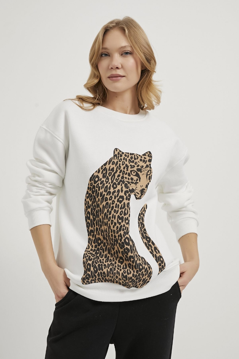 ARMALIFE 10906 LEOPAR DESENLİ BİSİKLET YAKA ŞARDONLU KADIN SWEATSHIRT