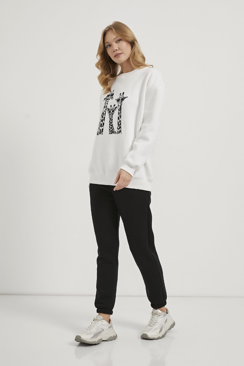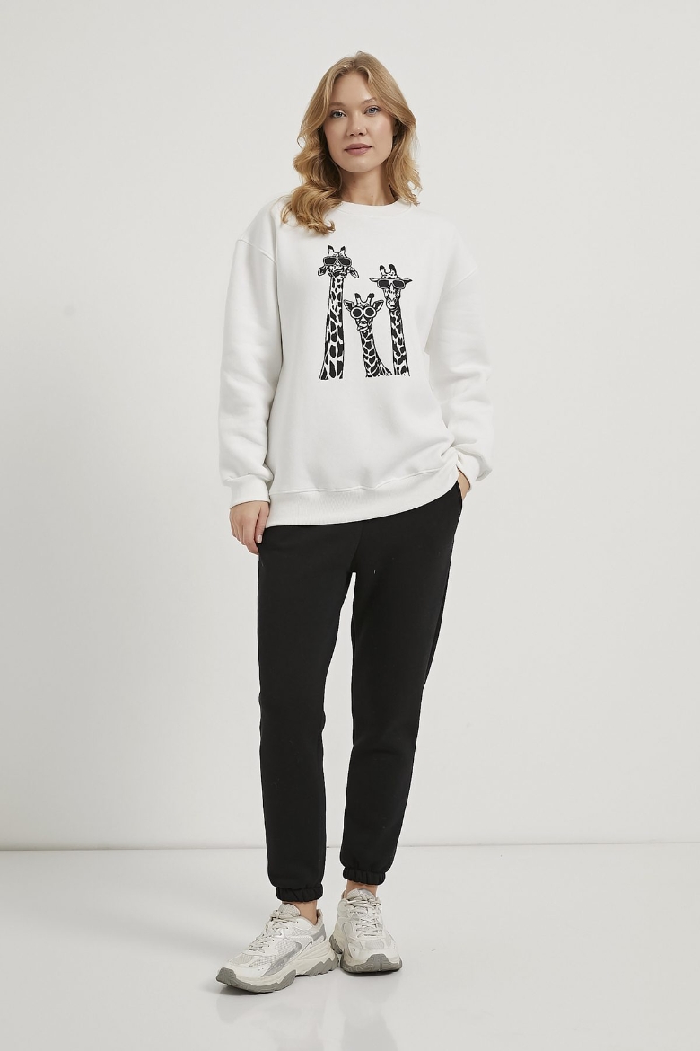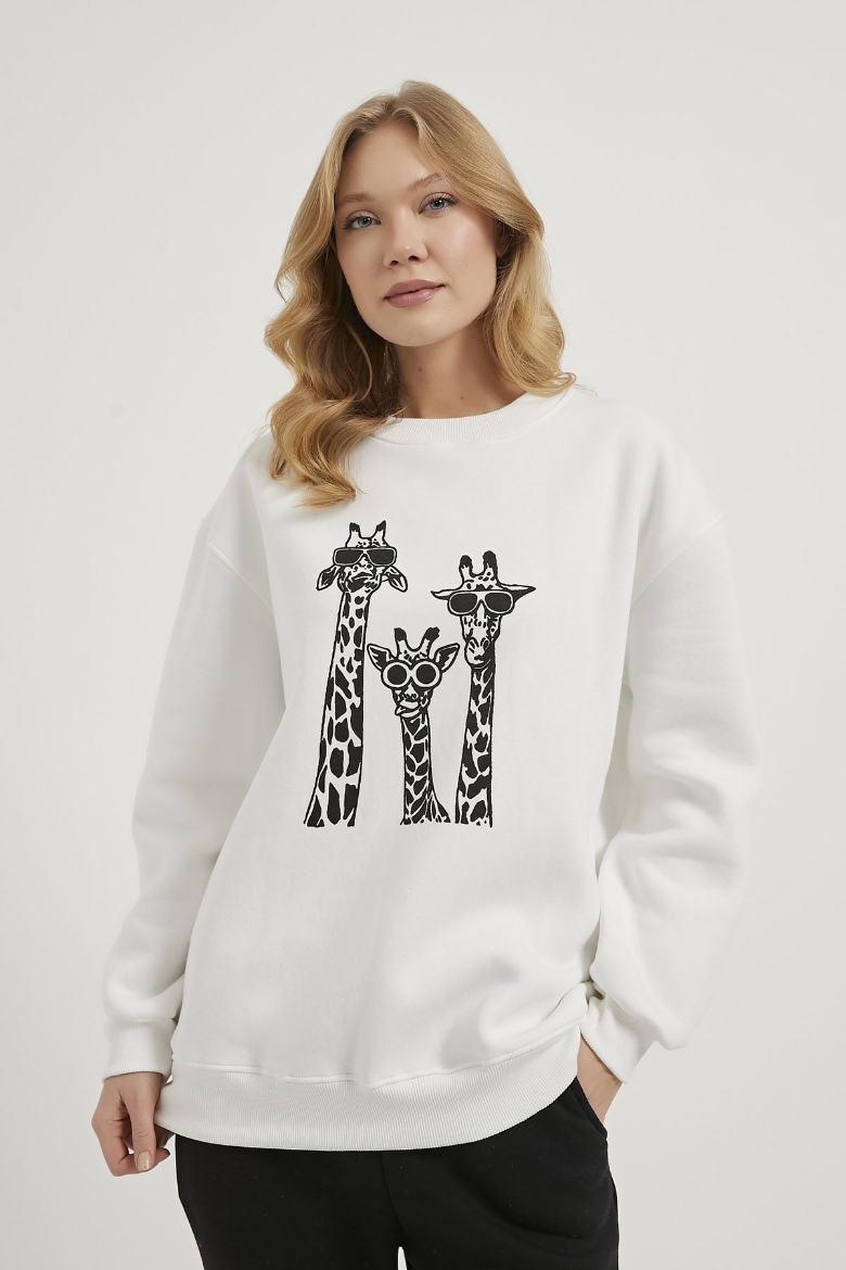 ARMALIFE 10948 ZÜRAFA FİGÜRLÜ BİSİKLET YAKA KADIN ŞARDONLU SWEATSHIRT