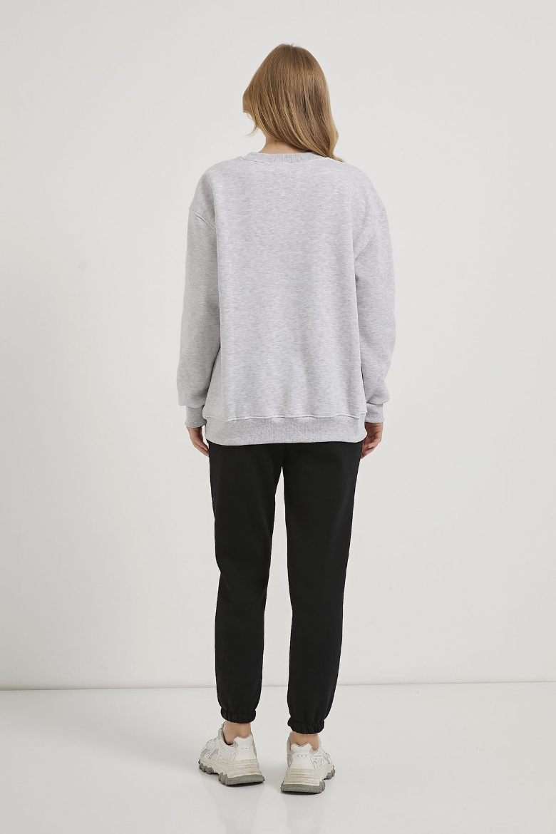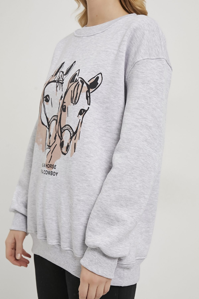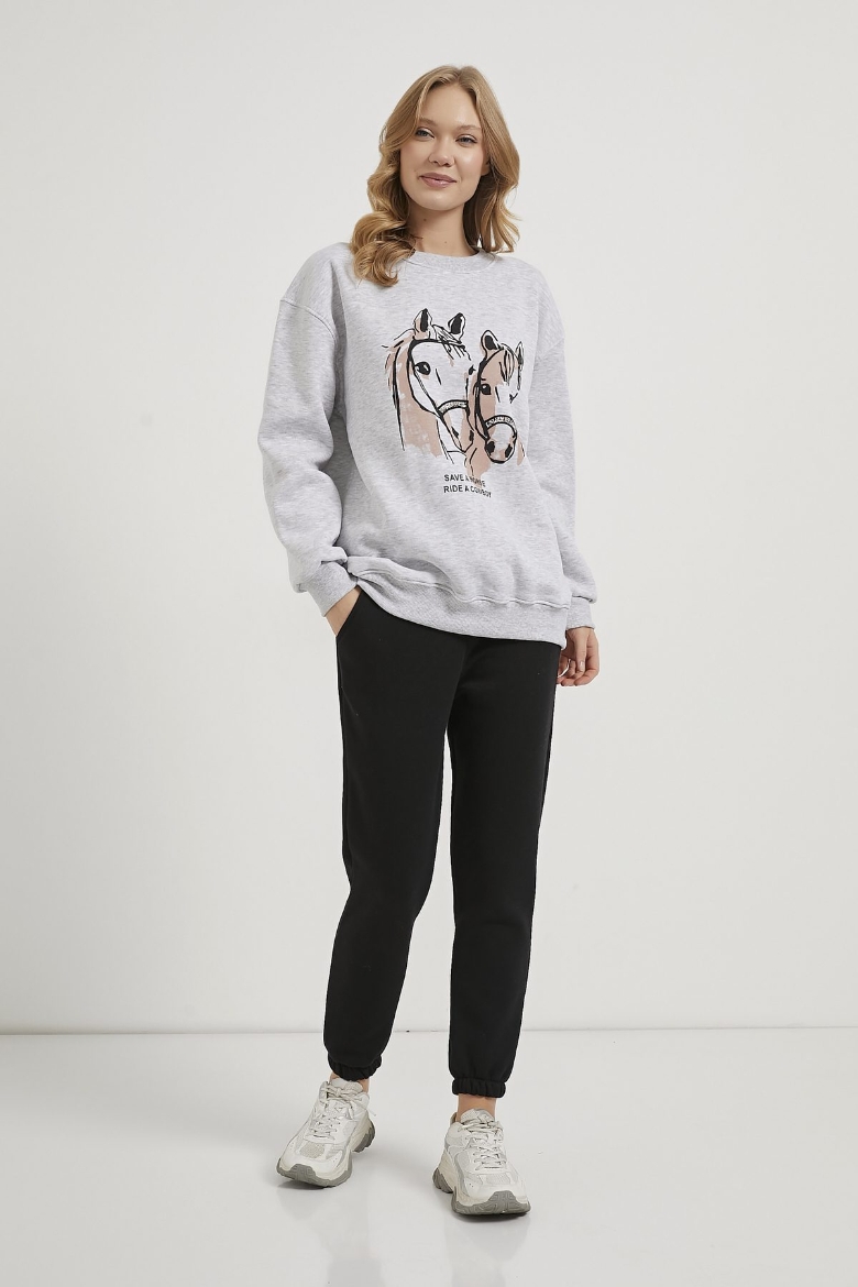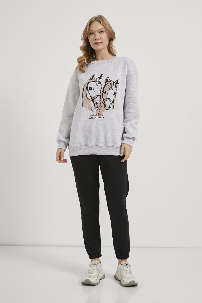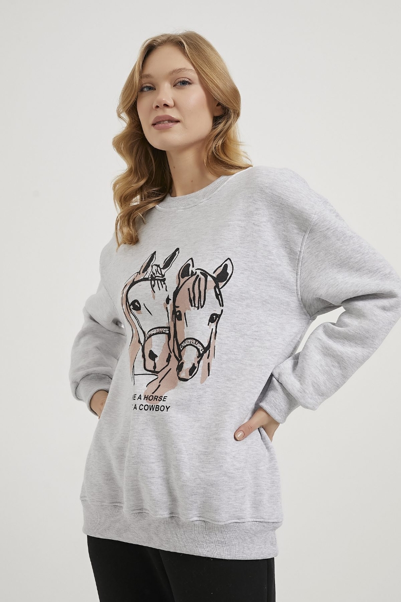 ARMALIFE 10949 AT FİGÜRLÜ BİSİKLET YAKA ŞARDONLU KADIN SWEATSHIRT