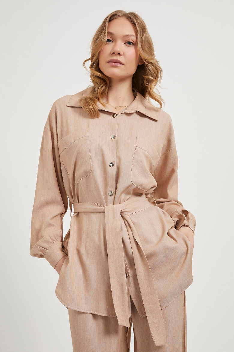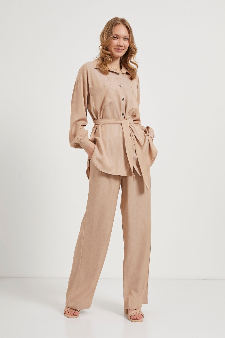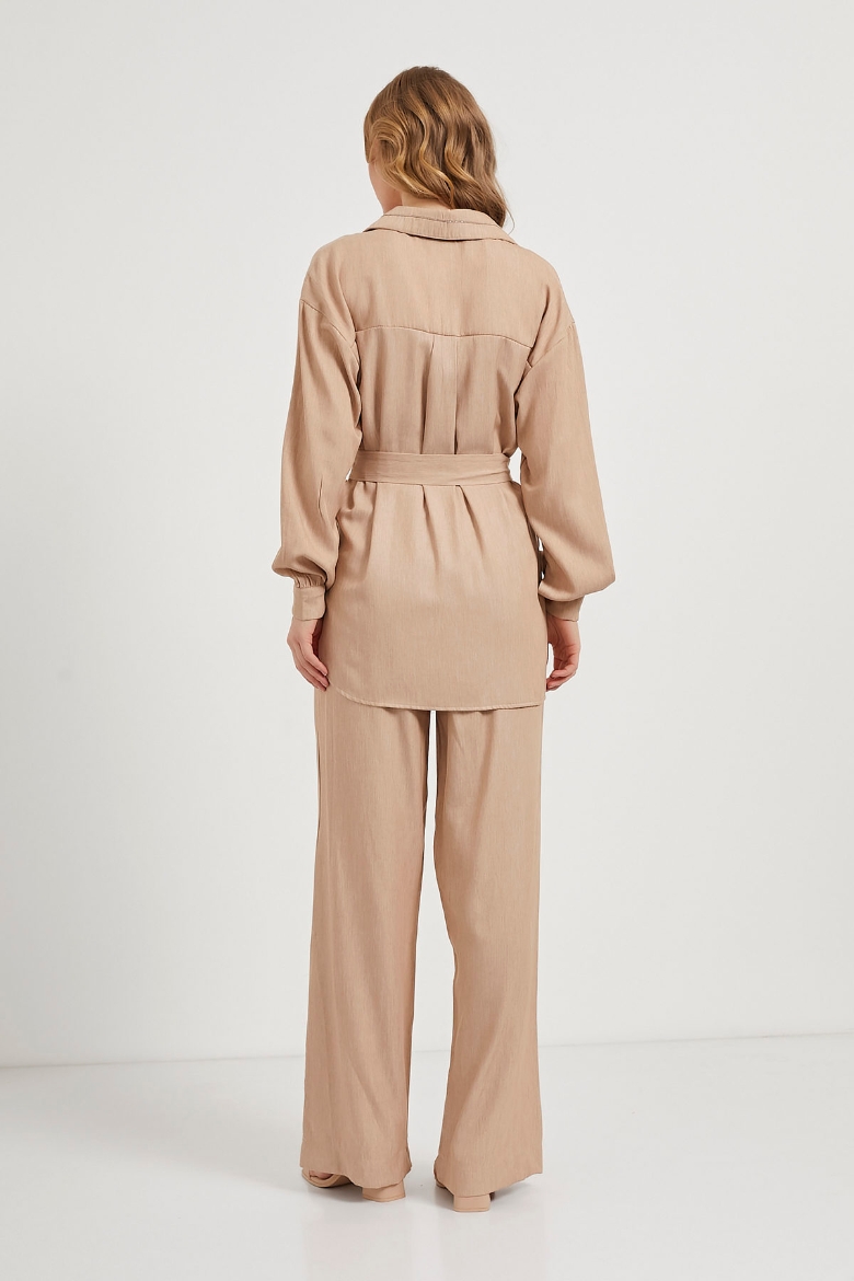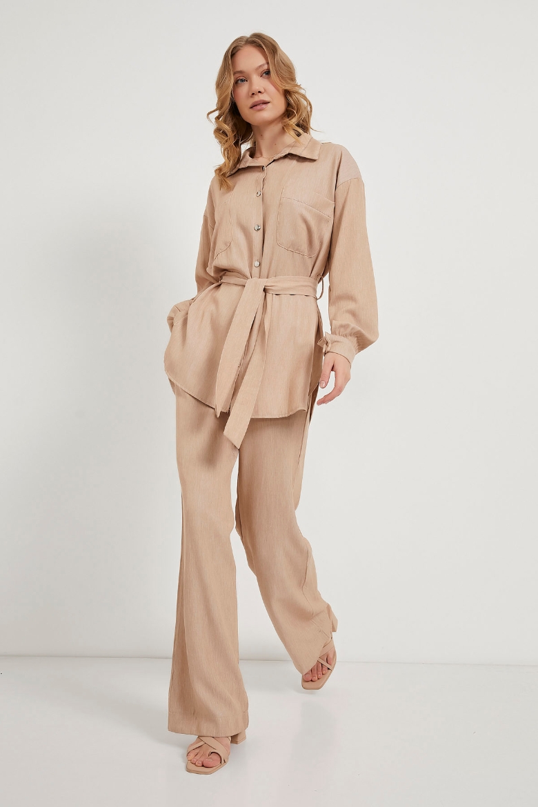 ARMALIFE 110 YAKA CEP AKSESUARLI KUŞAKLI KADIN GÖMLEK PANTOLON TAKIM