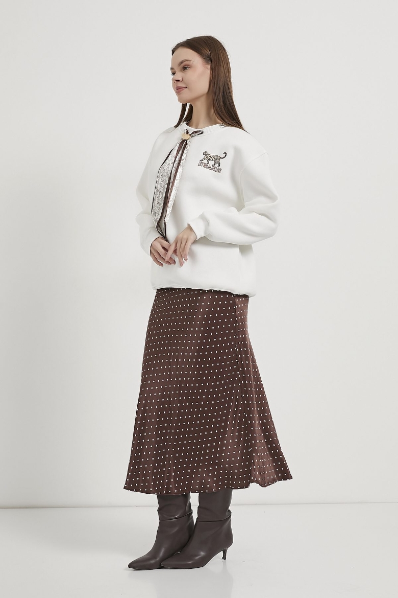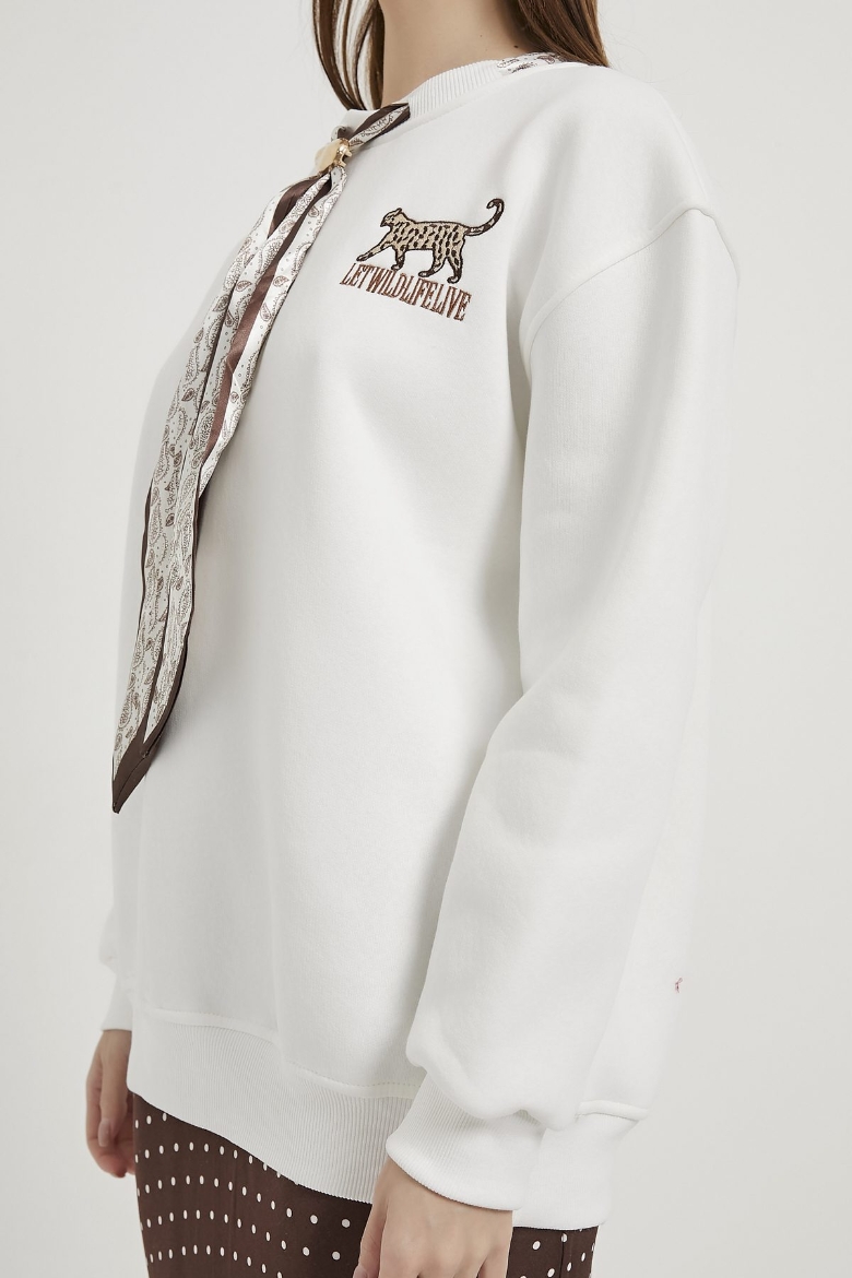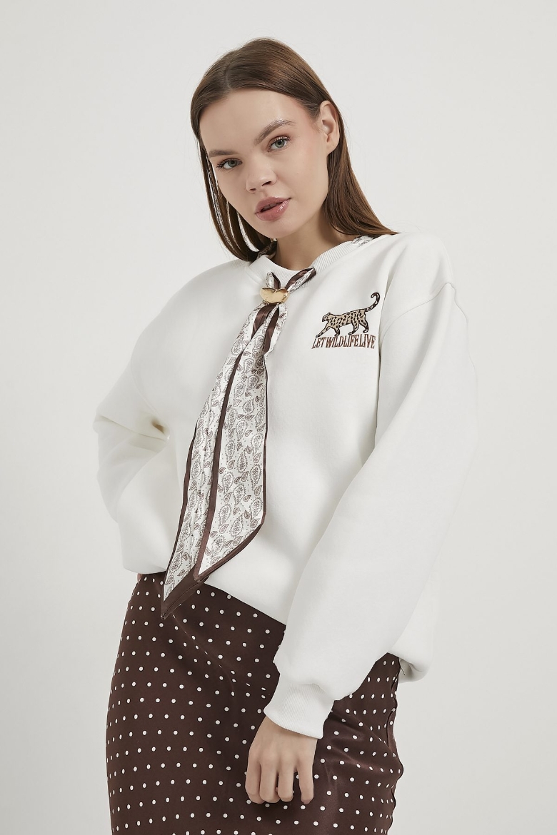 ARMALIFE 11009 FULARLI NAKIŞLI OVERSİZE KADIN SWEATSHIRT